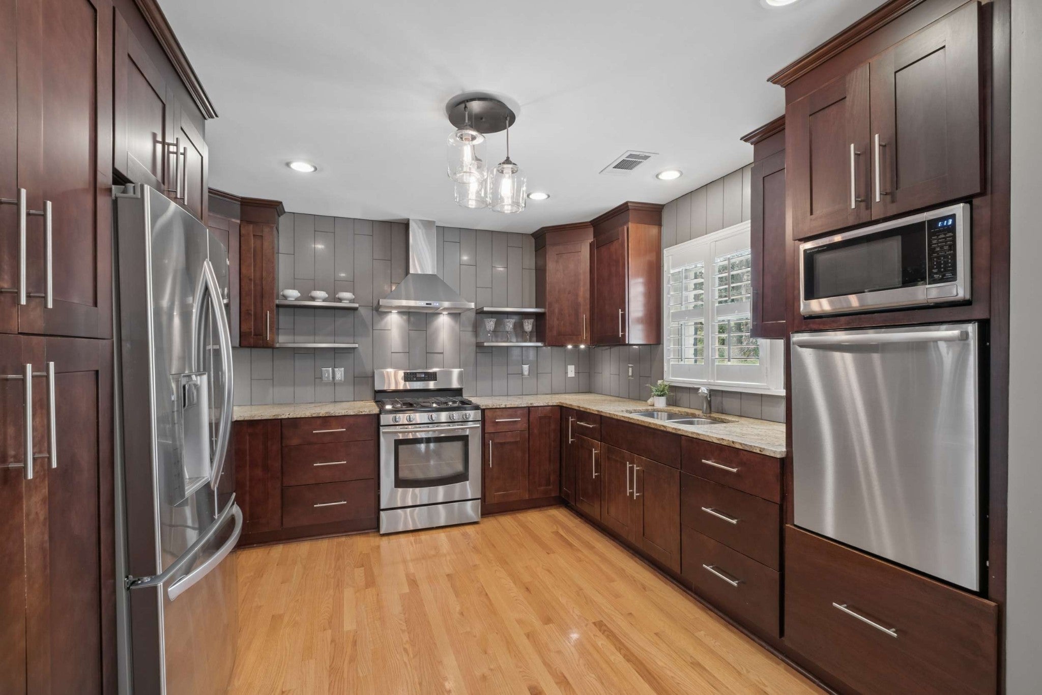 - Gas Oven, Gas Range, Dishwasher, Disposal, Dryer, Microwave, Refrigerator, Stainless Steel Appliance(s), Washer