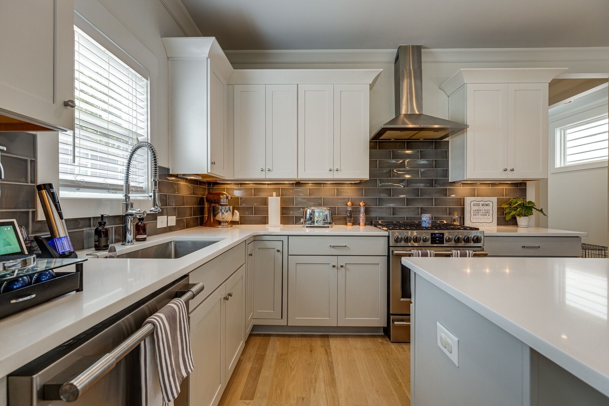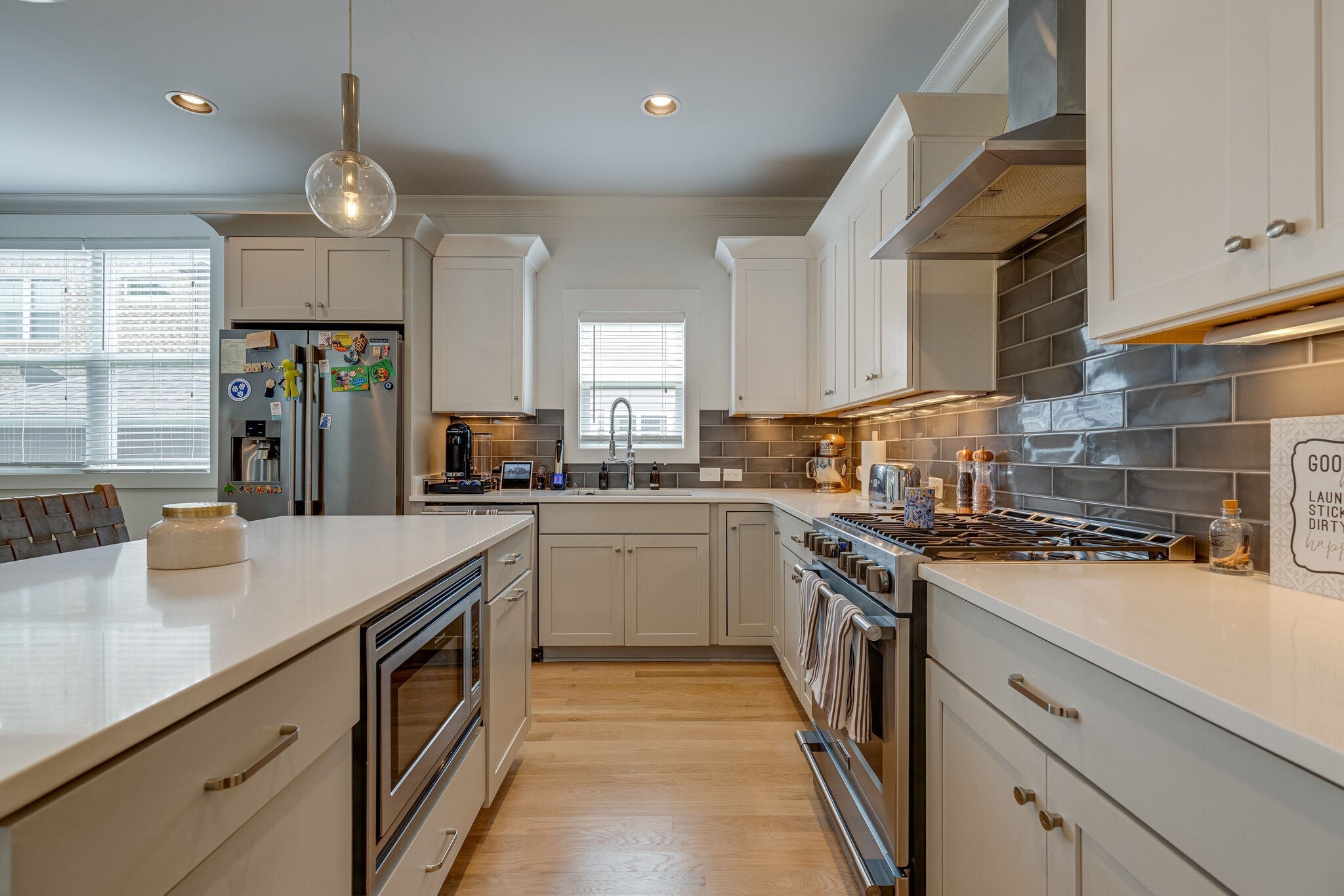 4-bedroom, 3-bathroom East Nashville home features 2,360 square feet of thoughtfully designed living space. Move-in ready with fresh paint, new carpet & updated landscaping. Welcoming curb appeal features double-stacked front porches, a classic white picket fence & updated landscaping. Once inside you’ll find an open floor plan with 10’ ceilings anchored by new white oak hardwoods (2023) and a cozy living room fireplace. Modern kitchen is designed to impress with quartz countertops, a generous island, abundant cabinetry, tile backsplash, professional-series stainless steel appliances with gas range & undermount sink. The spacious primary suite features vaulted ceilings, a walk-in closet, luxurious bath w/ double vanities & oversized frameless glass tile shower. Upstairs flex space offers versatility - playroom, home office, den, etc. Functional entry drop zone with built-in storage cubbies. Enjoy seamless indoor-outdoor living with three covered outdoor spaces. Screened-in porches located on the front and the back. Fully fenced front and back yard. 2-car detached garage. Additional off-street parking. Tankless hot water heater. New roof (2024). Conveniently located near local parks, grocery stores, coffee shops, restaurants & retail. A rare combination of charm, updates & walkability in one of Nashville’s most sought-after neighborhoods. Located in Lockeland Elementary GPZ. First showings on Saturday, March 21.