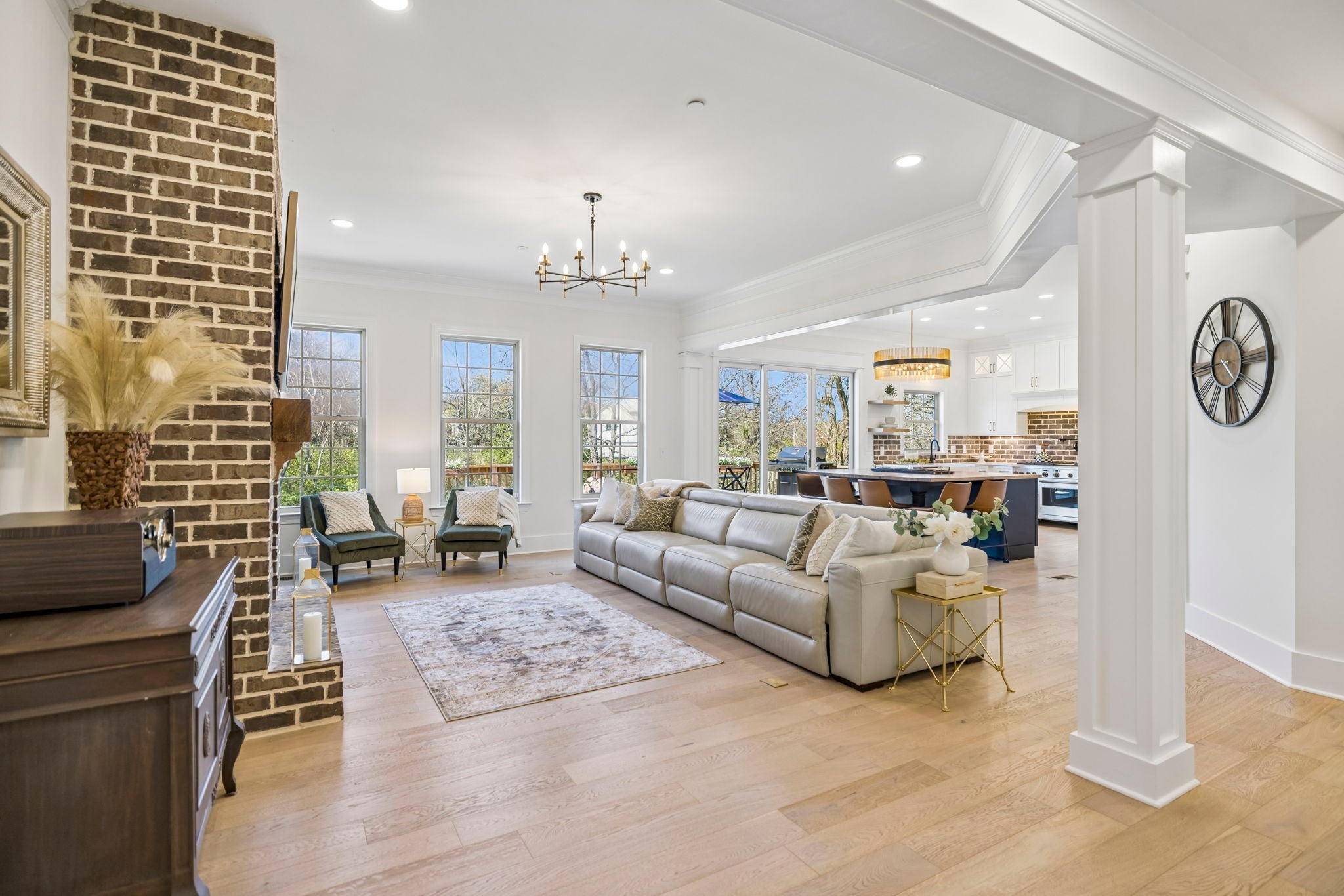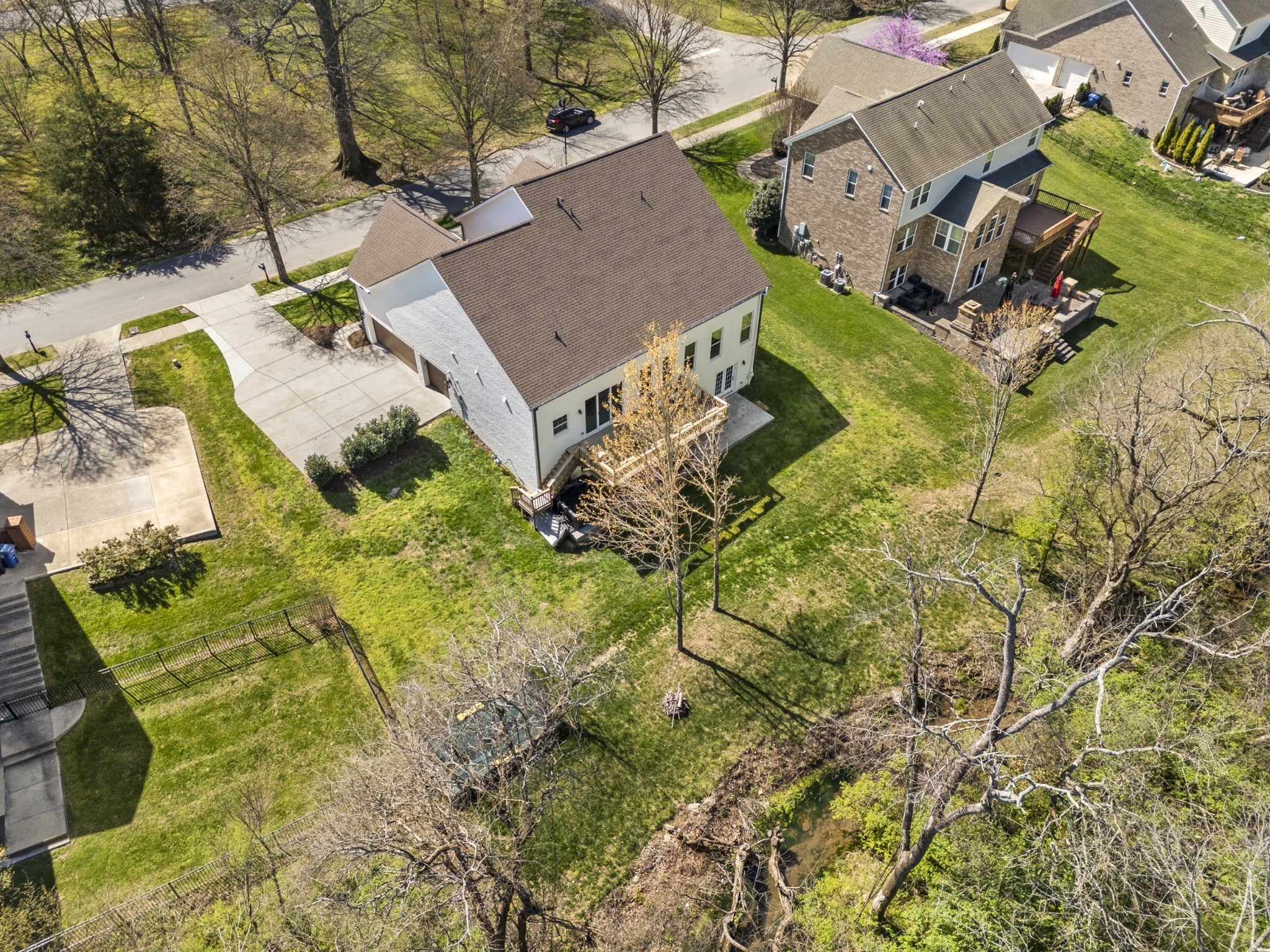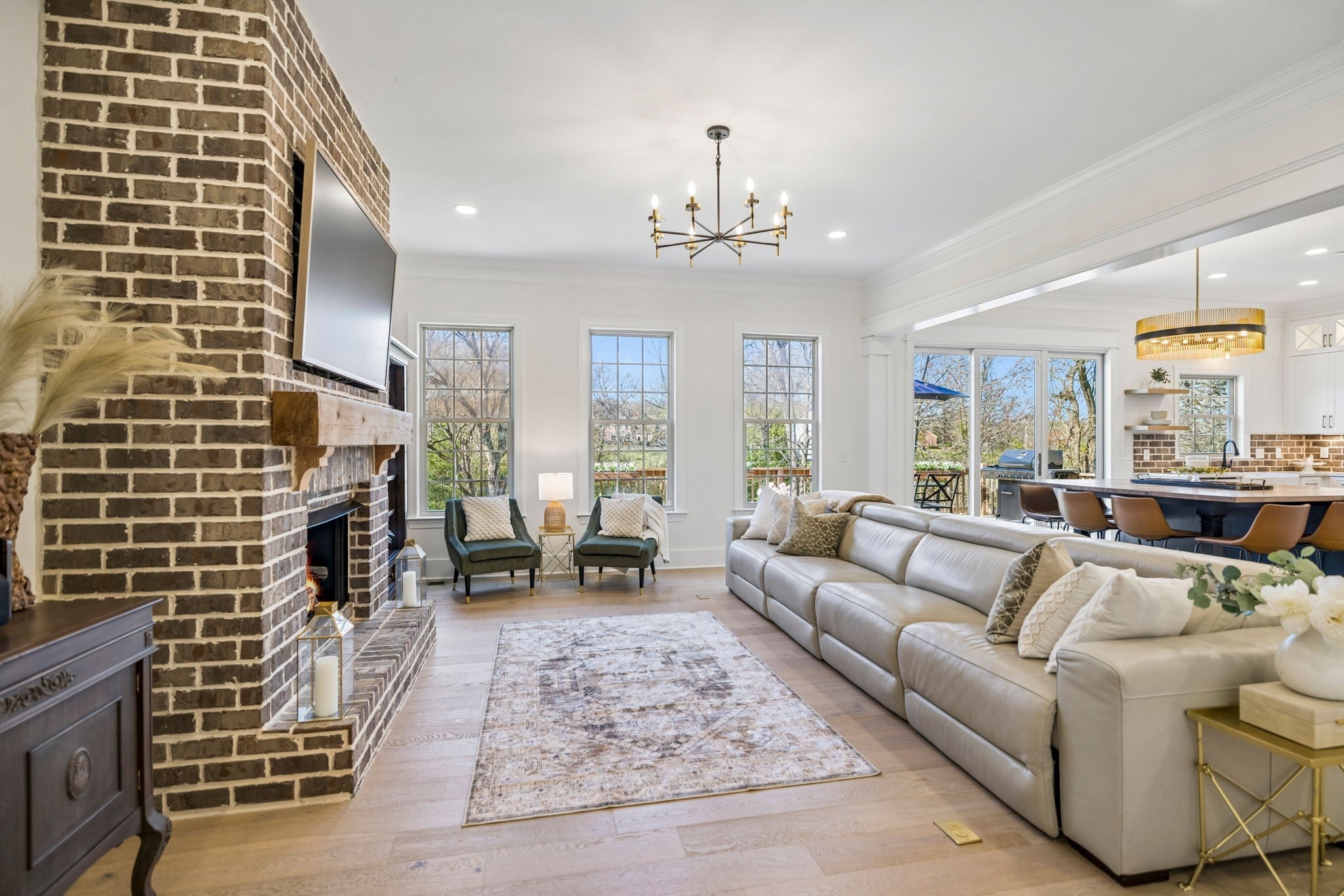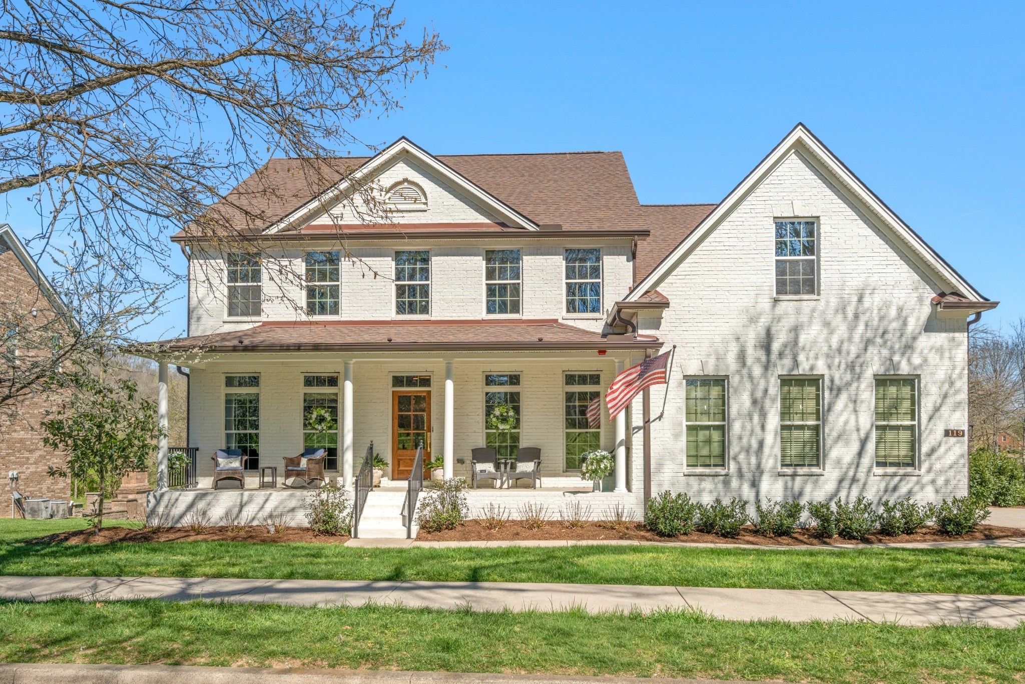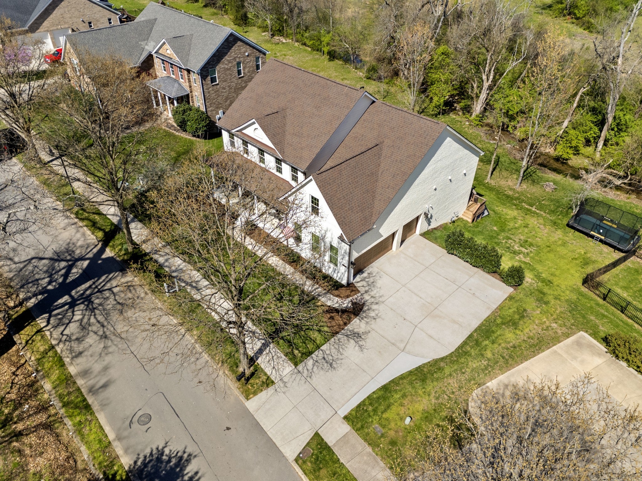 Stunning custom renovation in pristine condition within one of the best locations in Franklin with a basement that is perfect for in-laws, a nanny, kids/teenagers and peace of mind during storms! Charming white brick home with a large rocking chair front porch overlooking a picturesque park surrounded by mature trees. Enter into the foyer with a cascading staircase flanked by a home office with built ins and a formal dining room. The warm and inviting family room is anchored by a striking floor to ceiling brick fireplace that blends rustic charm with modern style and is surrounded by light hardwood floors, neutral walls and $50K in trim details. The thoughtfully designed and functional kitchen has a a large center island with rich wood countertops and a statement chandelier great for casual dining and meal prep. The 48 inch gas range, GE Cafe appliances, pot filler and walk in pantry are a chef's delight. The hidden coffee bar is a treat with its own pot filler. Natural light pours in through the expansive sliding glass doors connecting the home to the outdoor living area with year round views of Five Mile Creek and a wooded lot. The owner's suite has 11 foot ceilings and an updated bathroom with freestanding tub, 4x4 tile shower, extra hand held shower head & blue tooth speakers. 3 bedrooms with hardwood floors and 2 renovated bathrooms upstairs. Walk into the basement and fall in love all over again! This space is multi-functional with a full kitchenette that is perfect for overflow kitchen storage, a HUGE bedroom, full bathroom, media space, home gym/dance room & expansive walk in storage. Walk outside to the stamped concrete patio, waterproofed covered porch & hot tub to decompress at the end of the day. New roof, new garage doors, 3 car garage, tankless WH, Energy Star Home, new deck, new light fixtures & hardware, exterior uplighting! $300K in upgrades! 1 min to In N Out HQ & Berry Farms/2 min to I-65! Pool, park & trails. Immediate possession available.