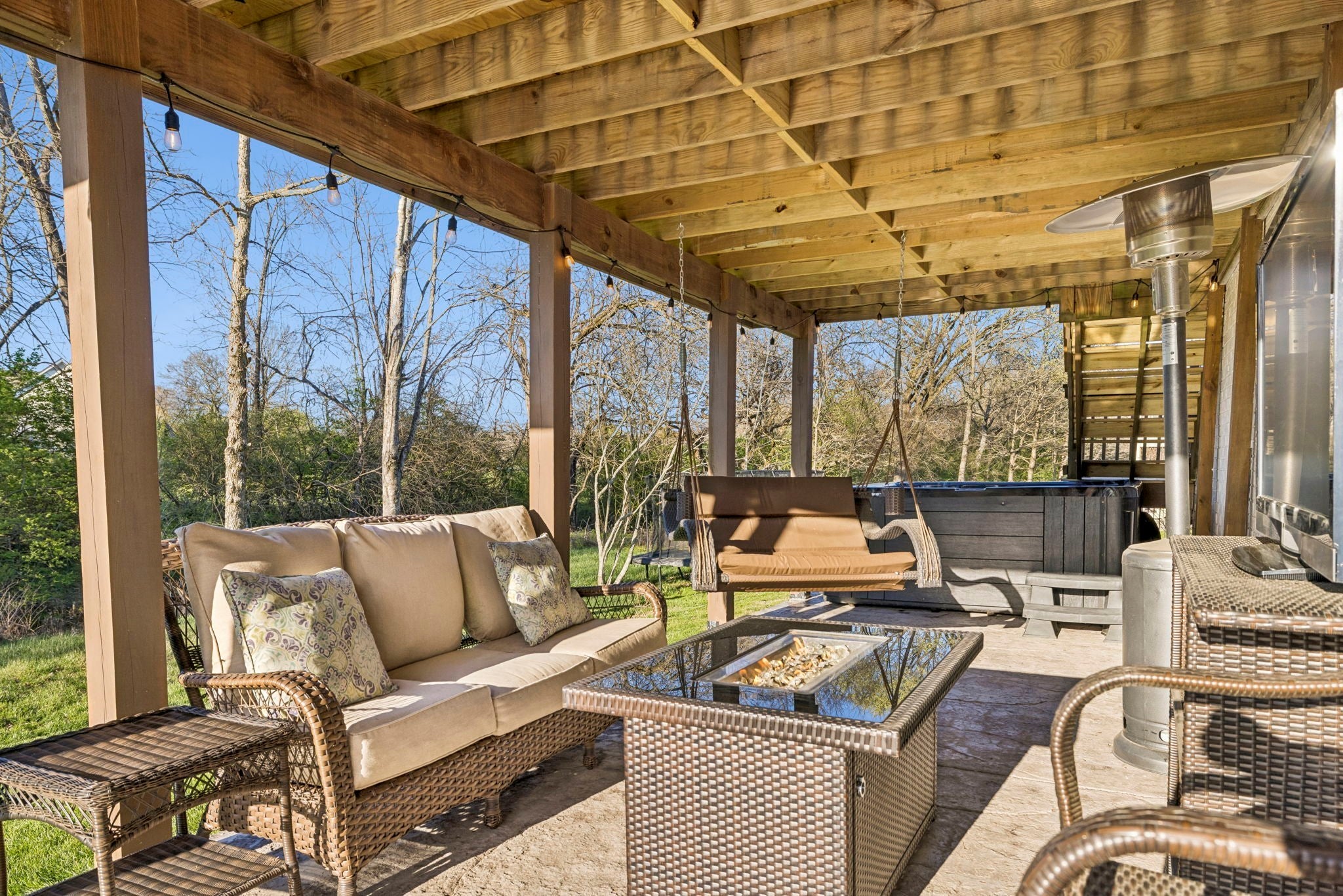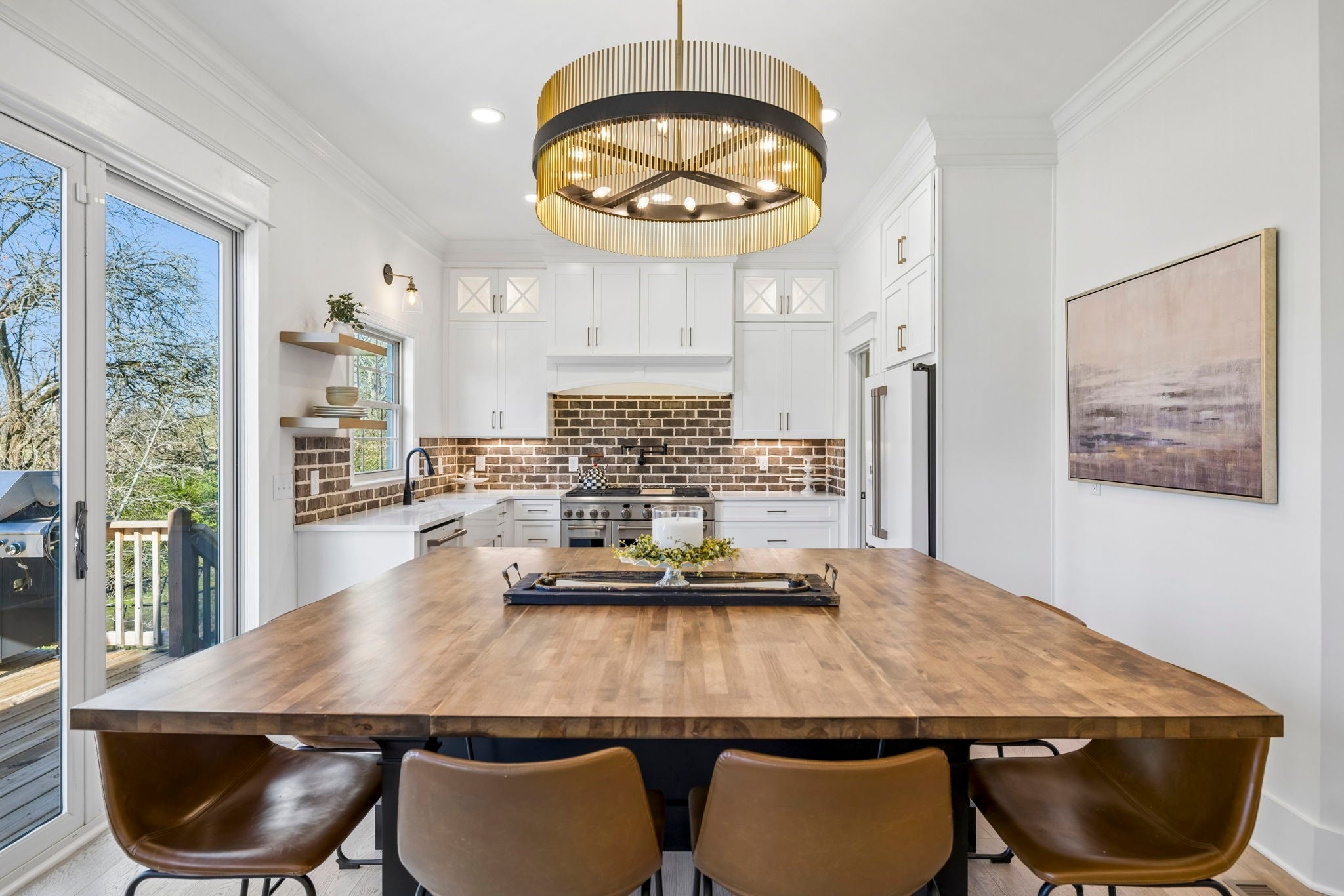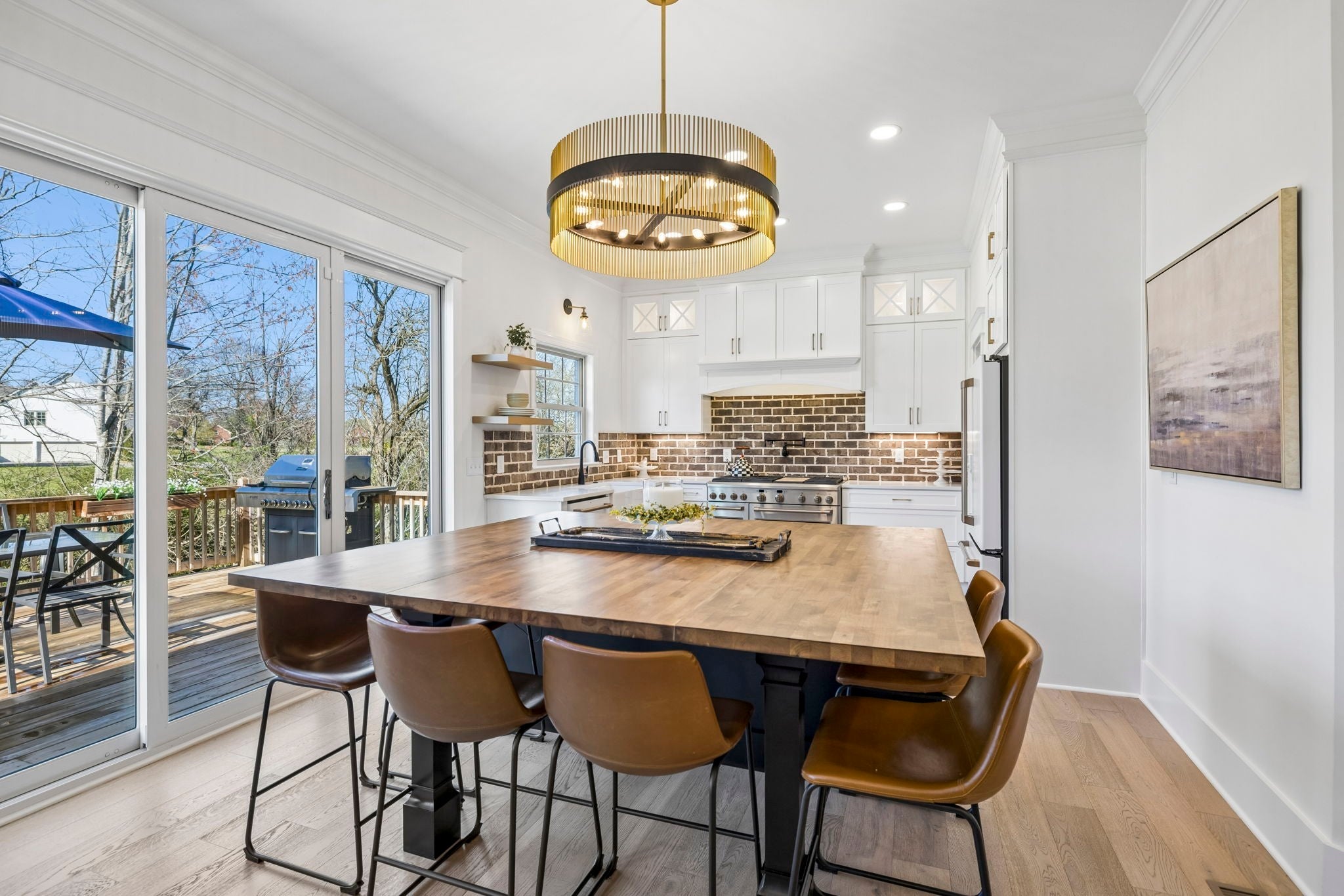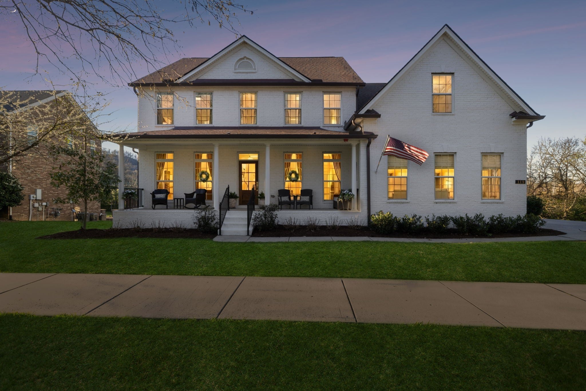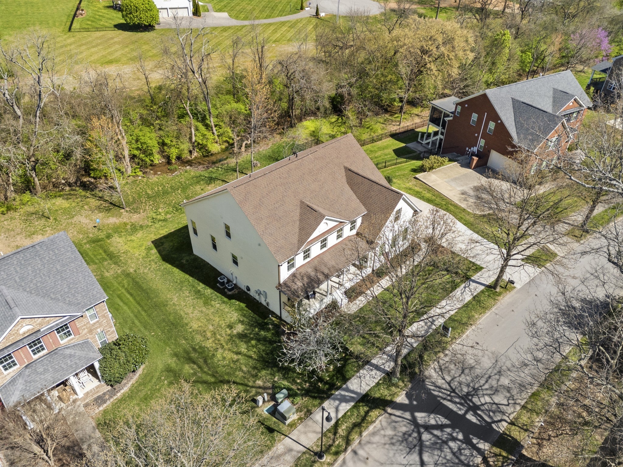 Stunning custom renovation in pristine condition within one of the best locations in Franklin with a basement that is perfect for in-laws, a nanny, kids/teenagers and peace of mind during storms! Charming white brick home with a large rocking chair front porch overlooking a picturesque park surrounded by mature trees. Enter into the foyer with a cascading staircase flanked by a home office with built ins and a formal dining room. The warm and inviting family room is anchored by a striking floor to ceiling brick fireplace that blends rustic charm with modern style and is surrounded by light hardwood floors, neutral walls and $50K in trim details. The thoughtfully designed and functional kitchen has a a large center island with rich wood countertops and a statement chandelier great for casual dining and meal prep. The 48 inch gas range, GE Cafe appliances, pot filler and walk in pantry are a chef's delight. The hidden coffee bar is a treat with its own pot filler. Natural light pours in through the expansive sliding glass doors connecting the home to the outdoor living area with year round views of Five Mile Creek and a wooded lot. The owner's suite has 11 foot ceilings and an updated bathroom with freestanding tub, 4x4 tile shower, extra hand held shower head & blue tooth speakers. 3 bedrooms with hardwood floors and 2 renovated bathrooms upstairs. Walk into the basement and fall in love all over again! This space is multi-functional with a full kitchenette that is perfect for overflow kitchen storage, a HUGE bedroom, full bathroom, media space, home gym/dance room & expansive walk in storage. Walk outside to the stamped concrete patio, waterproofed covered porch & hot tub to decompress at the end of the day. New roof, new garage doors, 3 car garage, tankless WH, Energy Star Home, new deck, new light fixtures & hardware, exterior uplighting! $300K in upgrades! 1 min to In N Out HQ & Berry Farms/2 min to I-65! Pool, park & trails. Immediate possession available.