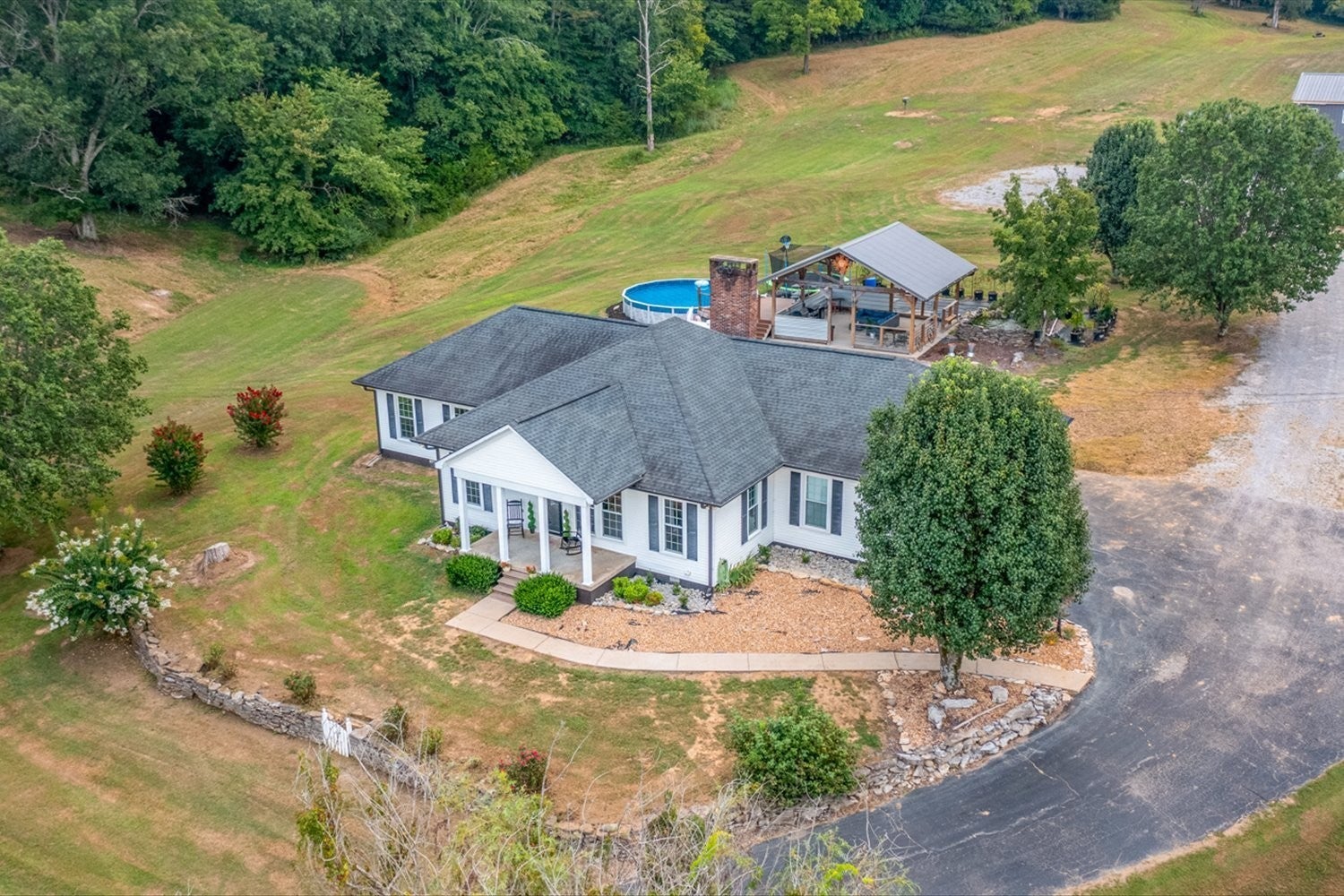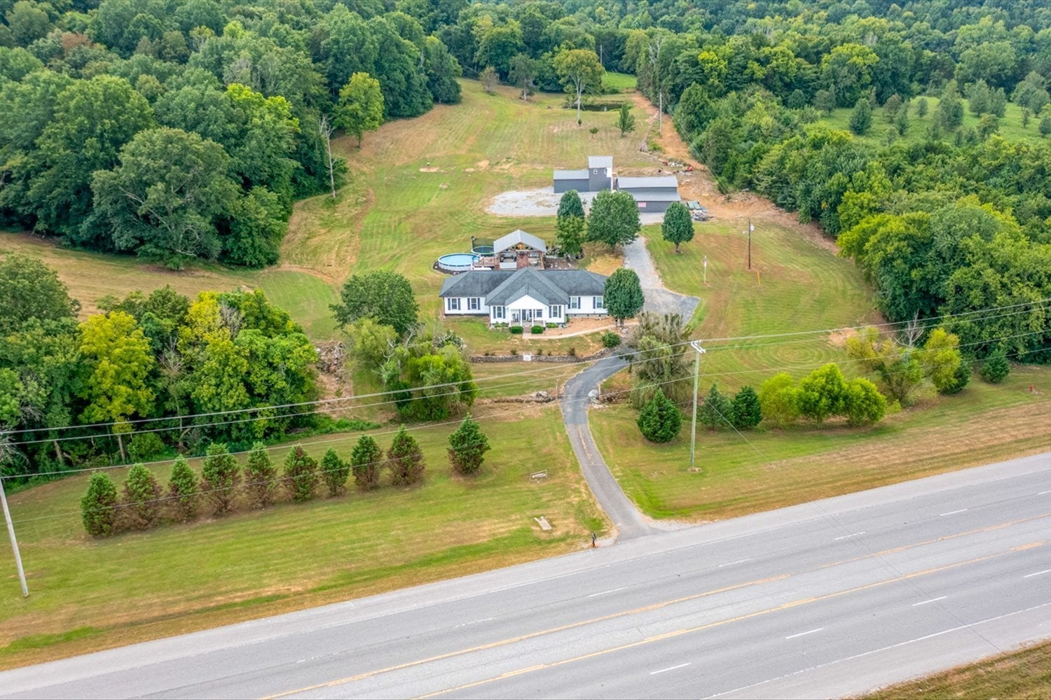 ONLY 1.9 MILES FROM I-65, APPROXIMATELY 60 MILES FROM HUNTSVILLE'S REDSTONE ARSENAL AND LESS THAN AN HOUR FROM BNA, this charming one level home situated on 35 acres of peaceful countryside with abundant wildlife, offers the perfect balance of wooded privacy and open pastureland. The almost 2100 square foot 3-bedroom, 3-bathroom home was designed for comfort and connection to the outdoors. A spacious pavilion invites gatherings under the open sky, while a well-equipped 50'x38' barn/workshop and sturdy 21'x40' pole barn provide space for hobbies, storage, or agricultural needs. A sparkling stocked pond adds beauty and tranquility, creating a serene backdrop for both relaxation and recreation. Whether you dream of a private retreat, a hobby farm, or a place to host unforgettable events, this property offers natural beauty and versatile amenities in a setting you’ll never want to leave.