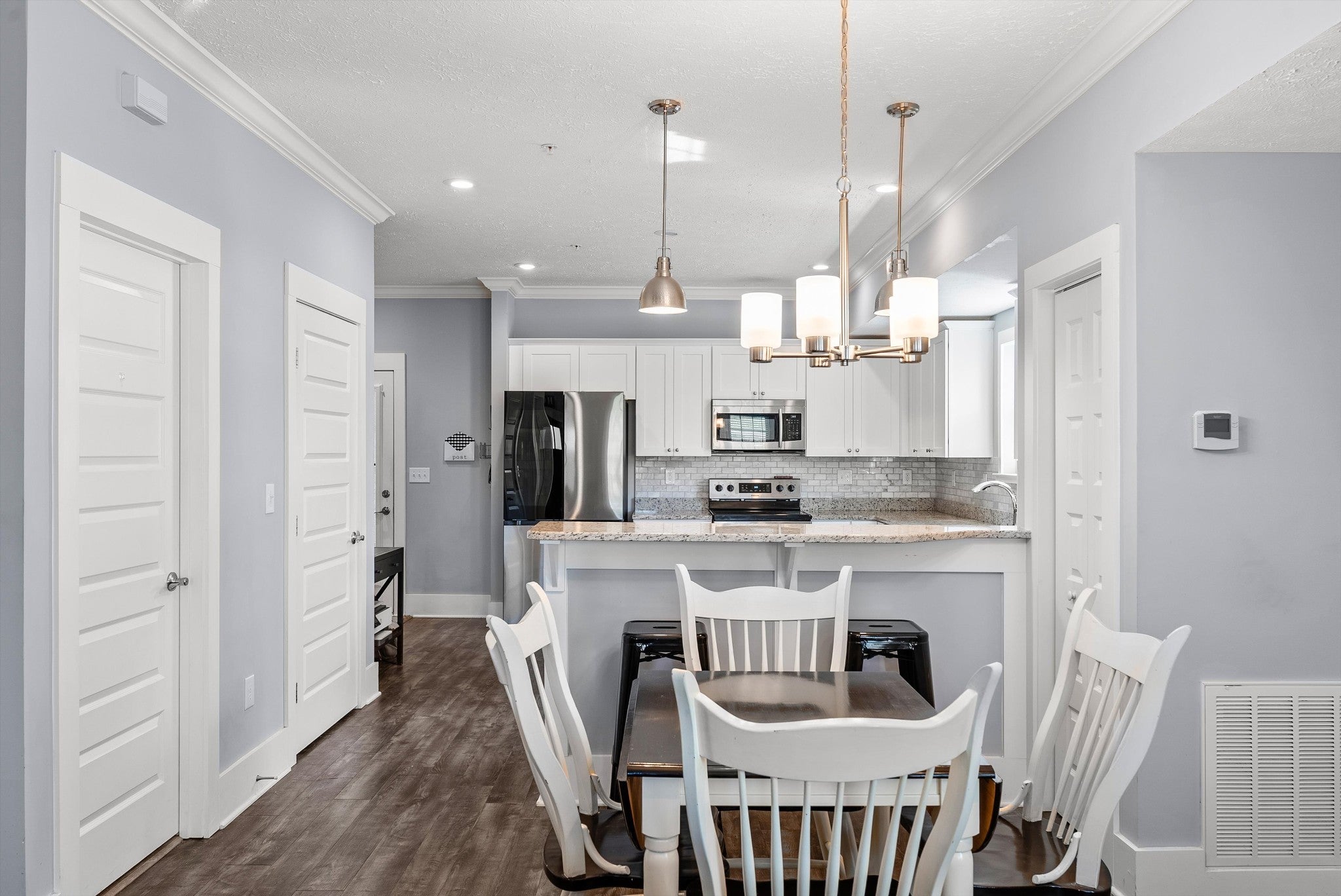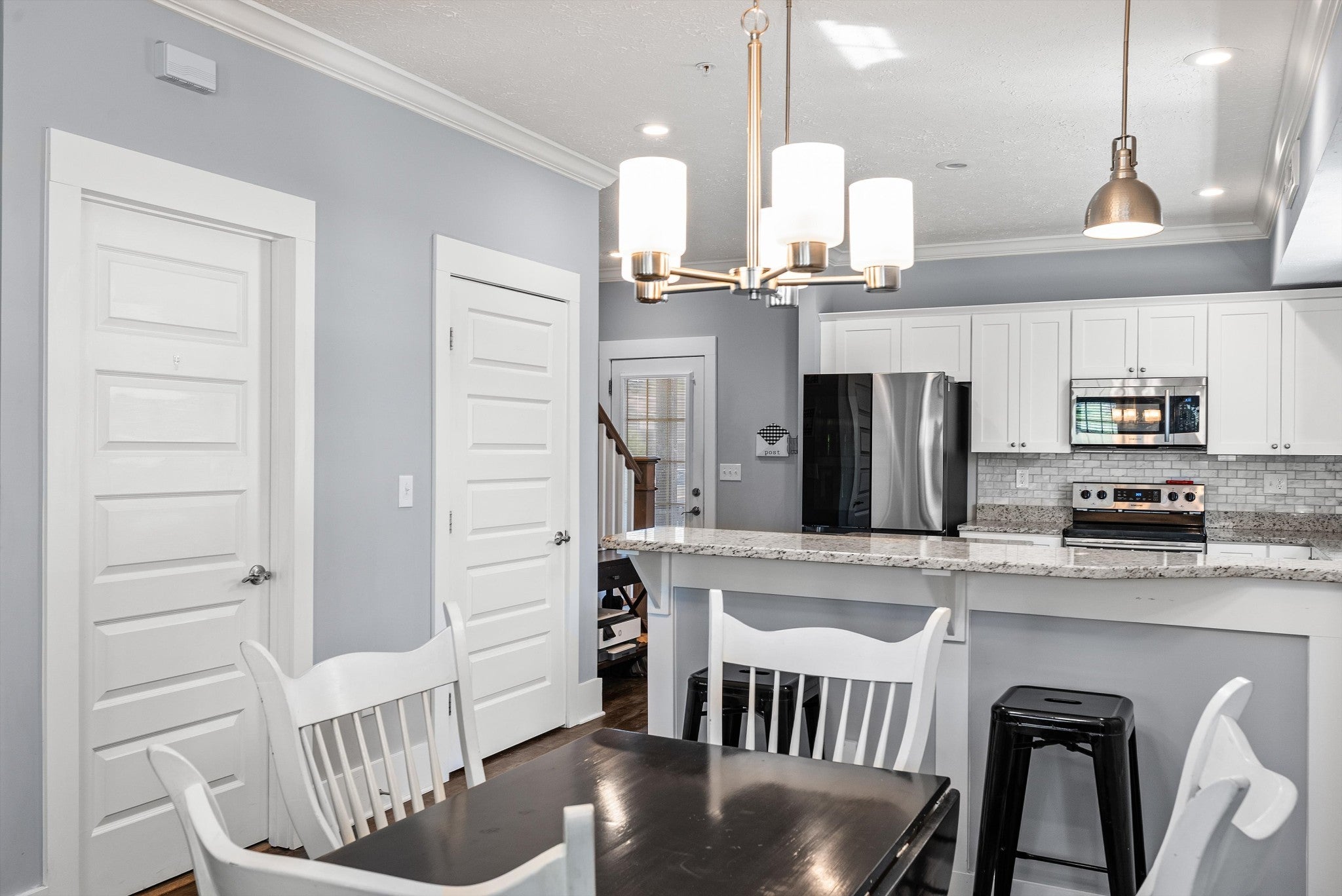 - Electric Oven, Electric Range, Dishwasher, Disposal, Dryer, Microwave, Refrigerator, Stainless Steel Appliance(s), Washer