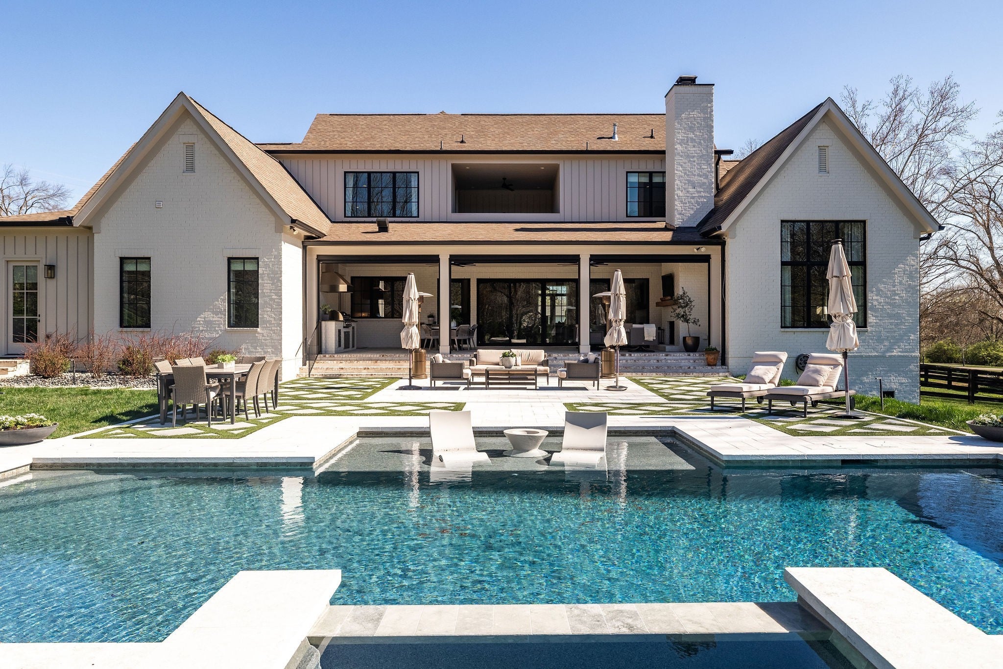 Welcome to your private Oak Hill retreat just minutes from the best Nashville has to offer. This 2023 home by Tennessee Valley Homes spans 6070SF and features five bedrooms (including two on the main level), five full baths, and two half baths. The highlight of this home is the flat, fenced and landscaped backyard with a gunite pool, elevated spa, waterfall, and expansive outdoor living space complete with motorized screens, a built-in grill, dining,and lounge areas. Inside, a dramatic two-story entry is flanked by a home office with a fireplace and on the other side a dining room with floor to ceiling windows. The main living room is spacious, featuring a gas fireplace, built-ins, and seamless views of the backyard. The kitchen includes a large island, paneled appliances, inset cabinets, a bar area with beverage fridge and ice maker, and a pantry with an additional sink, dishwasher, and ample storage. The primary suite is a true retreat with abundant natural light and backyard views, complemented by a luxurious bath with dual water closets, separate vanities, and a large closet with an island. Upstairs offers multiple storage options, including a dream entertainer’s closet, three ensuite bedrooms, and a large bonus space with a bar area. The three-car garage features epoxy floors and backyard access, and with no HOA, you can even bring your chickens. The yard has enough room for a pool house, sport court, trampoline or greenhouse. Tons of extra storage through the house! This home is located just minutes away from FRA and I65. It truly doesn't get better than this!