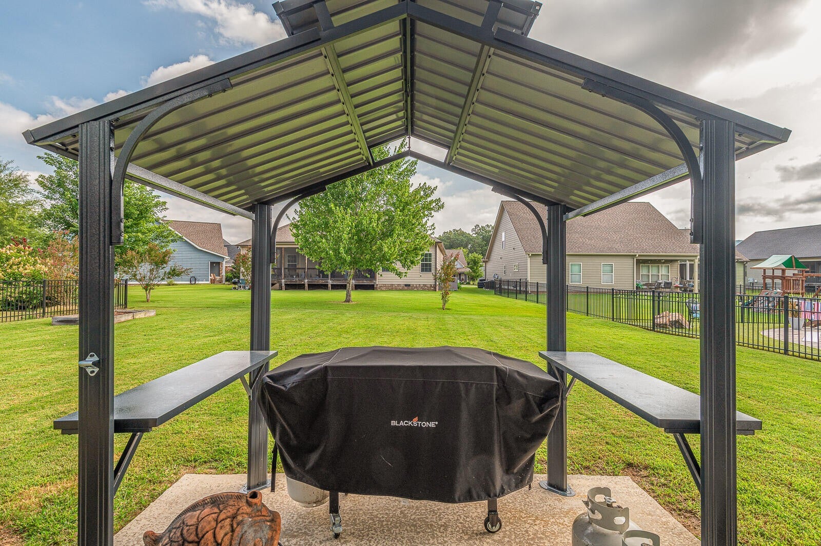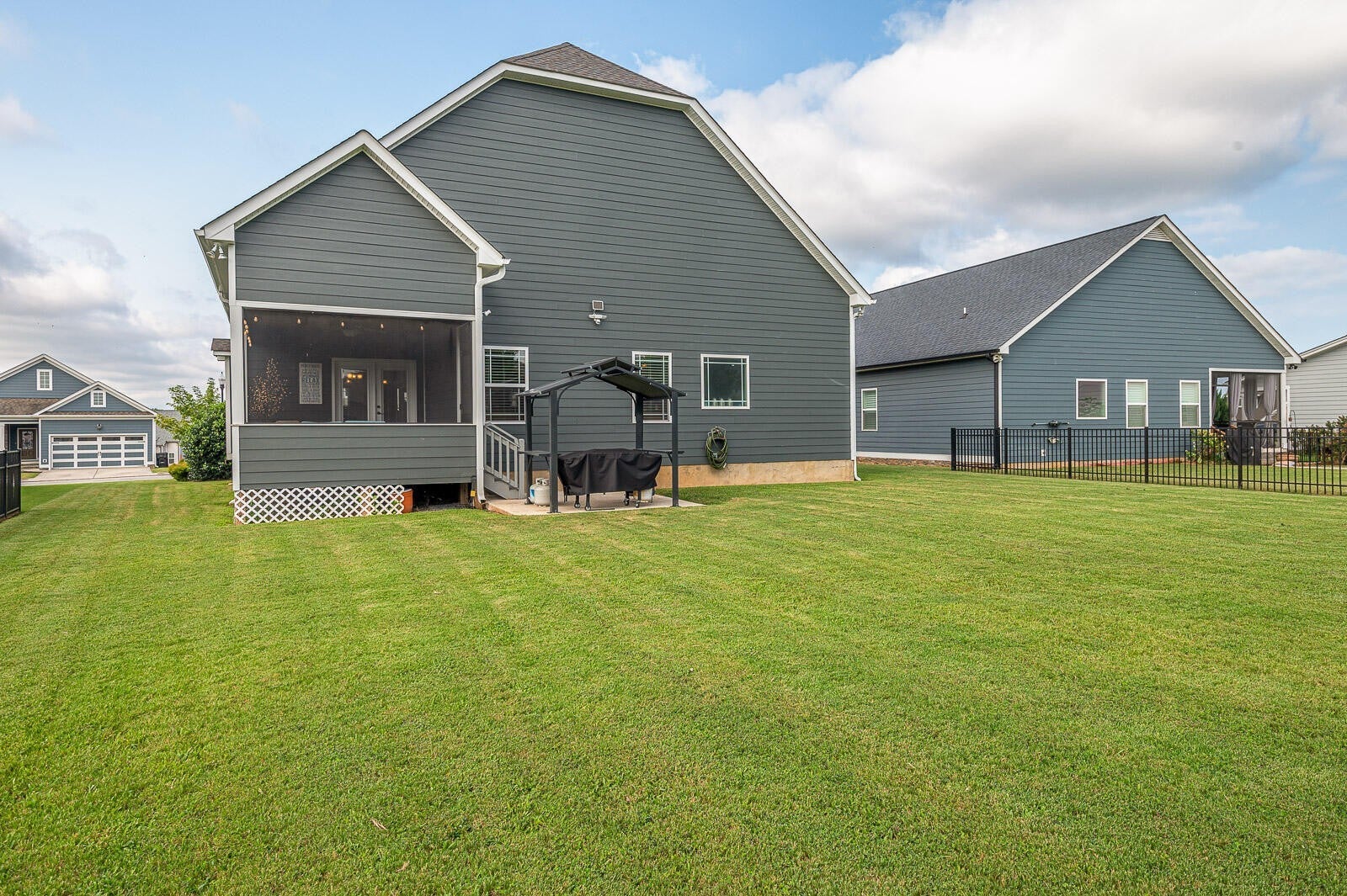 Set in the sidewalk-lined Providence Point neighborhood of desirable Ooltewah, this thoughtfully designed 4-bedroom, 3-bath Craftsman-style home offers bright, open living with year-round views of White Oak Mountain and a layout that grows with your family. Step inside to an inviting, light-filled main level where the open-concept living, kitchen, and dining areas create effortless everyday living. The spacious living room features a coffered ceiling and gas fireplace, flowing seamlessly into the kitchen--where you will love the large island, granite counts, tile backsplash, and exceptional storage, including two pantries (a walk-in pantry plus an appliance/storage pantry). All kitchen appliances remain. Tucked away for privacy, the main-level primary suite feels like a true retreat, complete with coffered ceilings, and a private hallway entrance. The ensuite bath offers dual granite vanities, a tiled shower, a jetted tub, and a walk-in closet. Two additional bedrooms with walk-in closets, full bath, large linen closet, and a generous laundry room complete the main level. Upstairs, the bonus room functions as a true 4th bedroom--ideal for a teen suite, guest space, or media room--with its own full bath, walk-in closet, and walk-in attic storage with room to expand. Outdoor living is just as inviting. Enjoy the screened porch, grilling patio with the attached Grillzebo (conveys), and large, level backyard. A covered front porch, 2 car garage with overhead storage racks (conveys), and additional parking pad. The home was custom built by DreamTech Homes, offering quality craftsmanship and energy efficiency throughout, plus a fully encapsulated crawl space with dehumidifier. Providence Point is known for its strong community feel, featuring sidewalks, street lights, two stocked fishing ponds, and added peace of mind with a license plate scanner at the neighborhood entrance, and some of the lowest HOA fees in Ooltewah.
