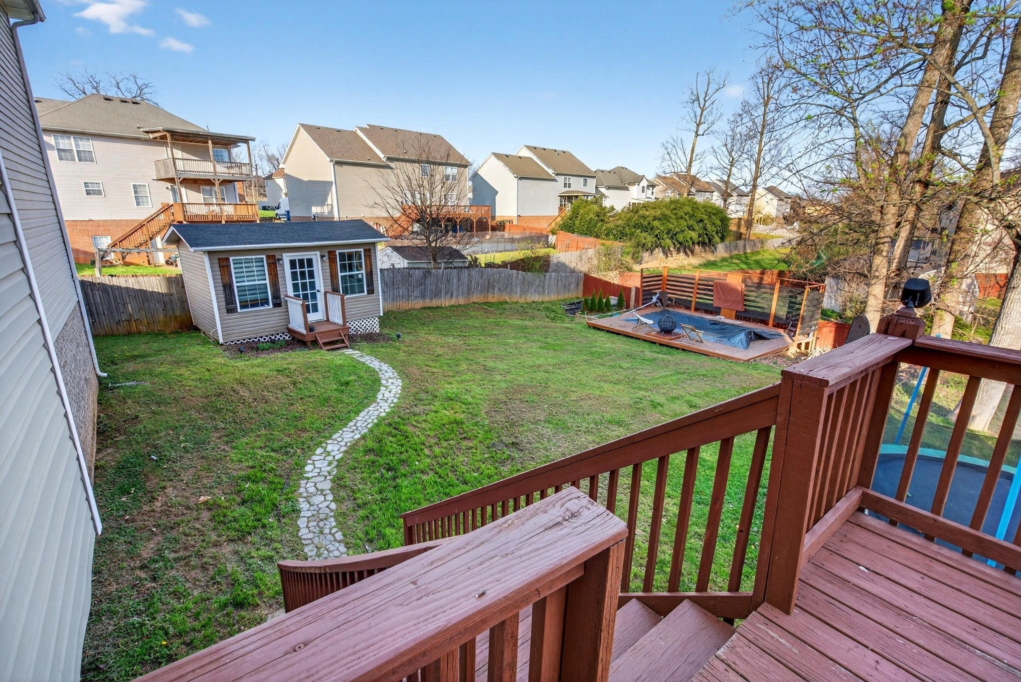 If you’re looking for a home with room for your life to happen, this is it. The thoughtful, spacious layout immediately feels like home, featuring a kitchen equipped with a custom reverse osmosis system and a brand-new dishwasher. The interior shines with updated bathrooms, including a primary suite with a jetted tub, double vanities, and bidet-equipped toilets. For those working from home, the detached office with a custom-built desk offers the ultimate quiet retreat. The real "wow" factor is the basement entertainment hub, which conveys with a slate pool table and a full theater setup (projector, screen, and curtains). Outdoors, enjoy a screened-in lower patio, a DIY pool, and a Viking fire pit with built-in seating. Major systems are move-in ready: the hot water heater was replaced in 2025, the roof is only 7 years old, and the garage floor is newly resurfaced. From the exterior storage shed to the massive upstairs bonus room, every inch of this home is designed for making memories. Spacious, upgraded, and ready for you!