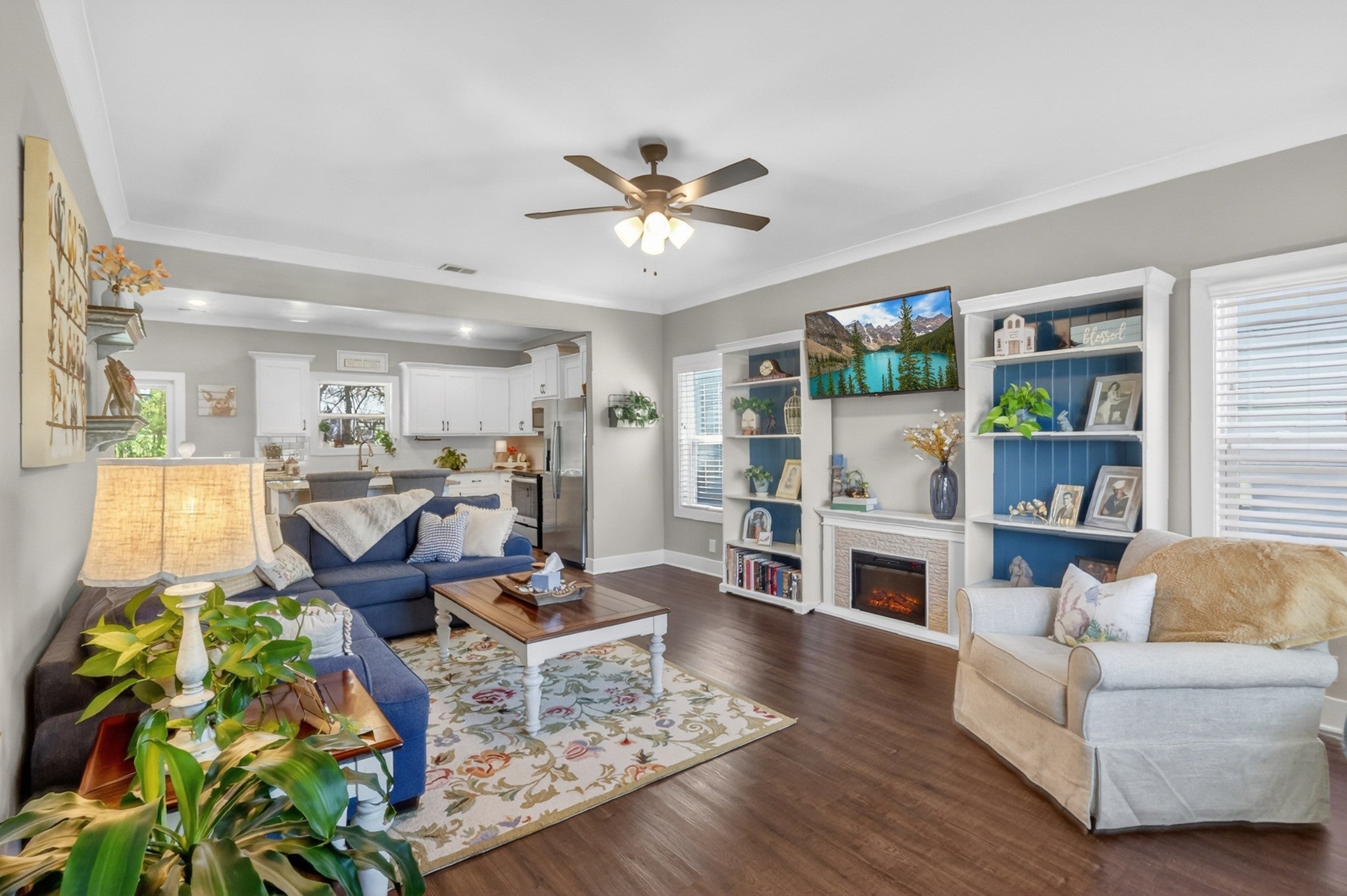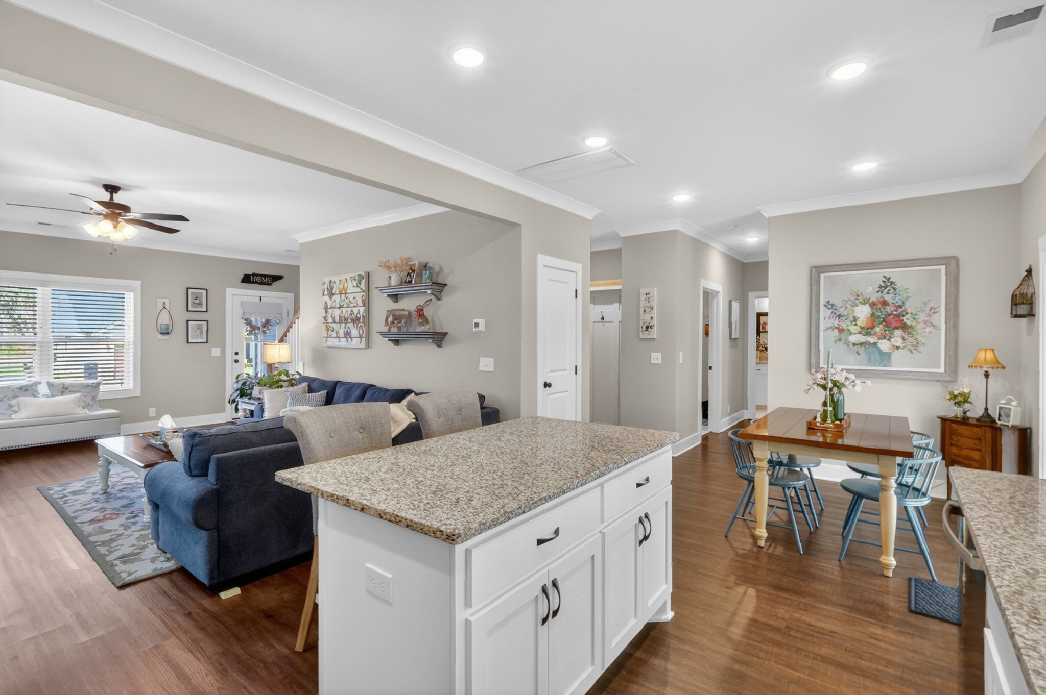 - Ceiling Fan(s), High Ceilings, Pantry, Kitchen Island