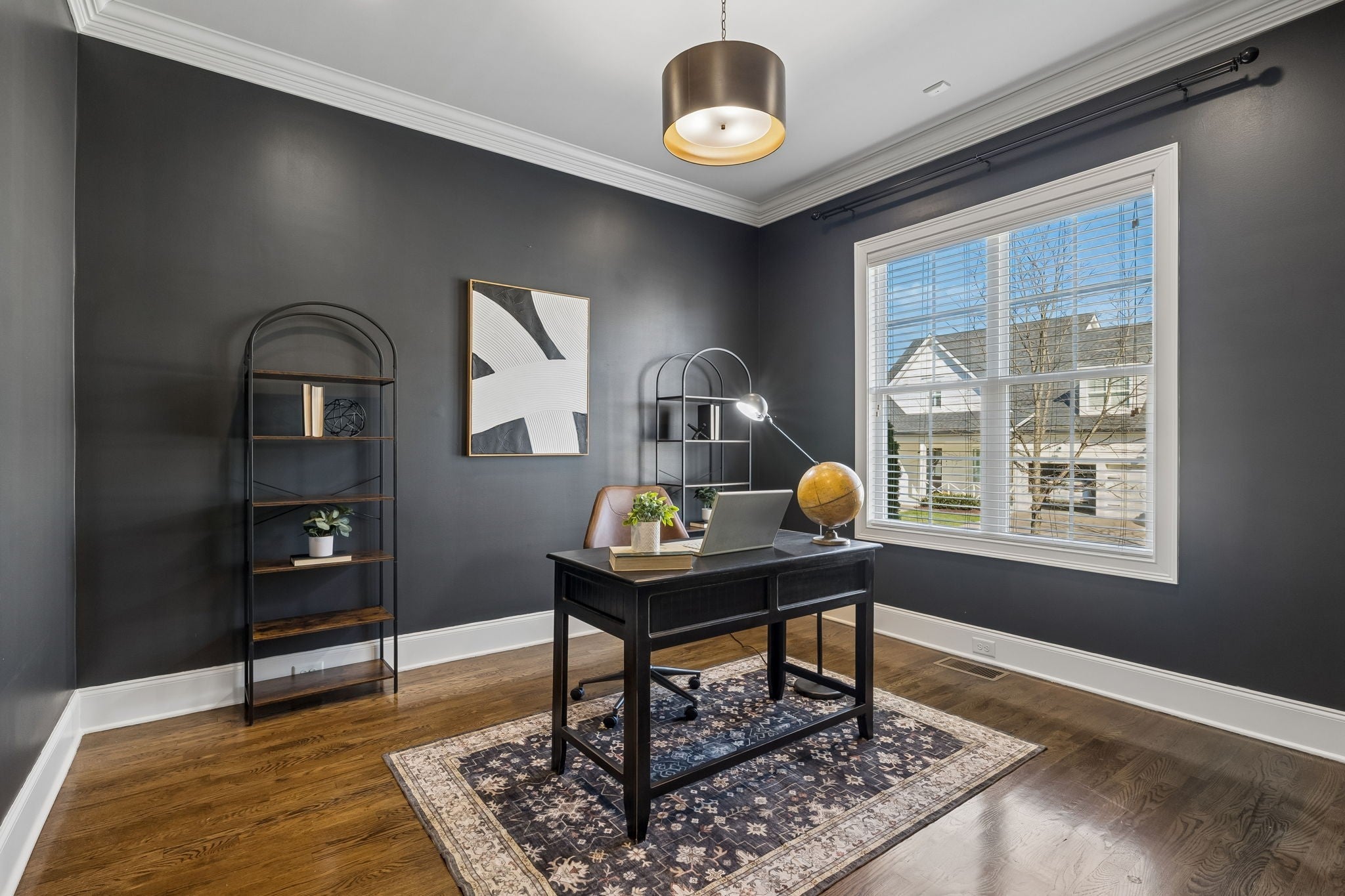 Welcome to this beautifully appointed Isabella plan by Ford Classic Homes in the highly sought-after Ladd Park community! This thoughtfully designed home offers 4 bedrooms, 4 baths, a dedicated office, and a spacious bonus room, with two bedrooms and two full baths on the main level—ideal for guests or multi-generational living. A charming covered front porch with classic Craftsman details creates a warm welcome. Inside, the open-concept layout seamlessly connects the kitchen, dining, and family room—perfect for everyday living and entertaining. The main level features 10’ ceilings, while the upstairs offers 9’ ceilings, enhancing the home’s spacious feel. The kitchen is the heart of the home, featuring abundant cabinetry, a large island with seating and pendant lighting, a walk-in pantry, granite countertops, tile backsplash, decorative vent hood, under-cabinet lighting, stainless steel appliances, a farmhouse sink, and a 5-burner gas cooktop. The family room is filled with natural light from large windows overlooking the backyard and features a tray ceiling, crown molding, a gas fireplace with tile surround, and custom window treatments. Sand-and-finish hardwood floors run throughout the main level common spaces and staircase, complemented by extensive trim and 8” baseboards. The main-level primary suite offers a tray ceiling, a large walk-in closet, a soaking tub, double vanities, and a tiled shower with a bench. A secondary bedroom and full bath, plus a private office, complete the main level. Upstairs includes two bedrooms—each with walk-in closets—a bonus room, and multiple unfinished storage areas. New carpet in the bonus room and all bedrooms. Enjoy a large, level, fenced backyard with a covered patio and an exterior gas line for grilling. Exterior repainted last year. Ladd Park amenities include pools, playgrounds, a clubhouse, trails, and more.