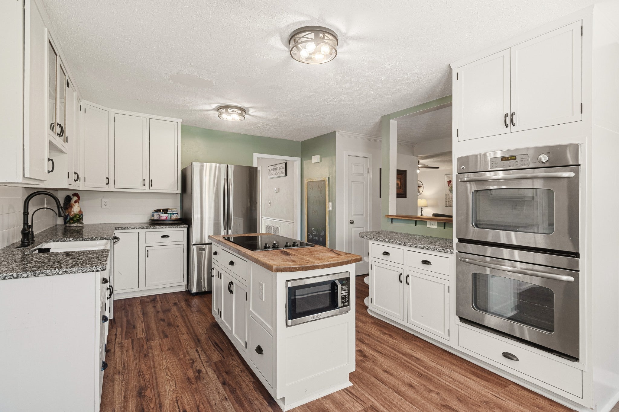 - Double Oven, Cooktop, Dishwasher, Dryer, Microwave, Refrigerator, Stainless Steel Appliance(s), Washer
