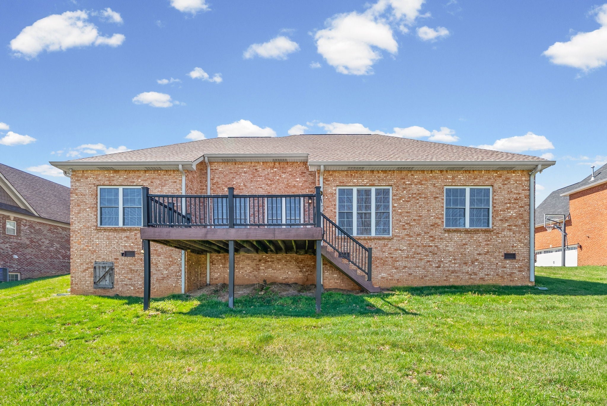 Welcome to this beautifully maintained brick home in the desirable Stones Manor subdivision, offering 2,800 square feet of spacious and comfortable living. This 3-bedroom, 2.5-bath residence features a well-balanced blend of hardwood, tile, and carpet flooring throughout. All bedrooms are conveniently located on the same level, including a truly impressive owner’s suite designed for relaxation, complete with a massive walk-in closet. The two additional bedrooms are generously sized and share a full adjoining bath, making the layout ideal for both family living and guests. The home offers inviting indoor and outdoor spaces, including a covered porch and a deck that’s perfect for entertaining. Immaculately maintained, this home is crisp, clean, and truly move-in ready. Enjoy community amenities that offer something for everyone, including a clubhouse and pool—perfect for relaxing or socializing year-round.
