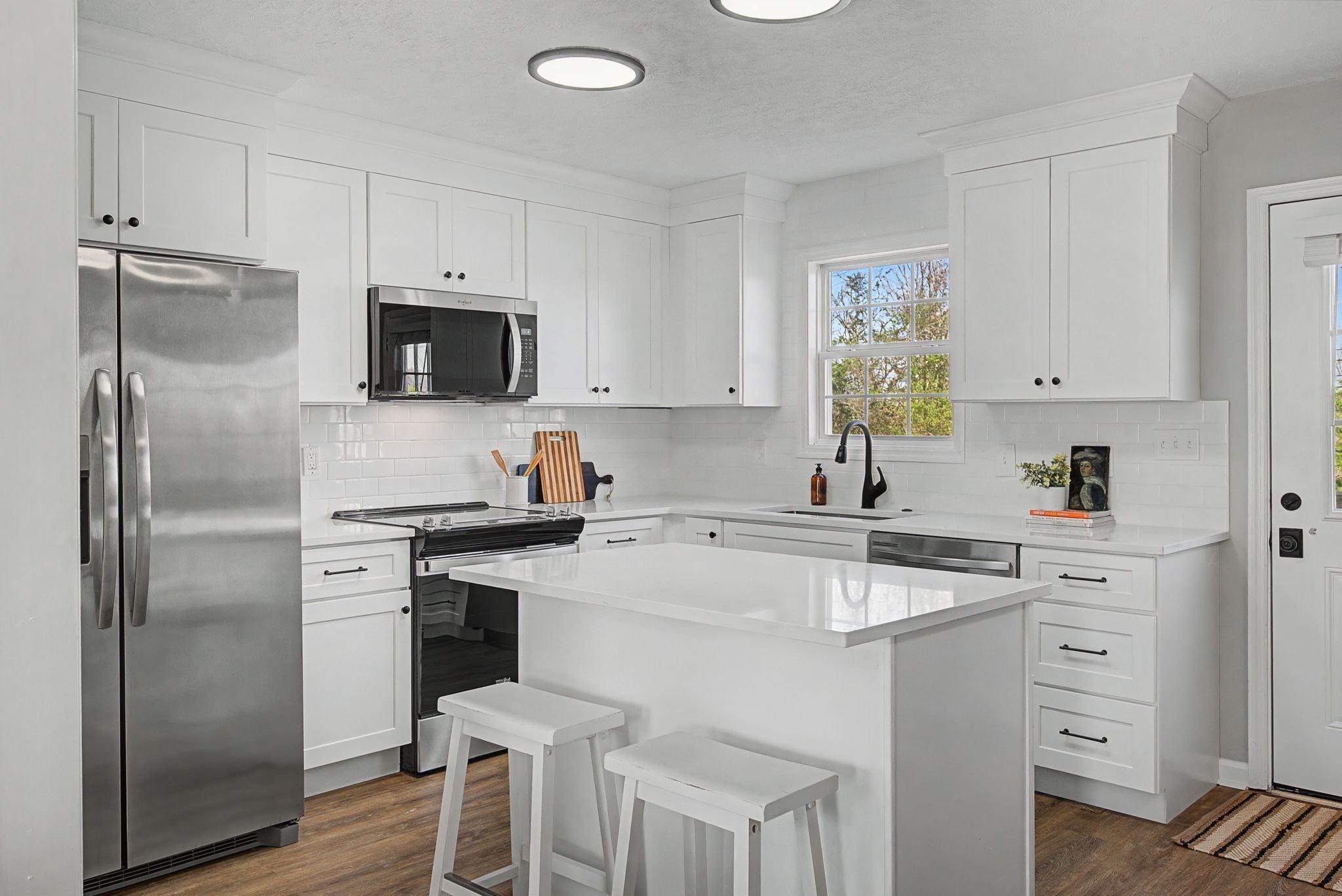 - Electric Oven, Electric Range, Dishwasher, Microwave, Refrigerator, Stainless Steel Appliance(s)