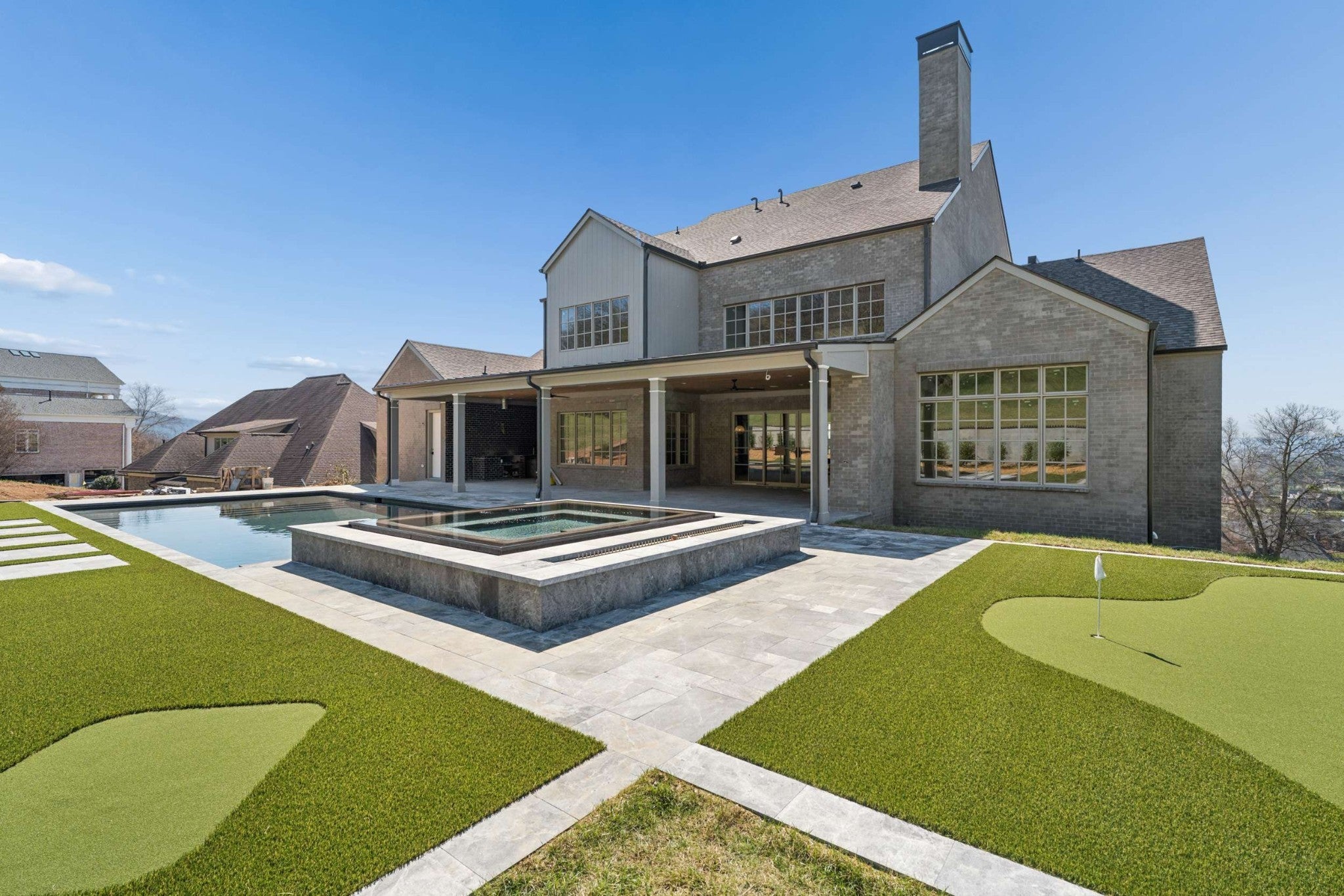 Welcome to 692 Legends Crest Drive. Perched at the highest point in Legends Ridge, this home was intentionally positioned to capture sweeping treetop and hillside views—something rarely found in Franklin. Expansive windows and grand-scale design bring those views into nearly every room, creating a constant connection to the landscape. The home’s mortar-rubbed brick exterior and striking rooflines establish a true Nashville Tudor presence—timeless, elevated, and undeniably refined. Inside, the home lives as a complete lifestyle experience. Seamless flow from interior spaces to covered porch to pool creates effortless indoor-outdoor living, while soaring ceiling heights and oversized casement windows fill the home with natural light and a sense of scale. Purpose-driven amenities include a dedicated theater or golf simulator space, a fitness room with space for a sauna, a beautifully encased wood wine room, elevator access, and multiple indoor and outdoor entertaining areas. The pool and spa, complete with a dedicated pool bath, and a private putting green further elevate the experience—while independent bedroom suites offer comfort and privacy for guests. Every detail has been thoughtfully curated, from custom marble and stone selections to designer lighting and elevated finishes throughout. And at the heart of the home—the kitchen. A true showpiece. An oversized island and dramatic marble range hood anchor the space, delivering a striking focal point and an unforgettable first impression. 692 Legends Crest is more than a home—it sets the standard. Offering close proximity to downtown Franklin with a fully realized, luxury lifestyle built in. Welcome home.