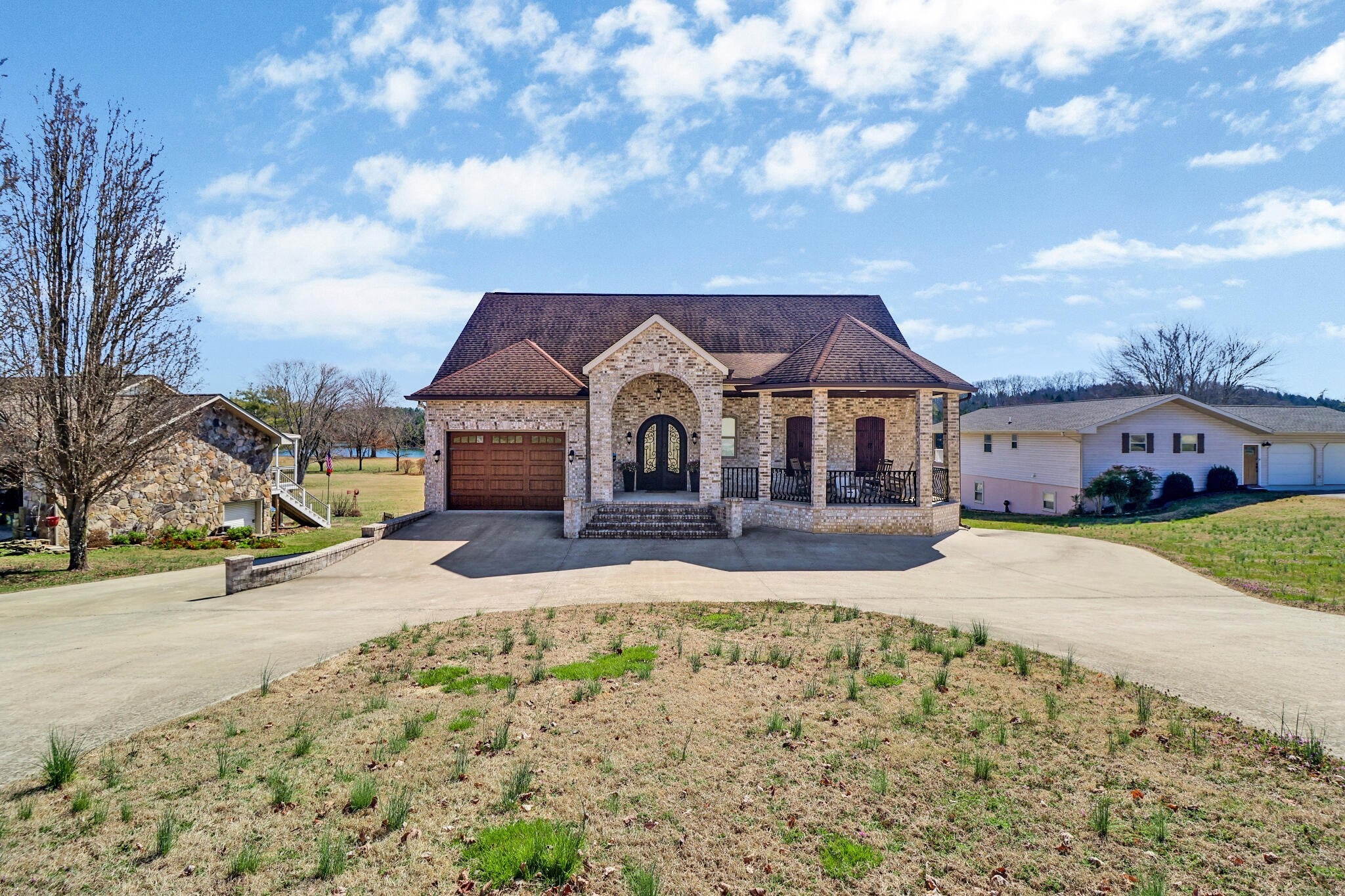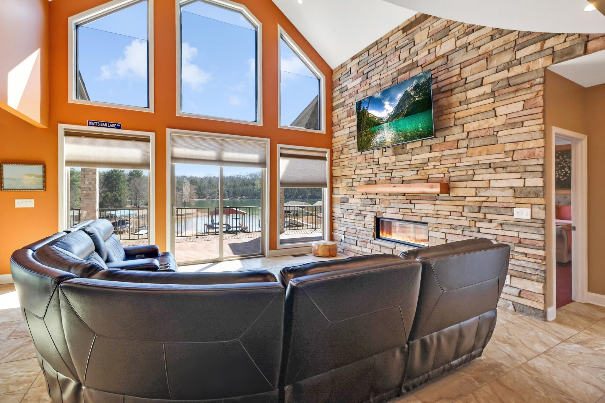 Discover a stunning lakefront gem with rare private boat ramp and two slip dock. Fully furnished with immediate short term rental income opportunity. Located in the desirable Sable Hills community of Spring City, TN. This exceptional 2,640 sq. ft. home, built in 2017, boasts 3 bedrooms and 5 bathrooms (3 full, 2 half). Comfortably sleeping 12-14 guests. Prepare to be impressed from the moment you pass through the custom-designed steel front doors and enter the foyer with barrel vaulted ceilings. The open-concept living area features a double-sided remote fireplace encased in floor-to-ceiling stonework, and spectacular two-story viewing windows that perfectly frame the peaceful Watts Bar Lake and mountain backdrop. The gourmet kitchen is an entertainer's dream with granite countertops, a large island, natural gas stove, and stainless steel appliances. Step outside onto the partially covered 12x50 TREX deck to soak in the water views, sauna, and enjoy amenities like a private dock and boat ramp. The property, which sits on 0.46 acres, also features ample garage space and a circular driveway. This property is also turn key ready to list on short term rental sites. From full personal relaxation to instant investment return, this property is ready to fulfill your wishes.