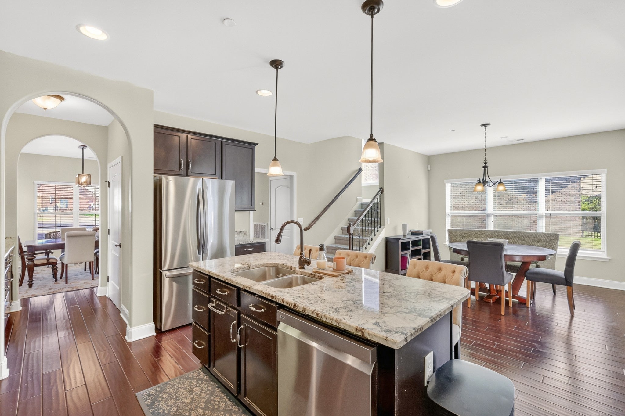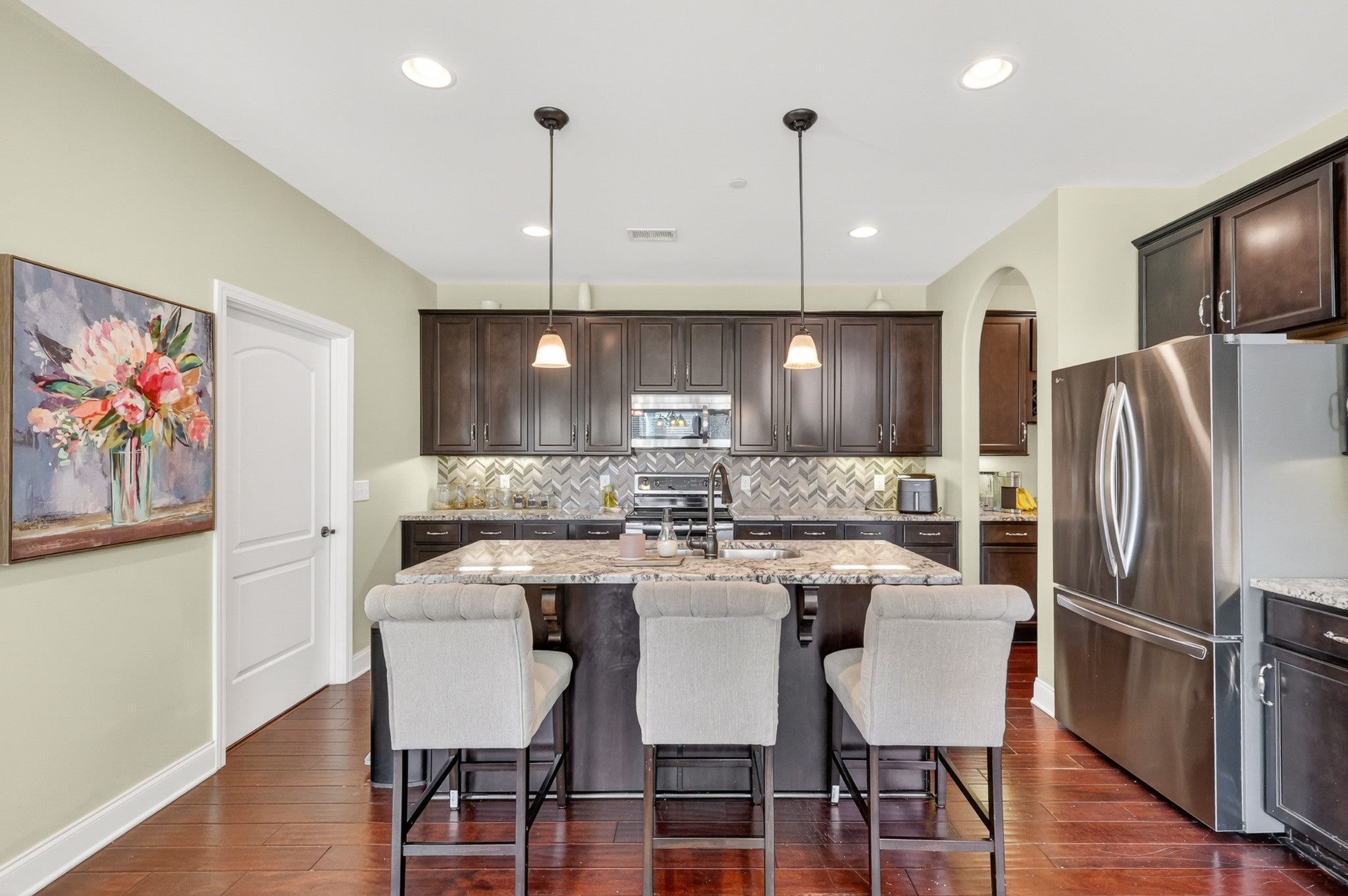 - Built-In Electric Oven, Double Oven, Cooktop, Dishwasher, Disposal, Microwave, Refrigerator