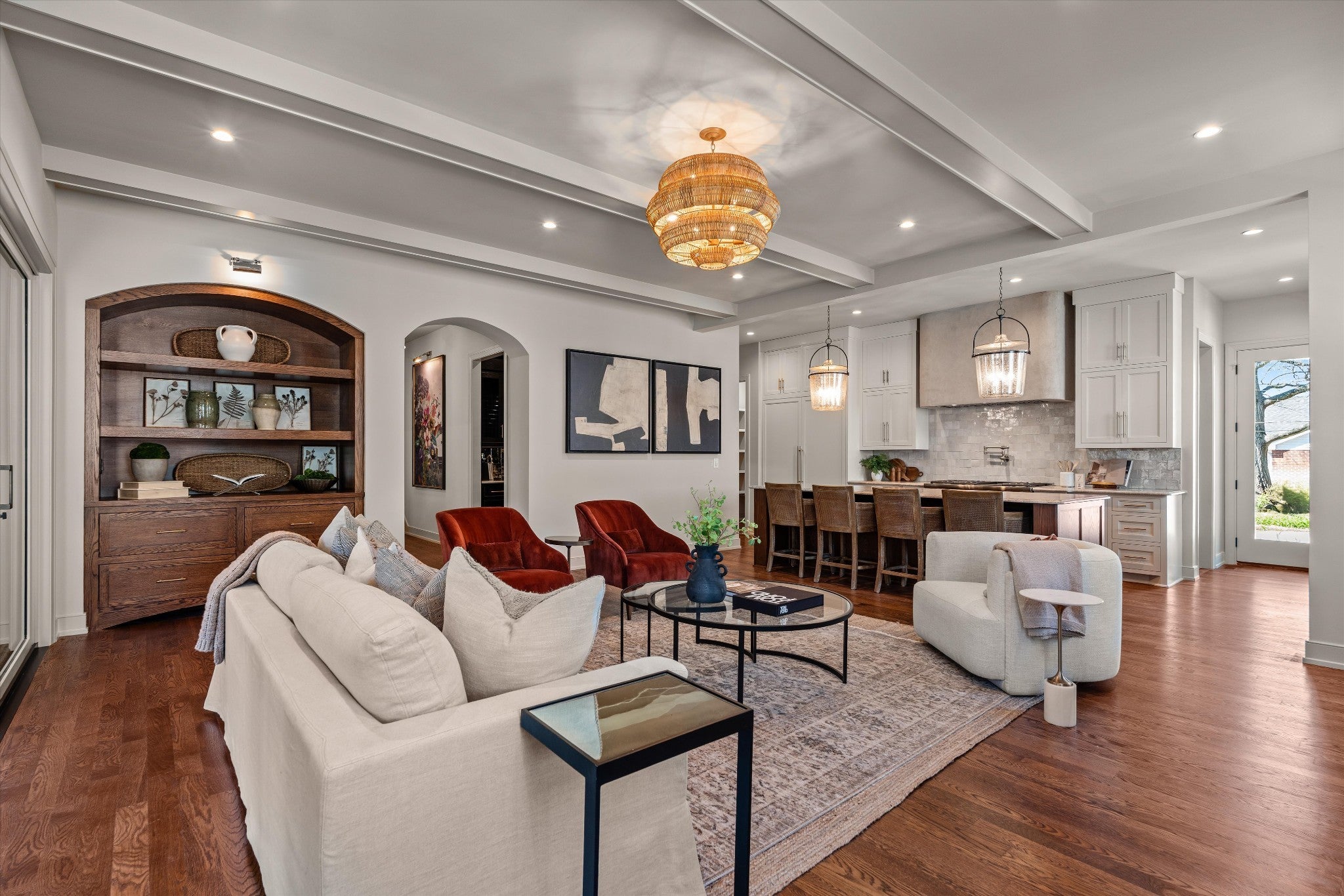 There’s a difference between a home that checks boxes and one that sets a standard, and 1914 Beechwood lands firmly in the second category. Built by Maker, with architectural direction by Allard Ward and interiors by ALK Designs, this is not a house that leans on trends, it’s one that understands them, refines them, and moves past them. Every surface feels considered, not just selected but placed with intention, as the palette carries, quietly but confidently, from room to room, layered greens, warm woods, moments of contrast, texture that invites you in without ever overwhelming the space. It’s a level of restraint that’s hard to execute and even harder to find. What stands out isn’t excess, it’s control. The cabinetry, the tile work, the transitions between materials, nothing feels accidental. There’s a rhythm to the interiors, something you notice in the way light moves through the rooms and how each space reveals itself without trying too hard. This is taste-making design, not formula-driven construction, rejecting the expected and replacing it with something far more deliberate. And then there’s how it lives. Three distinct porches create a natural extension of the home, each with its own purpose and tone, while the screened porch, anchored by a fireplace and outdoor kitchen, feels like a destination, not an add-on. The yard is fully realized and hardscaped with intention, designed to be used, not just admired, set on an expanded lot that gives the property real presence. Behind it all, the functionality matches the design, a rare three-car garage, a laundry room on every level, a half bath on every level, and a basement-level pool party kitchen with a dedicated pool bath that turns the backyard into a true hosting environment. Plenty of homes aim to impress, this one understands how to endure.