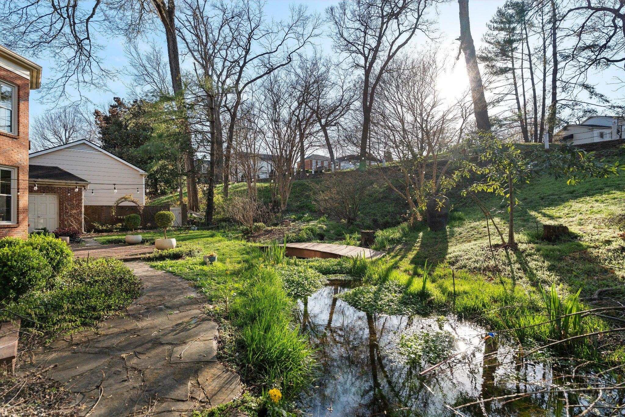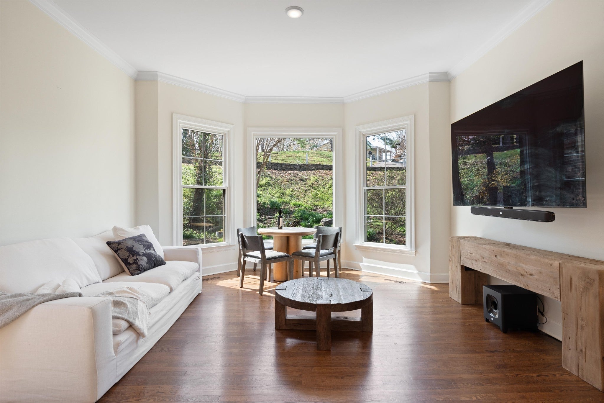 There’s a rare kind of home that feels both rooted in tradition and effortlessly modern—where timeless craftsmanship meets the rhythm of city living. Set in a prime Nashville location, this exceptional 6-bedroom, 5.5-bath residence offers over 5,300 square feet of thoughtfully designed living space, blending urban sophistication with classic Southern charm. Owned by just two families since its construction, the home carries a rich sense of history—highlighted by custom wood inlays and intricate millwork crafted from timber sourced from the original family’s land, adding warmth, character, and a story you can feel the moment you walk through the door. Designed for both elevated living and everyday comfort, the home features a private wellness suite that rivals a luxury spa, complete with a Swedish-style sauna, dedicated cold plunge room, and a flexible yoga or fitness studio—creating a true retreat within your own home. For creatives and professionals alike, a professionally built music and podcast studio with sound-insulated construction and a fully treated vocal booth offers a rare opportunity to produce, record, and create without ever leaving home. The primary suite is a serene, resort-inspired escape, featuring a spa-like bath wrapped in floor-to-ceiling Italian Calacatta marble, heated floors, a custom single-slab vanity, and an expansive shower with dual heads, rain shower, hand spray, and massage jets, complemented by a deep soaking tub. Located just moments from Nashville’s best dining, shopping, and entertainment, this home offers a rare blend of history, luxury, and modern functionality—crafted for those who appreciate both heritage and refined living.