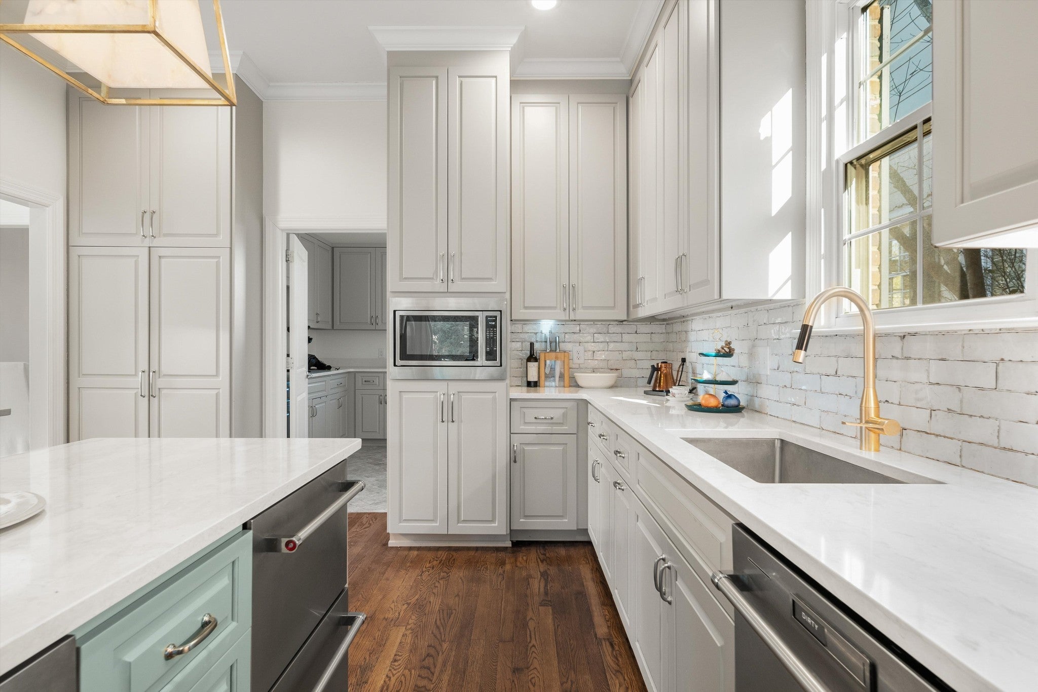 - Double Oven, Gas Oven, Cooktop, Dishwasher, Disposal, Ice Maker, Microwave