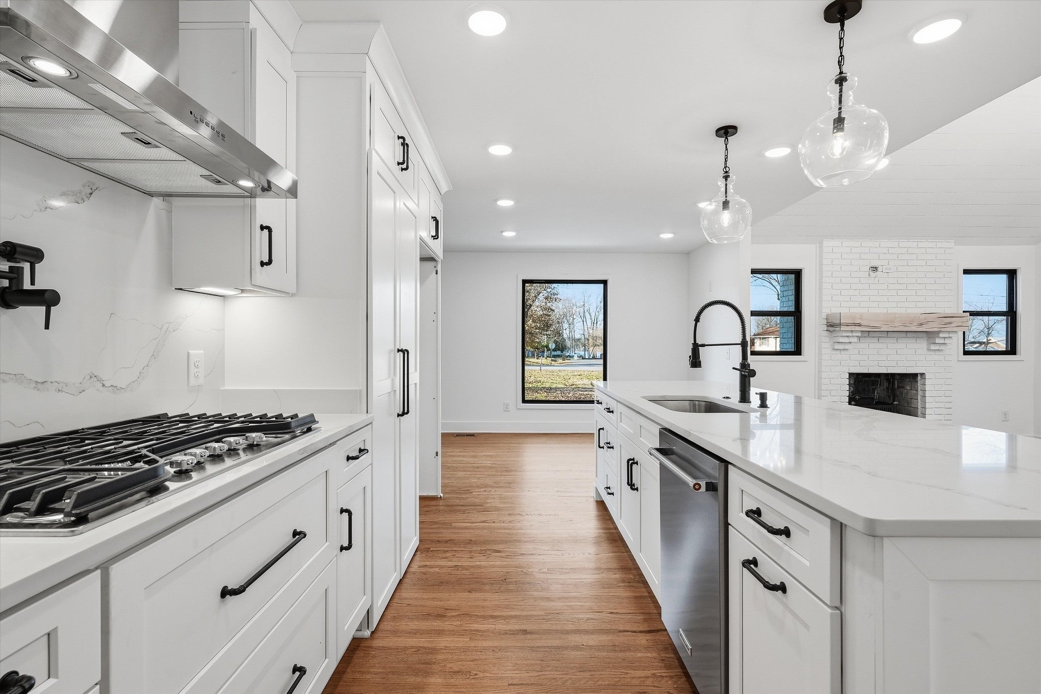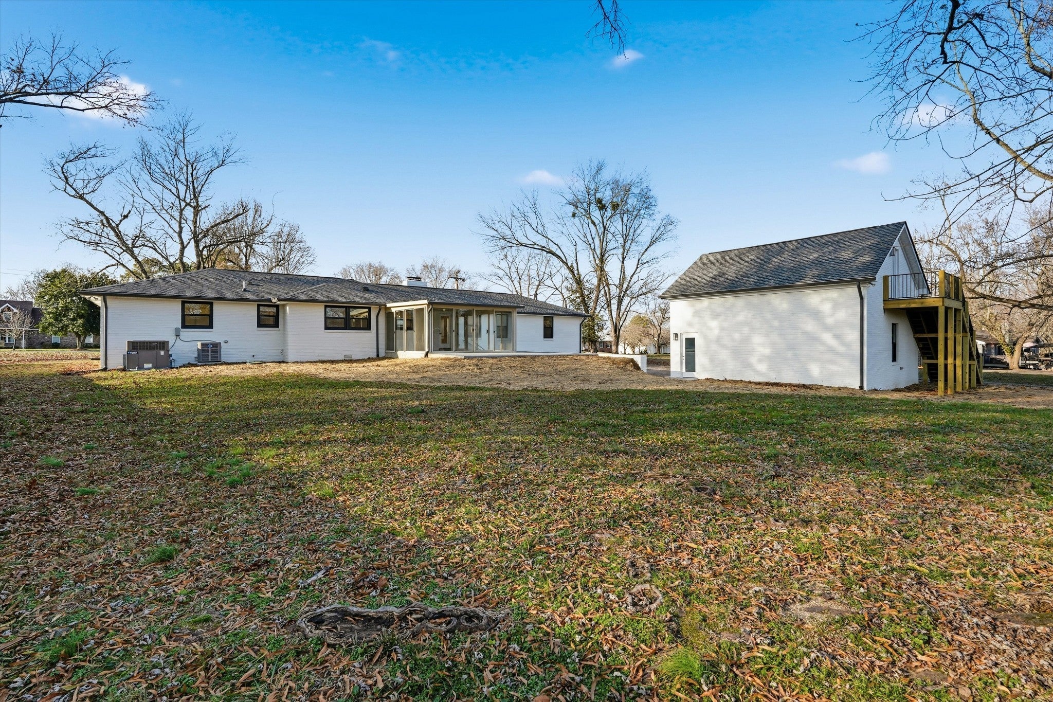 Beautiful renovated home on a large level lot on the Indian Lake Peninsula in Hendersonville, TN. No steps on this ranch home! Modern comfort, exceptional outdoor space, and an ideal setting for a relaxed and active lifestyle. This 4-BR, 3-BA home sits on nearly ¾ of an acre level land providing ample room for outdoor living and family gatherings. Inside, the home features an inviting open layout with a bright kitchen/dining area and a vaulted family room centered around a beautiful brick fireplace. The newly remodeled kitchen includes shaker cabinetry, a walk-in pantry, large island, quartz countertops and backsplash, and pro-style stainless appliances with double ovens and a stainless range hood. The primary suite offers a private retreat with a free standing tub, tile shower, double quartz vanity, and a spacious walk in closet with custom wood shelving. The secondary bedrooms are generously sized and served by an updated Jack/Jill bathroom with a tile shower and a double sink quartz vanity. A third full hall bath provides even greater flexibility for guests. Outdoor living shines here: enjoy a large covered Sunroom and a uncovered patio, mature trees, and an expansive lawn perfect for recreation or future enhancements. The detached oversized 2-car garage includes a substantial upstairs storage room with its own private entrance—ideal for a workshop, hobby space, or secure storage. Additional upgrades include new insulation, roof, windows & doors, custom wood shelving throughout, featuring sand-and-finish hardwoods and LED lighting. Located in the Indian Lake School zone and just moments from the Indian Lake Forest Swim & Tennis Club, Stark Knob Boat Ramp, Hendersonville Parks, and the conveniences of Hendersonville being the "City by the Lake". U.S. News and World Report just voted Hendersonville #1 Best Place to live in Tennessee! No HOA. 12 month lease option also available