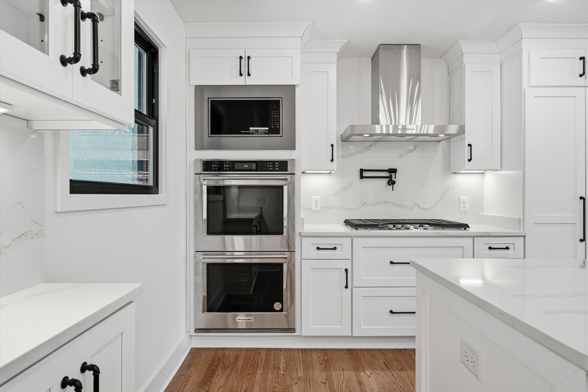 - Built-In Electric Oven, Double Oven, Cooktop, Dishwasher, Disposal, Microwave, Stainless Steel Appliance(s)