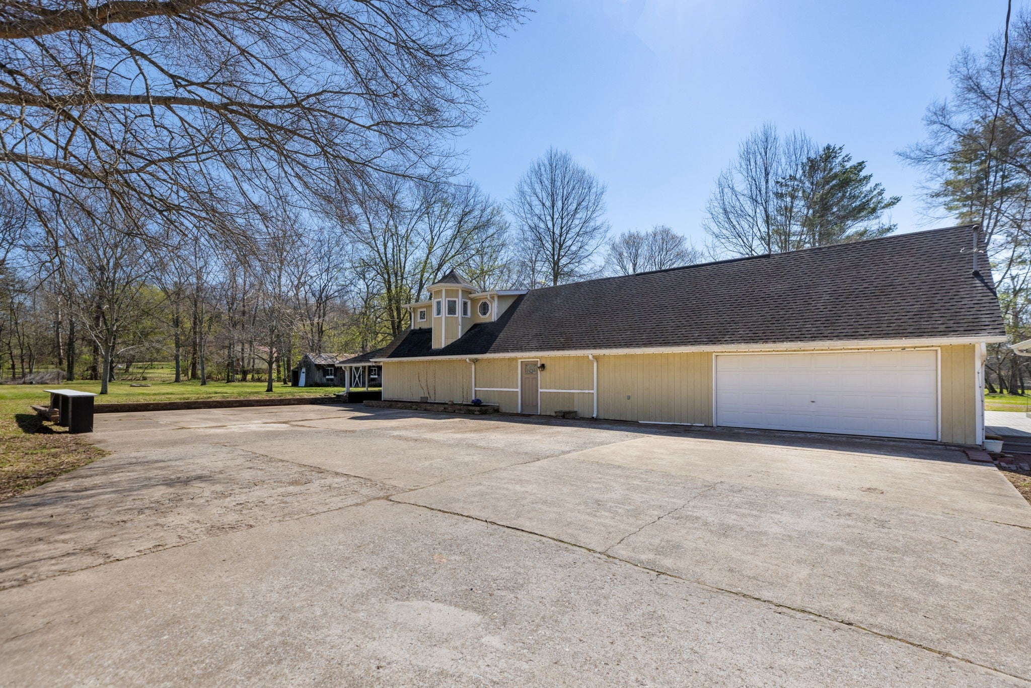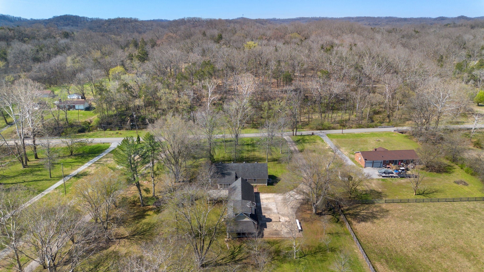 2+ acres of level property with a 3-bedroom / 2 bathroom home with vaulted ceilings, a bonus room, and sunroom/4 seasons room. Plus an additional 1728 sq ft. structure with a professionally built music studio, 2 bedrooms plus offices, full and half bathroom, kitchen with eating area, and 2 car garage. Conveniently located only 17 miles from downtown Nashville, yet this property offers the benefits of serenet, quiet living.