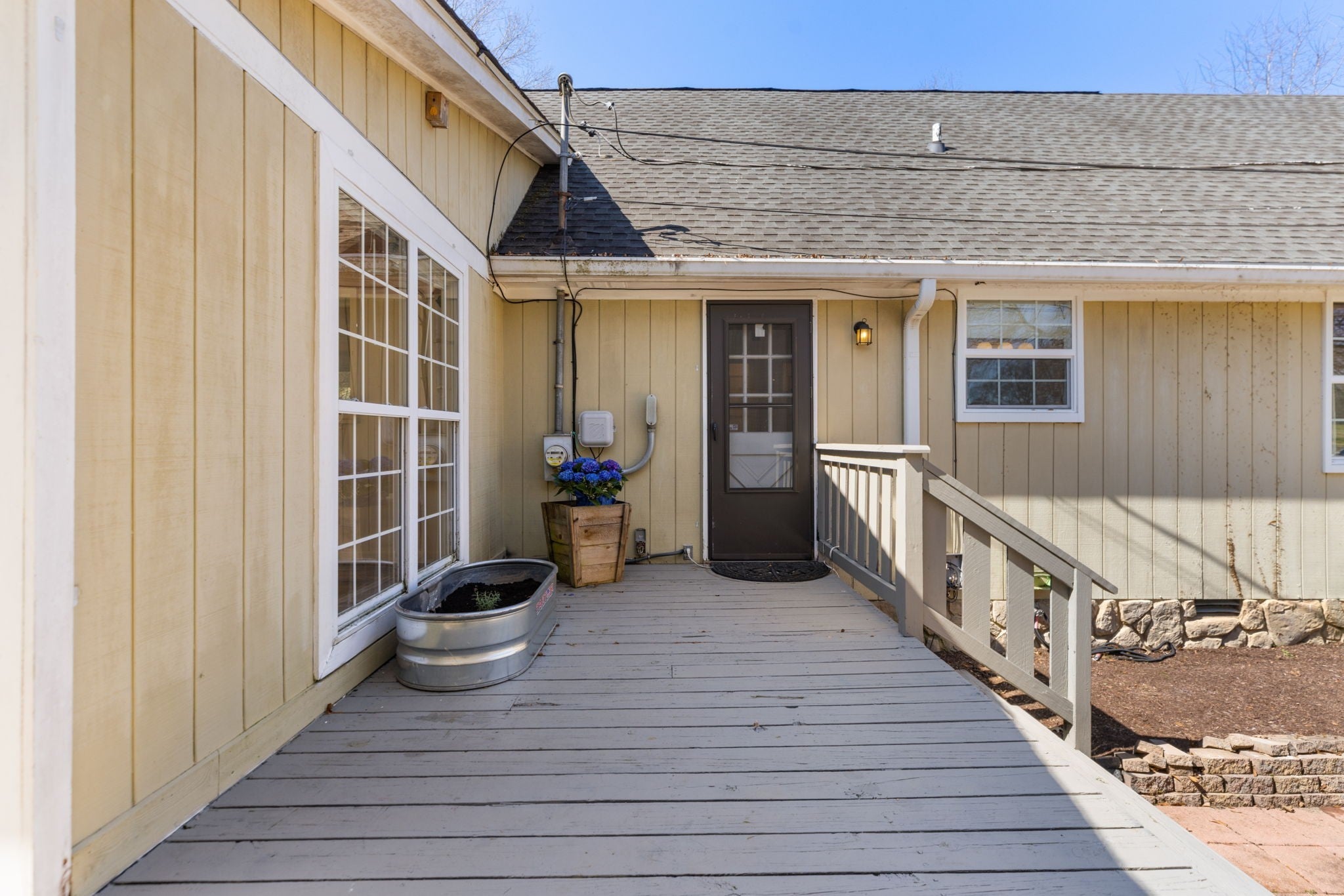 - Stone, Wood Siding