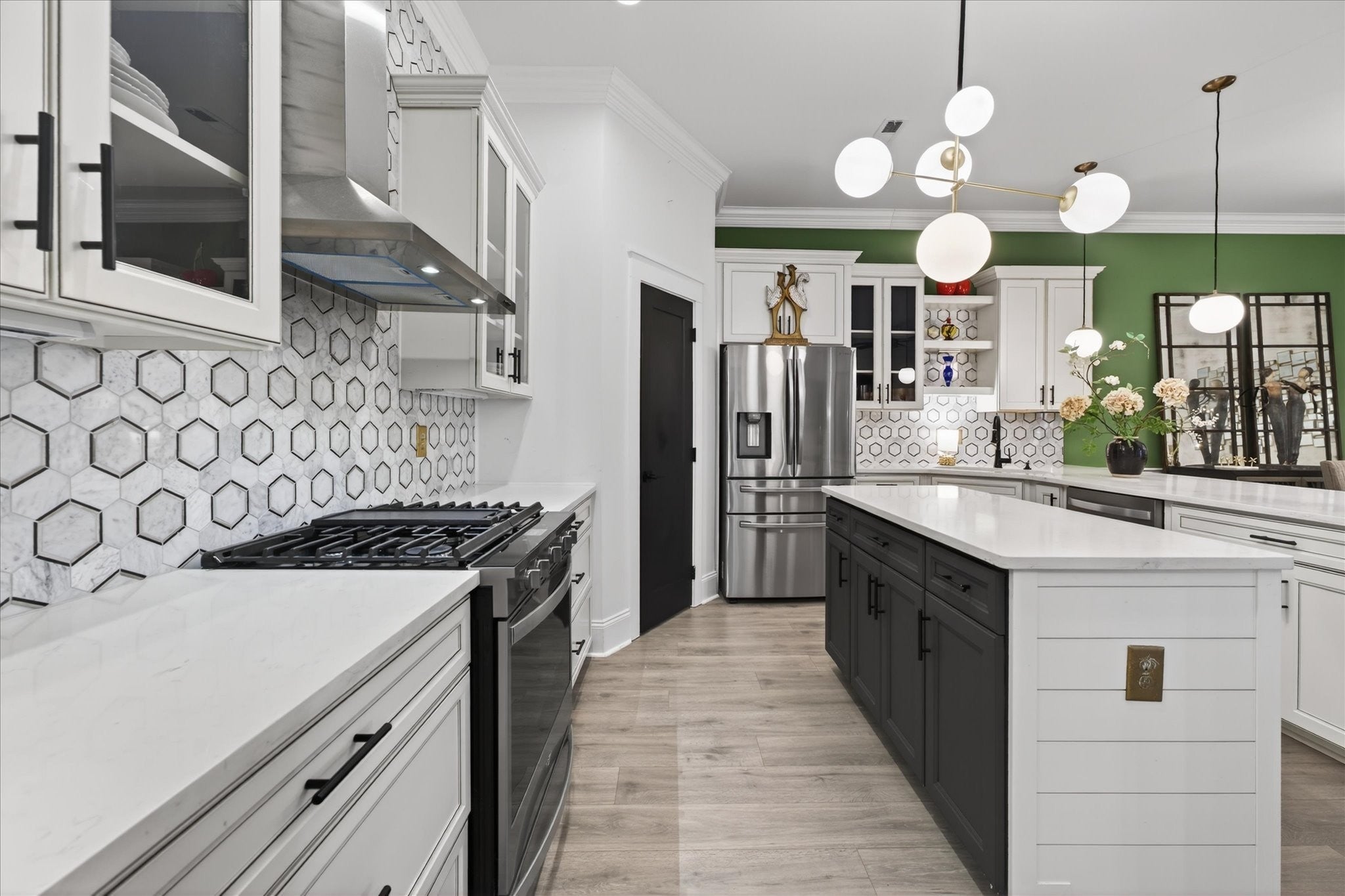 - Gas Oven, Gas Range, Dishwasher, Disposal, Microwave, Refrigerator, Stainless Steel Appliance(s)
