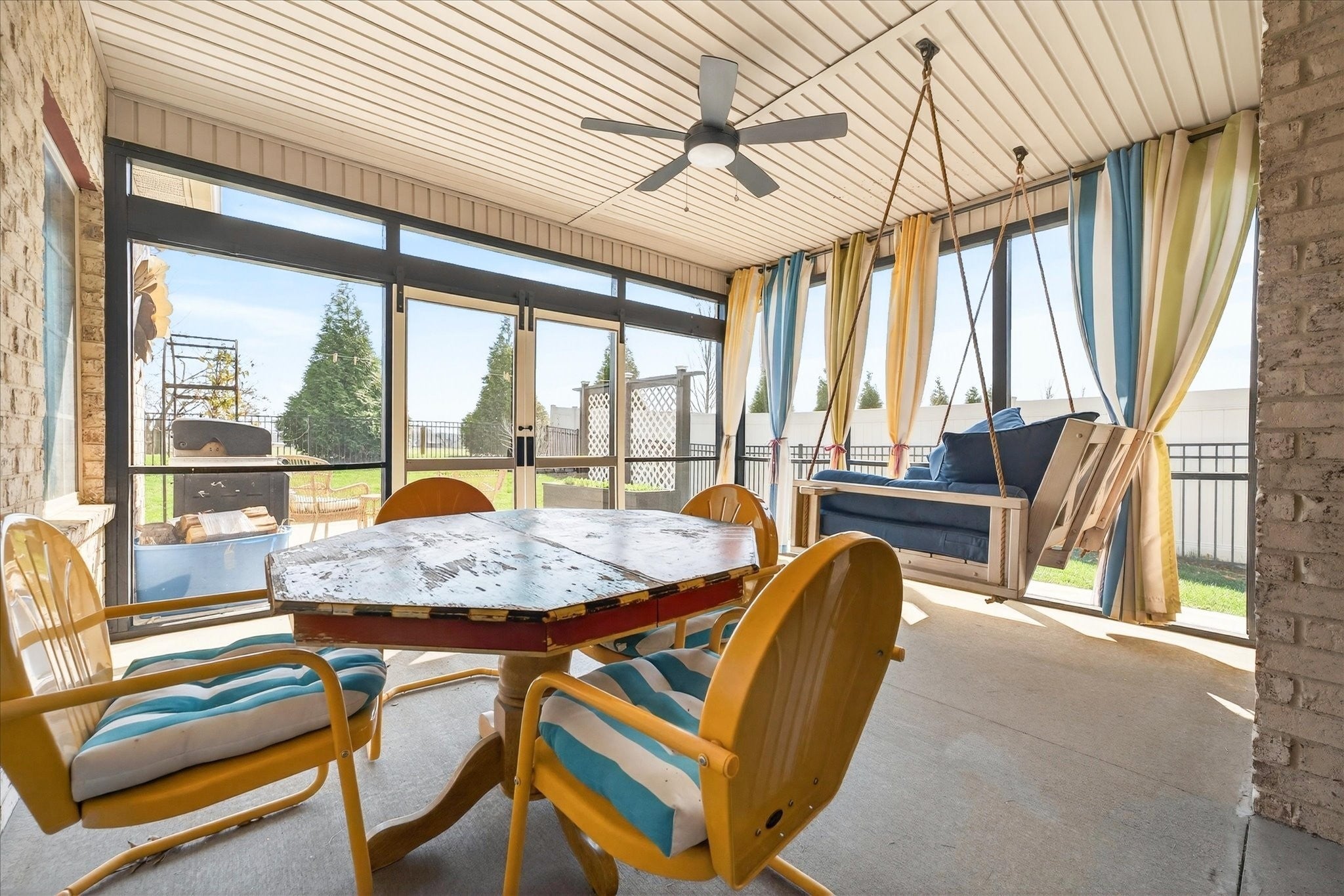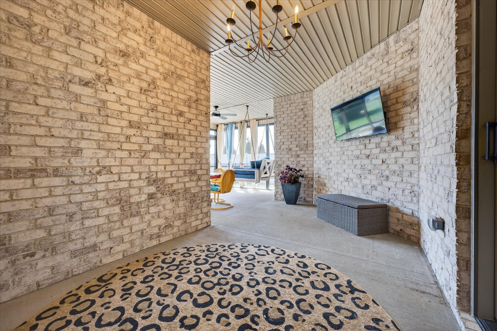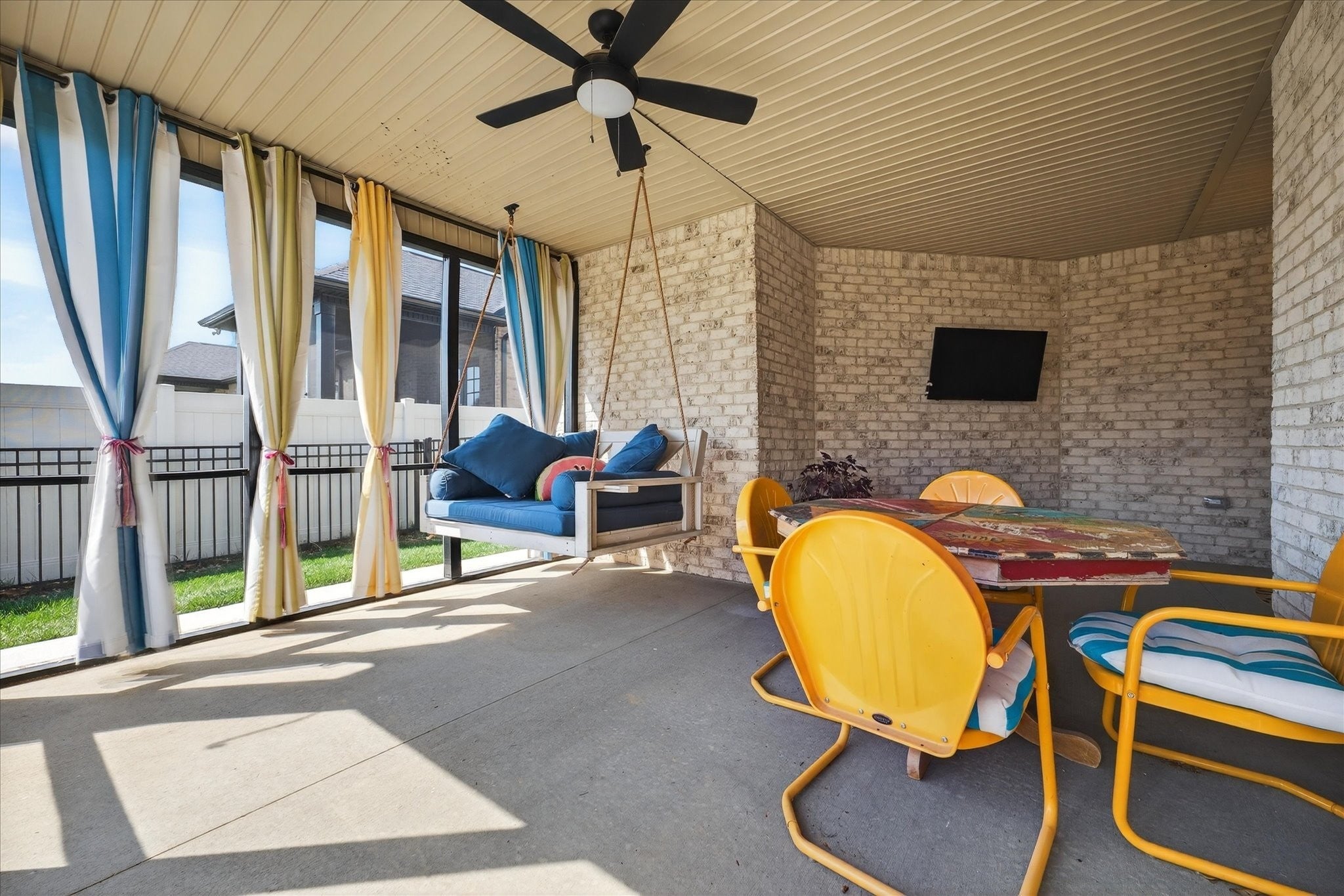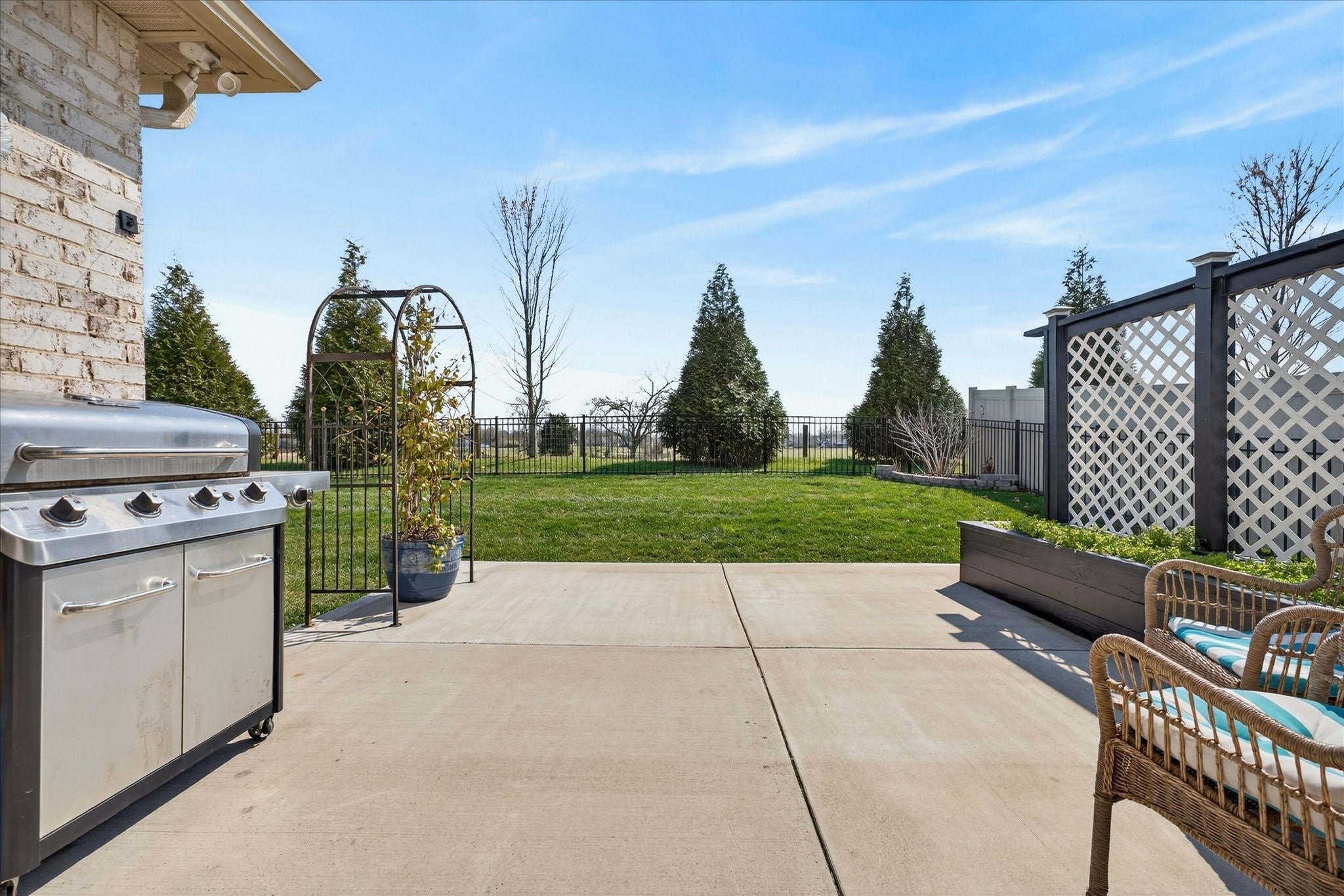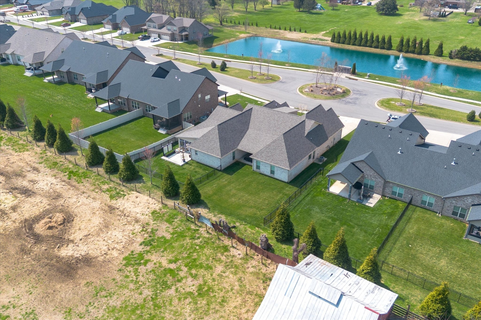 Pure luxury one-level living in one of Sango’s finest gated communities! Nestled in the heart of Sango, this stunning all-brick home with stone accents offers the perfect blend of elegance, comfort, and low-maintenance living. Enjoy peaceful mornings and relaxing evenings strolling along scenic ponds and fountains, or unwind on your screened-in porch or open patio overlooking farmland views. Step inside to an inviting foyer that opens to a thoughtfully designed open-concept floor plan, complete with extensive moldings, a cozy fireplace with custom built-ins, and no carpet throughout. Ideal for entertaining, the spacious living area flows seamlessly into a true cook’s dream kitchen featuring quartz countertops, bar seating, a separate island, stainless steel appliances, a beautiful tile backsplash, and a generous walk-in pantry. The split-bedroom layout provides privacy and flexibility, with the luxurious primary suite tucked away at the rear of the home. Highlights include a coffered ceiling and a spa-like ensuite boasting a double vanity, oversized tiled shower, soaking tub, private toilet room, and a custom walk-in closet with built-ins. Two additional bedrooms and a full bath are situated in their own wing—perfect for guests or a home office. Outside, the fully fenced backyard with beautiful black aluminum fencing offers both security and unobstructed views of the surrounding farmland—creating a serene retreat right at home. This exceptional property truly has it all—style, comfort, and an unbeatable location. Don’t miss your opportunity to make it yours! (Chandelier in Primary Bedroom does NOT convey with home. Seller will give Buyer a $300 allowance for new fixture)