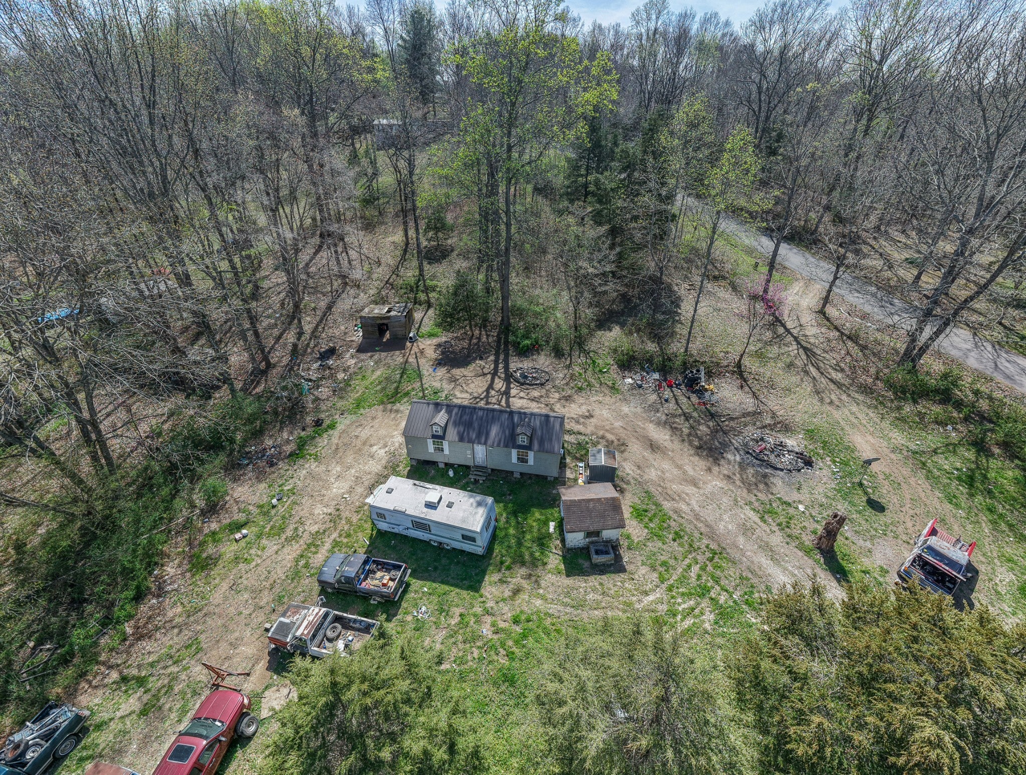 1 bedroom, 1 bath home with two loft-style sleeping areas that can be used for additional sleeping space or storage. Located in Charlotte, TN with a quiet, rural setting. Within walking distance to the Cumberland River and close to ATV trails for outdoor use. Currently tenant-occupied on a month-to-month lease. Rental income is $700 per month, with potential for higher rents based on prior listing history up to $1,200 per month. Property is being sold AS IS. Great opportunity for someone looking for a project, rental, or weekend place.