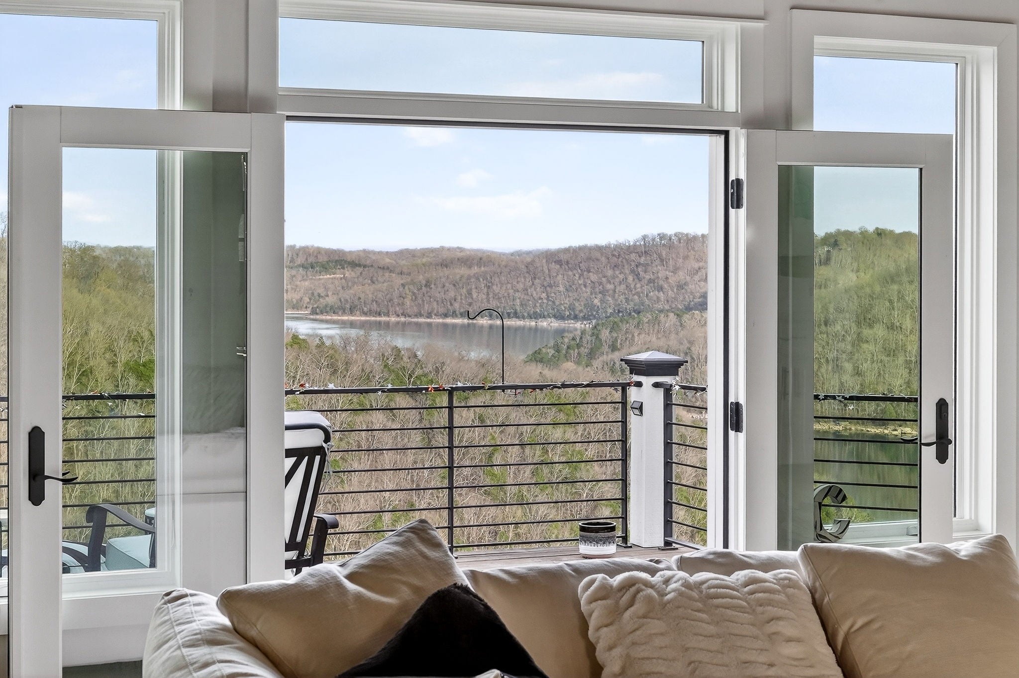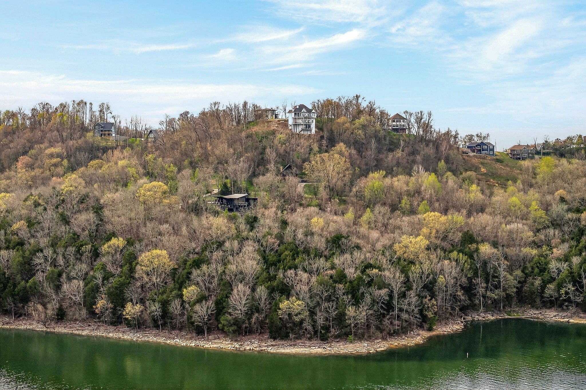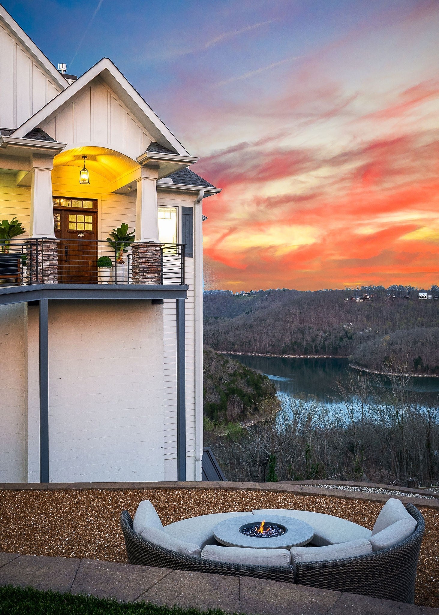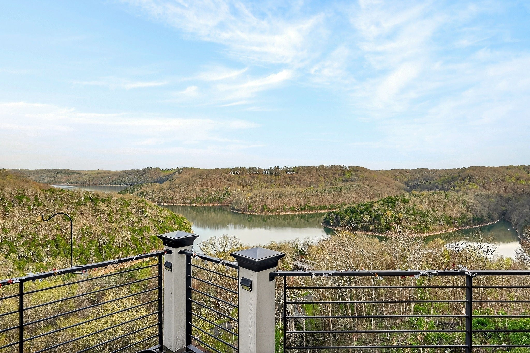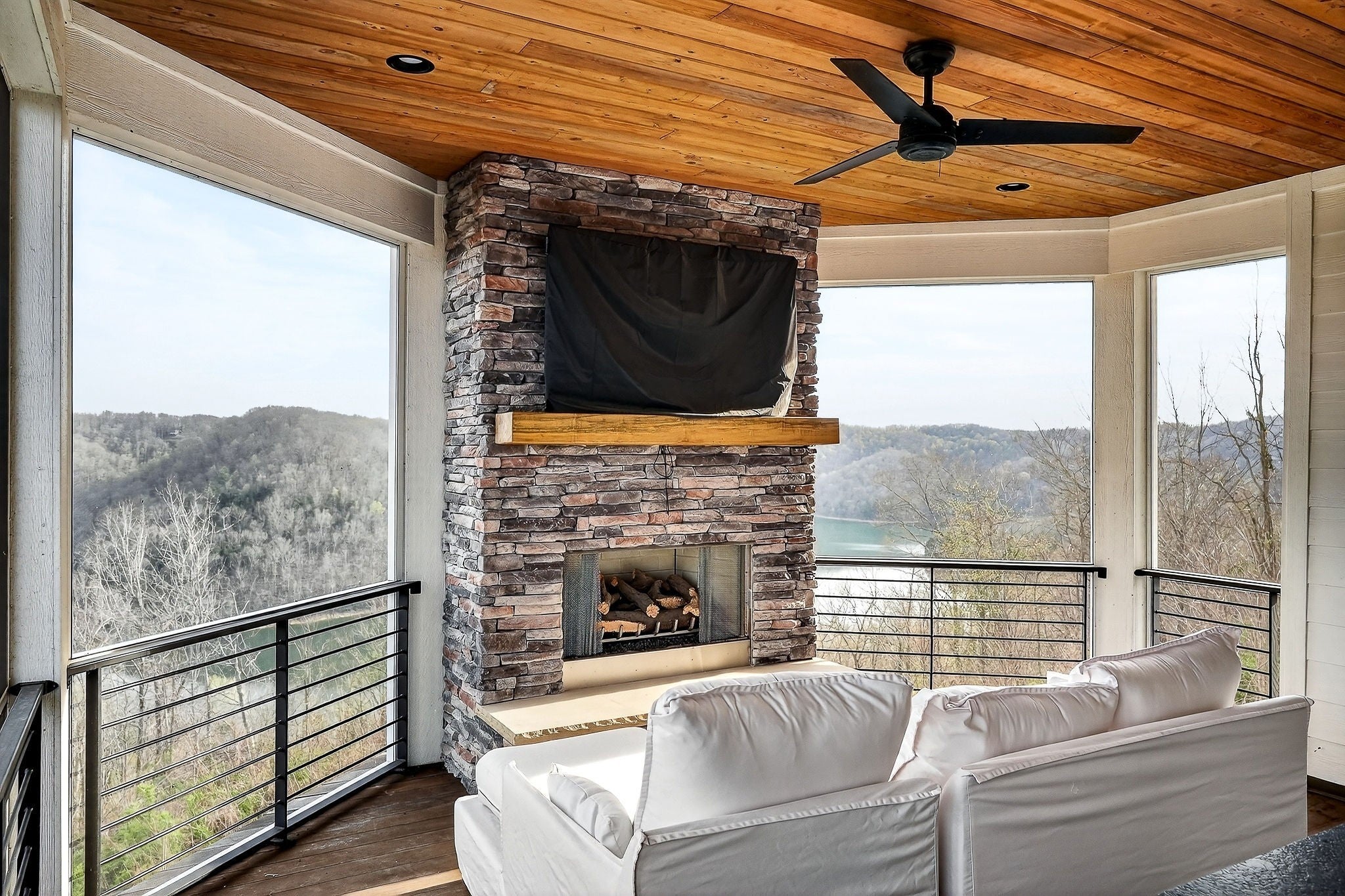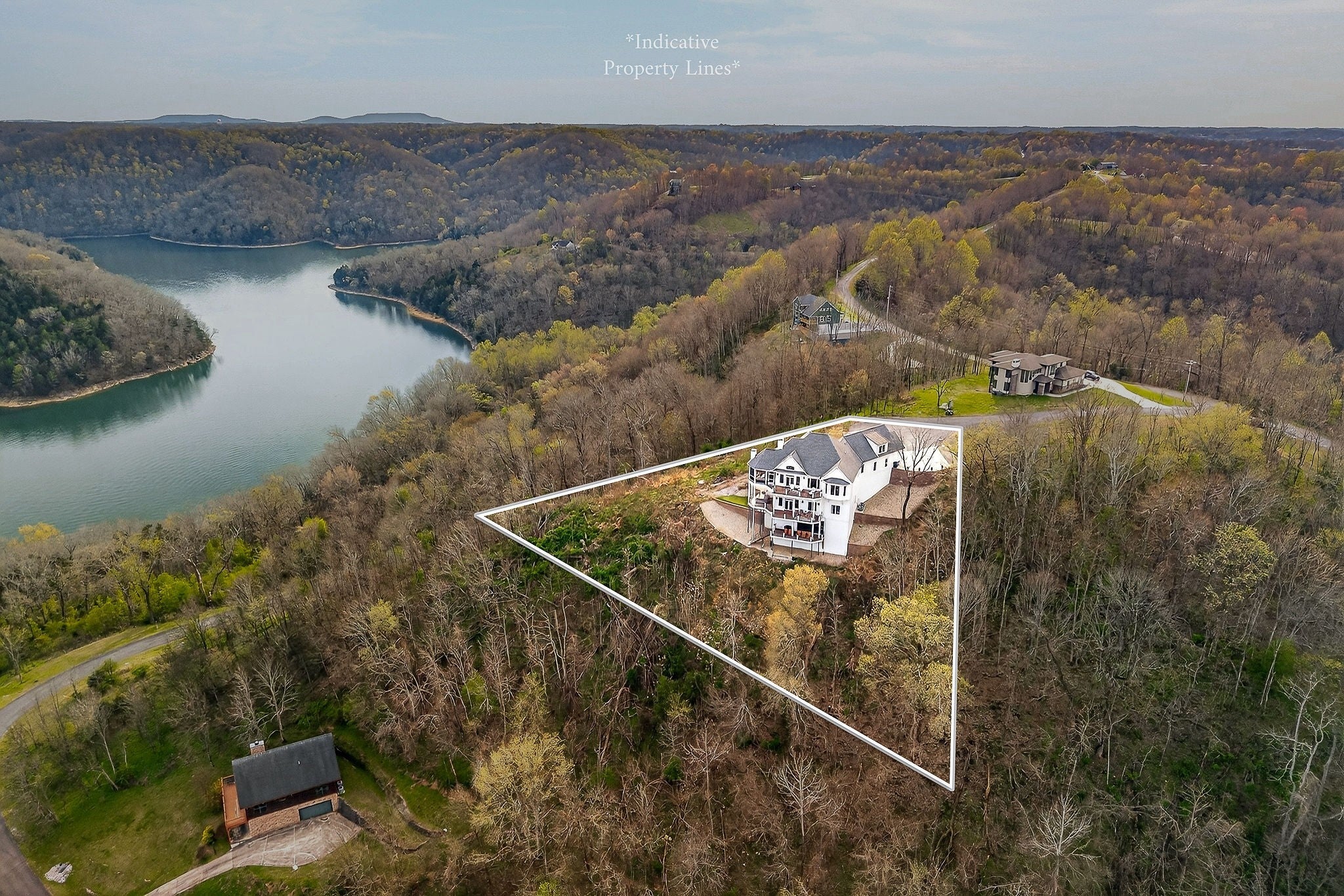 Welcome to a one-of-a-kind lake retreat with breathtaking views of Center Hill Lake from every room. This majestic four-story 5445 sq ft home features an open floor plan designed to maximize natural light and panoramic scenery. Enjoy a maintenance-free yard with artificial turf and a putting green, three expansive decks, and soaring high ceilings throughout. The designer kitchen showcases custom cabinetry and high-end appliances, flowing into a dramatic main living area with 22-foot ceilings, tinted windows, and a stunning stone gas fireplace. The main-level primary suite offers dual closets, a spa-like bath with separate tub and shower, double vanities, and heated floors. Outdoor living is unmatched, with a screened-in main-level deck featuring a gas fireplace, full outdoor kitchen & TV, perfect for entertaining year-round. The lower level includes a spacious game room, wet bar with mini fridge, three bedrooms, and two full baths, along with access to a relaxing top of the line hot tub. The bottom level is designed for ultimate recreation, featuring a large rec room, half bath, and an impressive 16-foot-wide automatic glass door that opens to the outdoors. Constructed with durability and efficiency in mind, the home features a fully engineered stem wall foundation, Zip System sheathing on all walls and roof, all three levels of decking are built with steel framing and finished in Ipe wood, with a dry deck system on the top level to protect the spaces below. Inside, the home is fully encapsulated with spray foam insulation and enhanced with soundproofing between bedrooms, bathrooms, and floors—ensuring both comfort and privacy. Smart living is seamless with a Sonos sound system, hardwired security and camera system, remote deadbolt locks, water monitoring system, and Wi-Fi coverage on every level with remote management capability. Enjoy endless high pressure hot water with an on-demand system tankless water heater featuring a circulator