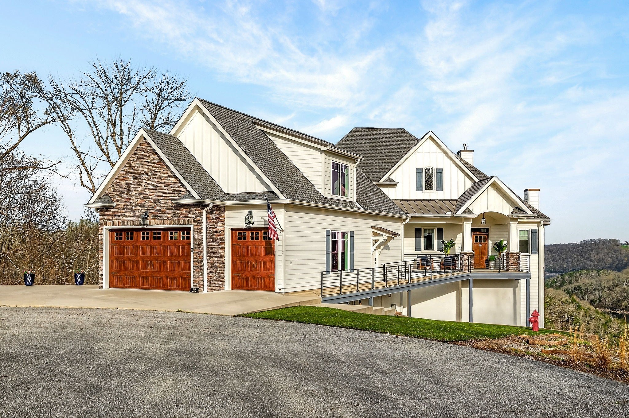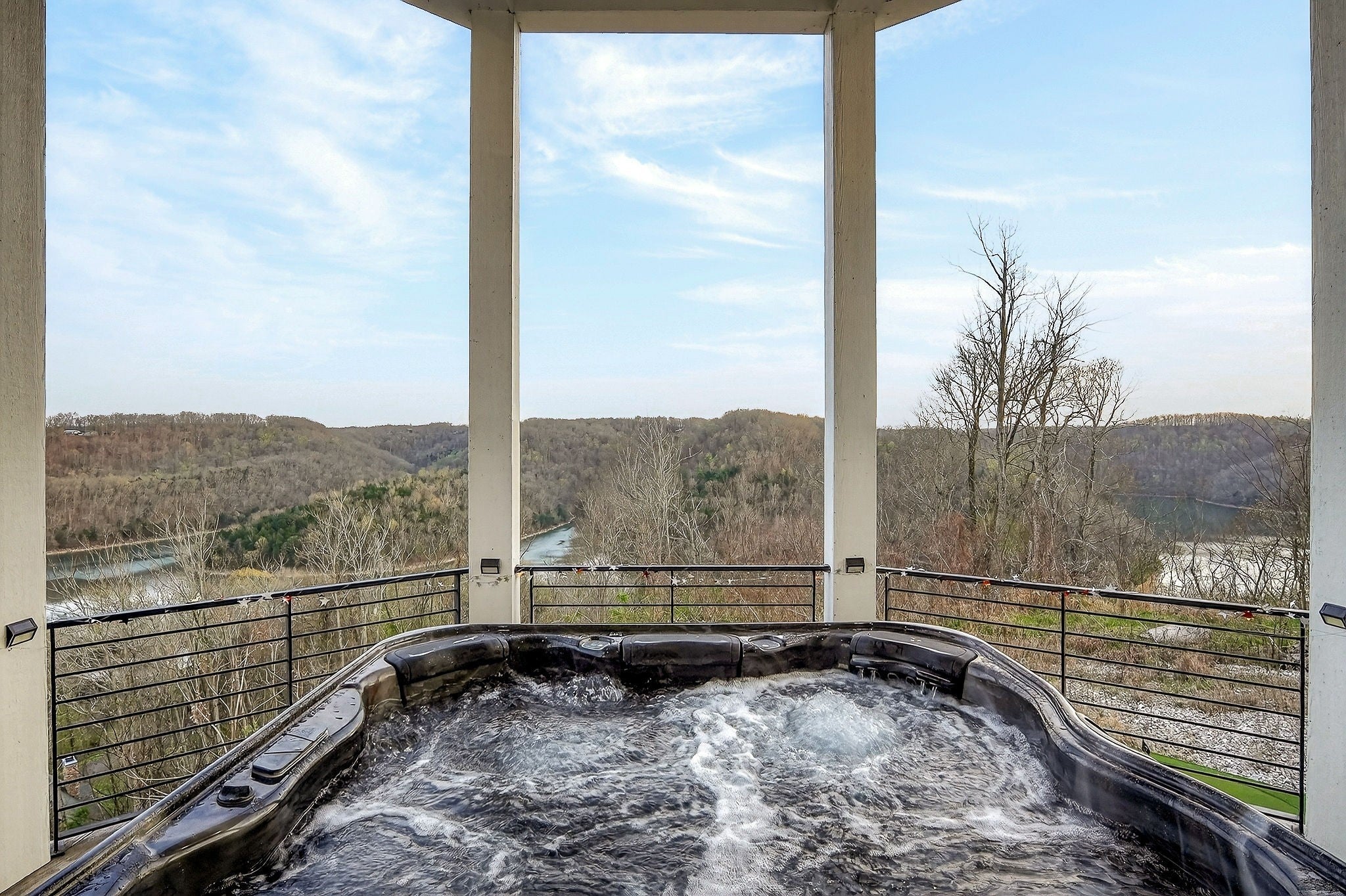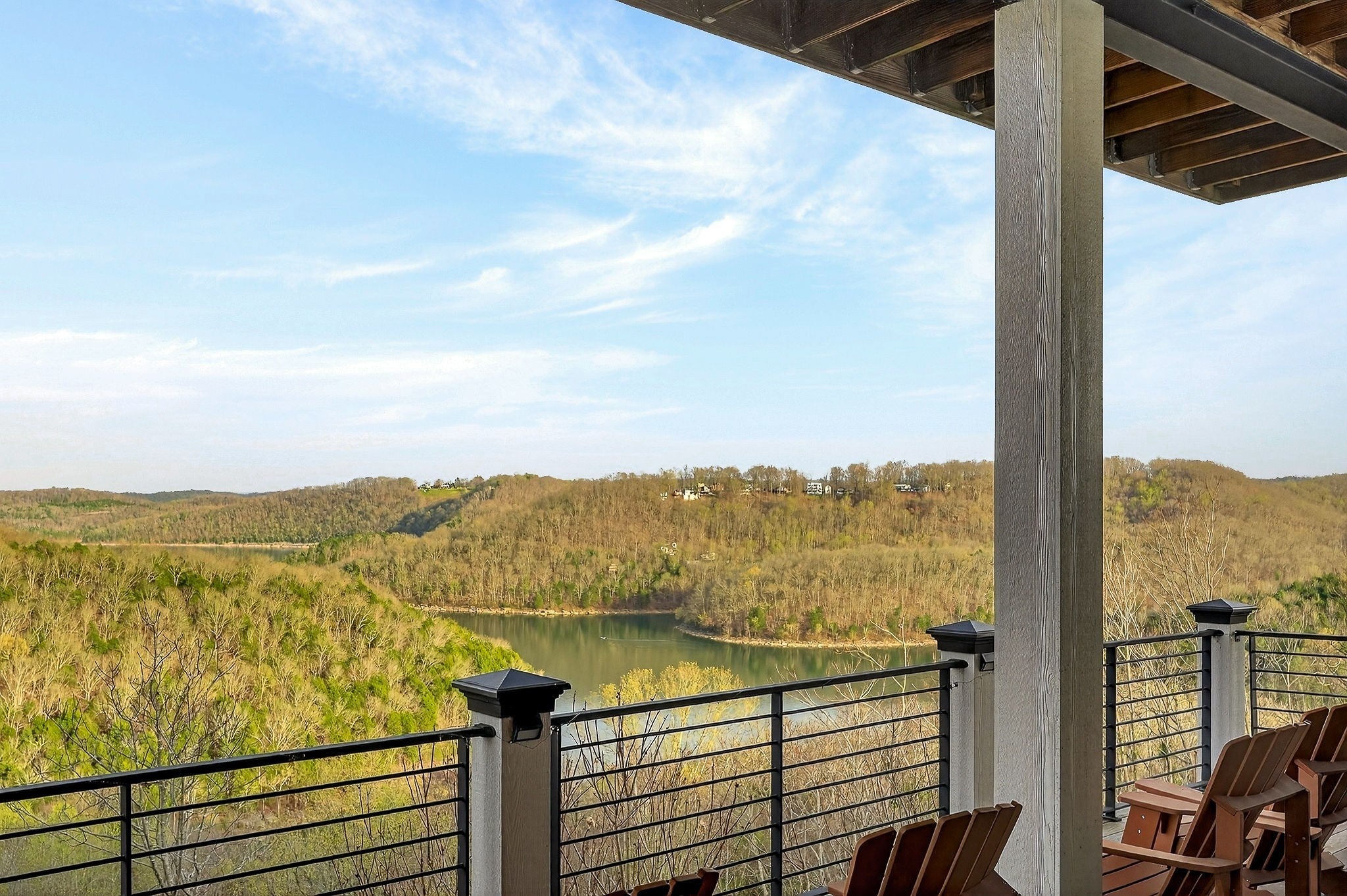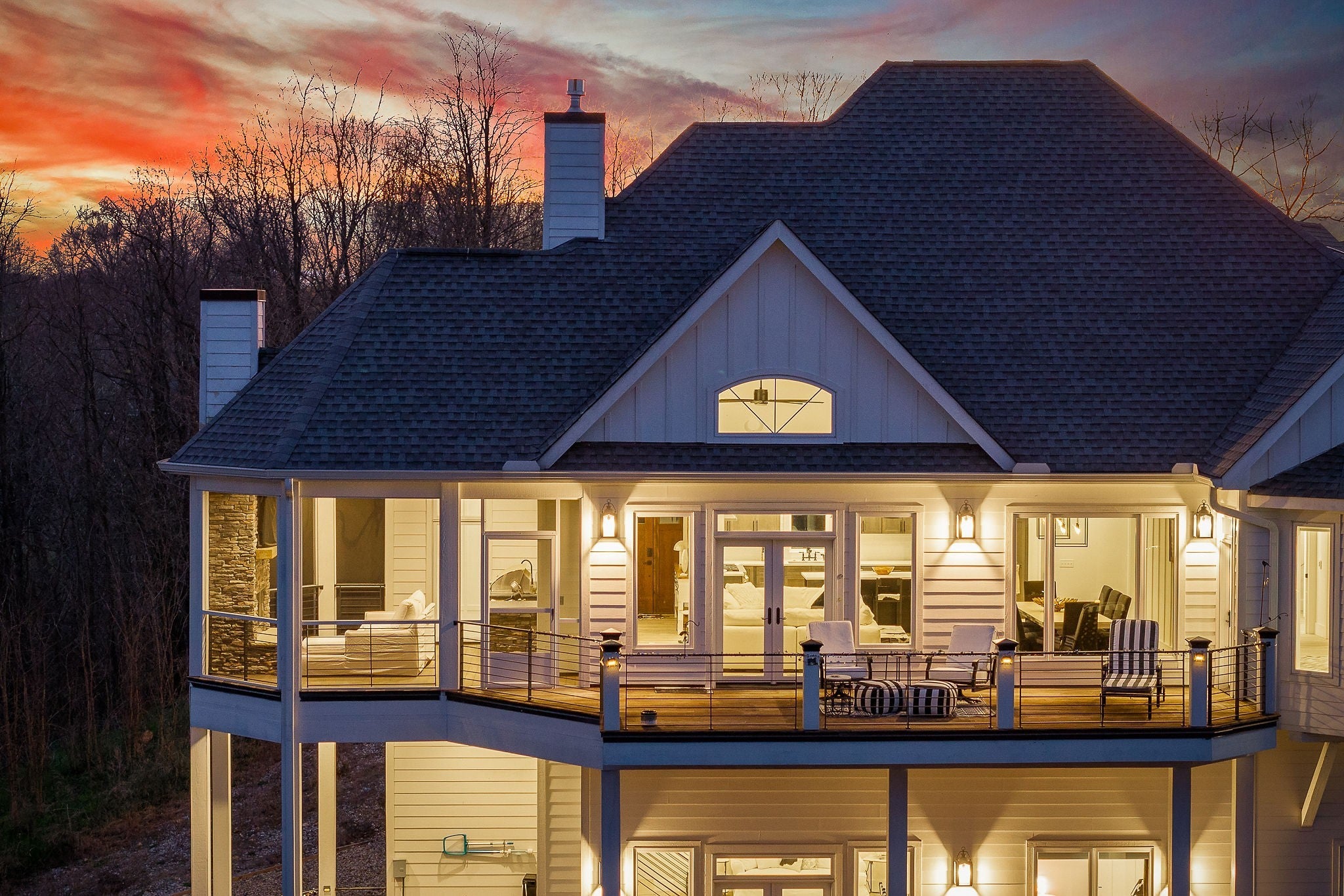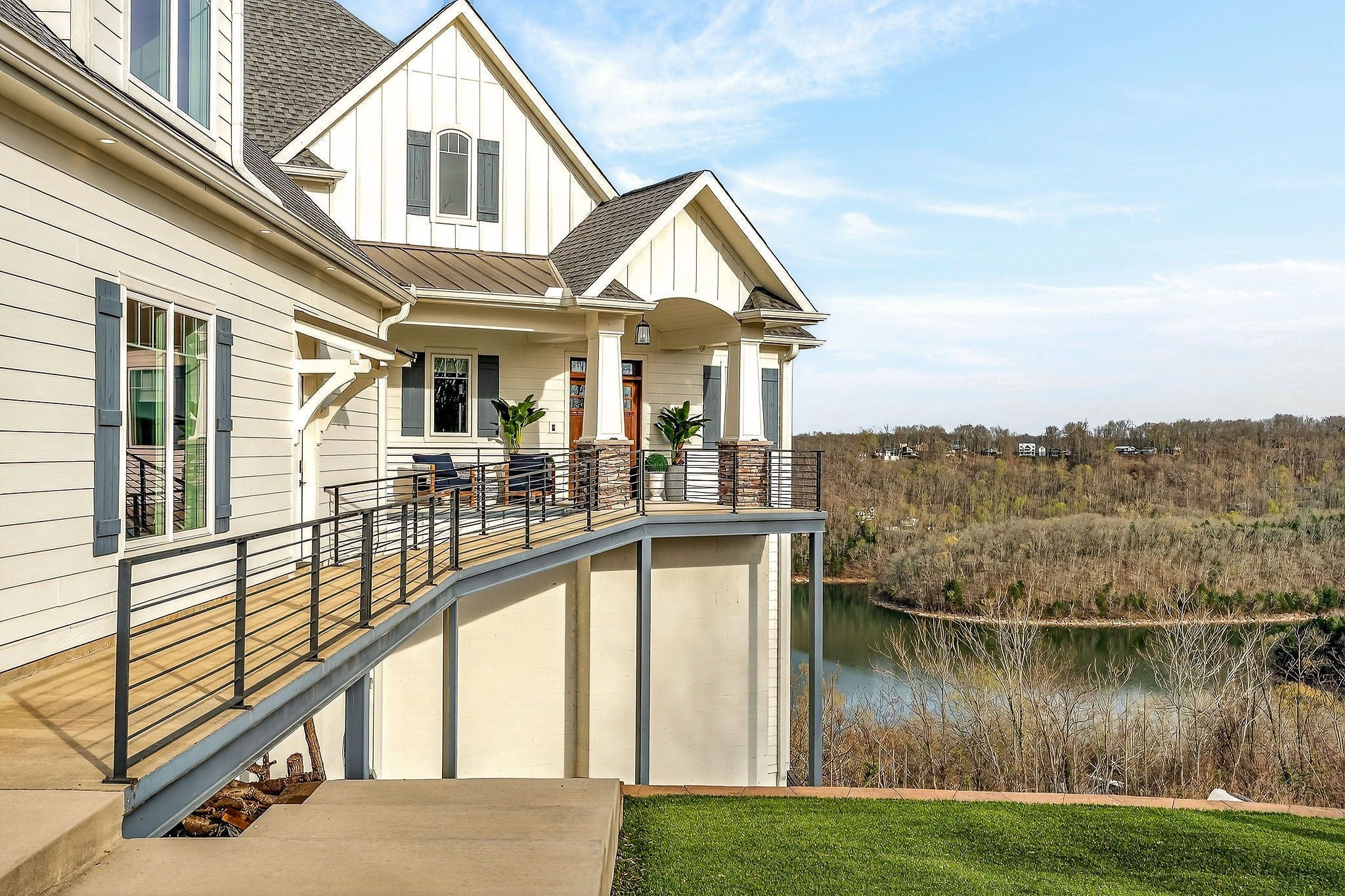 Welcome to a one-of-a-kind lake retreat with breathtaking views of Center Hill Lake from every room. This majestic four-story 5445 sq ft home features an open floor plan designed to maximize natural light and panoramic scenery. Enjoy a maintenance-free yard with artificial turf and a putting green, three expansive decks, and soaring high ceilings throughout. The designer kitchen showcases custom cabinetry and high-end appliances, flowing into a dramatic main living area with 22-foot ceilings, tinted windows, and a stunning stone gas fireplace. The main-level primary suite offers dual closets, a spa-like bath with separate tub and shower, double vanities, and heated floors. Outdoor living is unmatched, with a screened-in main-level deck featuring a gas fireplace, full outdoor kitchen & TV, perfect for entertaining year-round. The lower level includes a spacious game room, wet bar with mini fridge, three bedrooms, and two full baths, along with access to a relaxing top of the line hot tub. The bottom level is designed for ultimate recreation, featuring a large rec room, half bath, and an impressive 16-foot-wide automatic glass door that opens to the outdoors. Constructed with durability and efficiency in mind, the home features a fully engineered stem wall foundation, Zip System sheathing on all walls and roof, all three levels of decking are built with steel framing and finished in Ipe wood, with a dry deck system on the top level to protect the spaces below. Inside, the home is fully encapsulated with spray foam insulation and enhanced with soundproofing between bedrooms, bathrooms, and floors—ensuring both comfort and privacy. Smart living is seamless with a Sonos sound system, hardwired security and camera system, remote deadbolt locks, water monitoring system, and Wi-Fi coverage on every level with remote management capability. Enjoy endless high pressure hot water with an on-demand system tankless water heater featuring a circulator