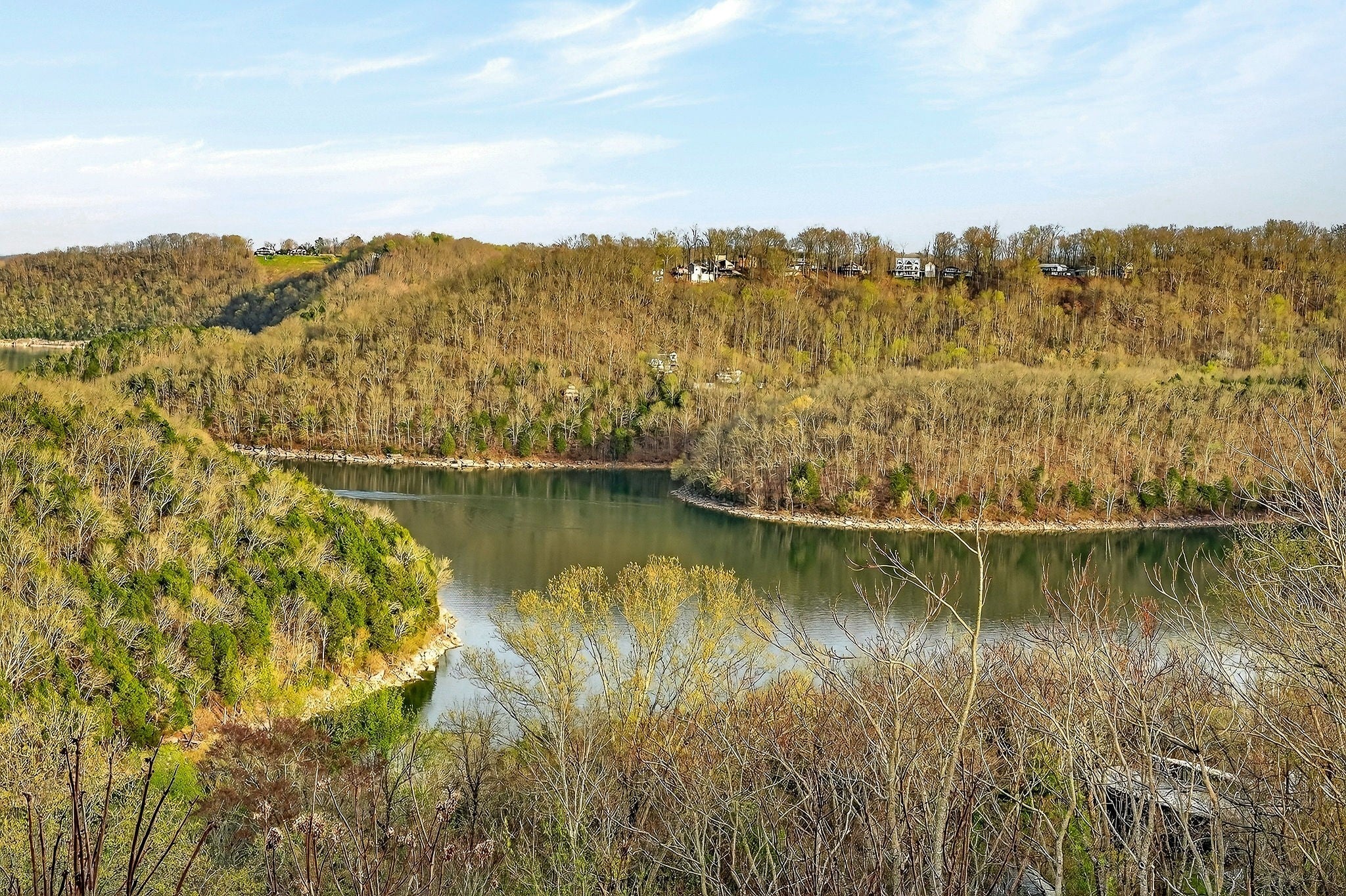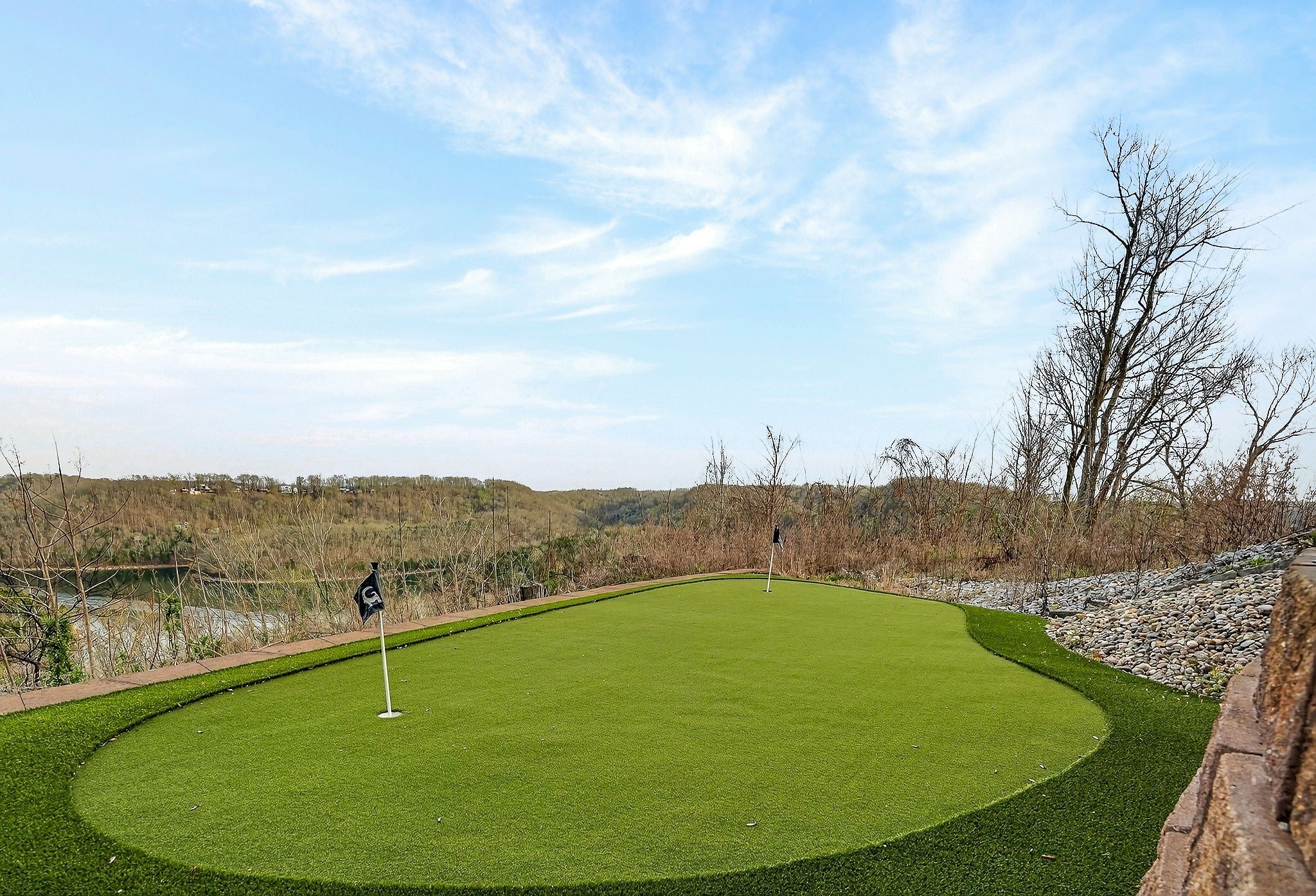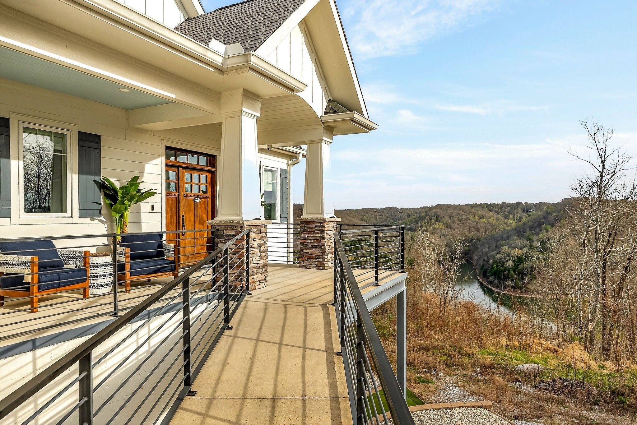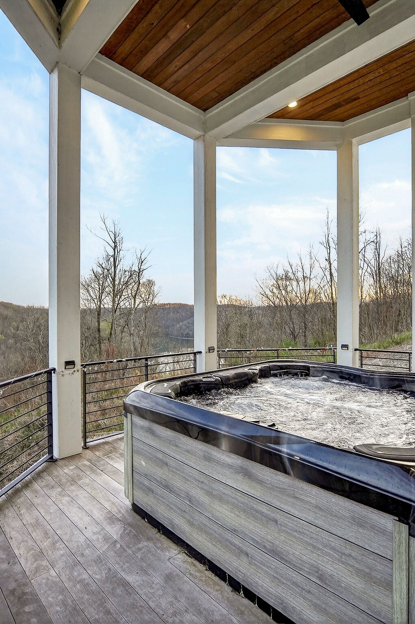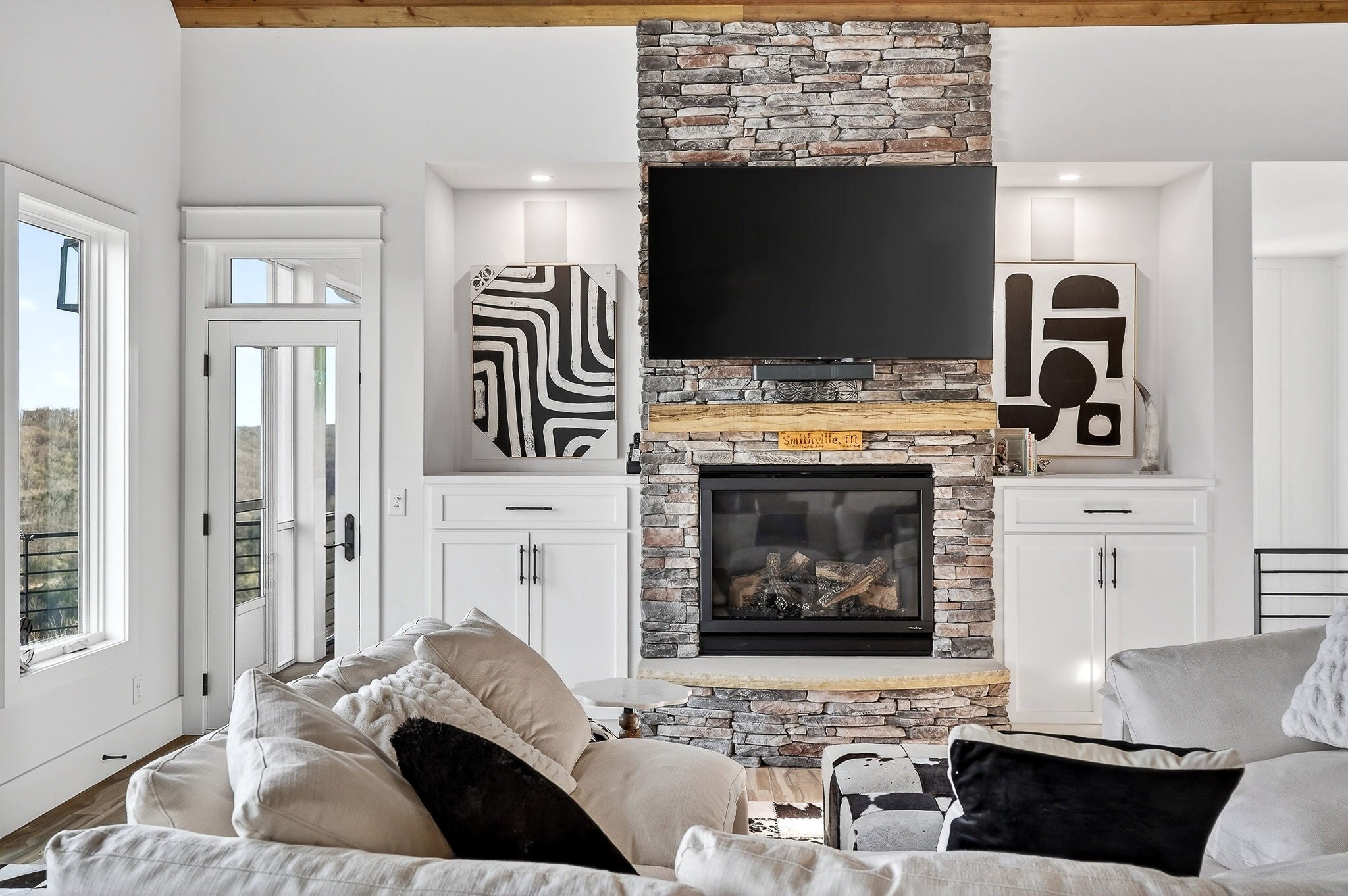 Welcome to a one-of-a-kind lake retreat with breathtaking views of Center Hill Lake from every room. This majestic four-story 5445 sq ft home features an open floor plan designed to maximize natural light and panoramic scenery. Enjoy a maintenance-free yard with artificial turf and a putting green, three expansive decks, and soaring high ceilings throughout. The designer kitchen showcases custom cabinetry and high-end appliances, flowing into a dramatic main living area with 22-foot ceilings, tinted windows, and a stunning stone gas fireplace. The main-level primary suite offers dual closets, a spa-like bath with separate tub and shower, double vanities, and heated floors. Outdoor living is unmatched, with a screened-in main-level deck featuring a gas fireplace, full outdoor kitchen & TV, perfect for entertaining year-round. The lower level includes a spacious game room, wet bar with mini fridge, three bedrooms, and two full baths, along with access to a relaxing top of the line hot tub. The bottom level is designed for ultimate recreation, featuring a large rec room, half bath, and an impressive 16-foot-wide automatic glass door that opens to the outdoors. Constructed with durability and efficiency in mind, the home features a fully engineered stem wall foundation, Zip System sheathing on all walls and roof, all three levels of decking are built with steel framing and finished in Ipe wood, with a dry deck system on the top level to protect the spaces below. Inside, the home is fully encapsulated with spray foam insulation and enhanced with soundproofing between bedrooms, bathrooms, and floors—ensuring both comfort and privacy. Smart living is seamless with a Sonos sound system, hardwired security and camera system, remote deadbolt locks, water monitoring system, and Wi-Fi coverage on every level with remote management capability. Enjoy endless high pressure hot water with an on-demand system tankless water heater featuring a circulator