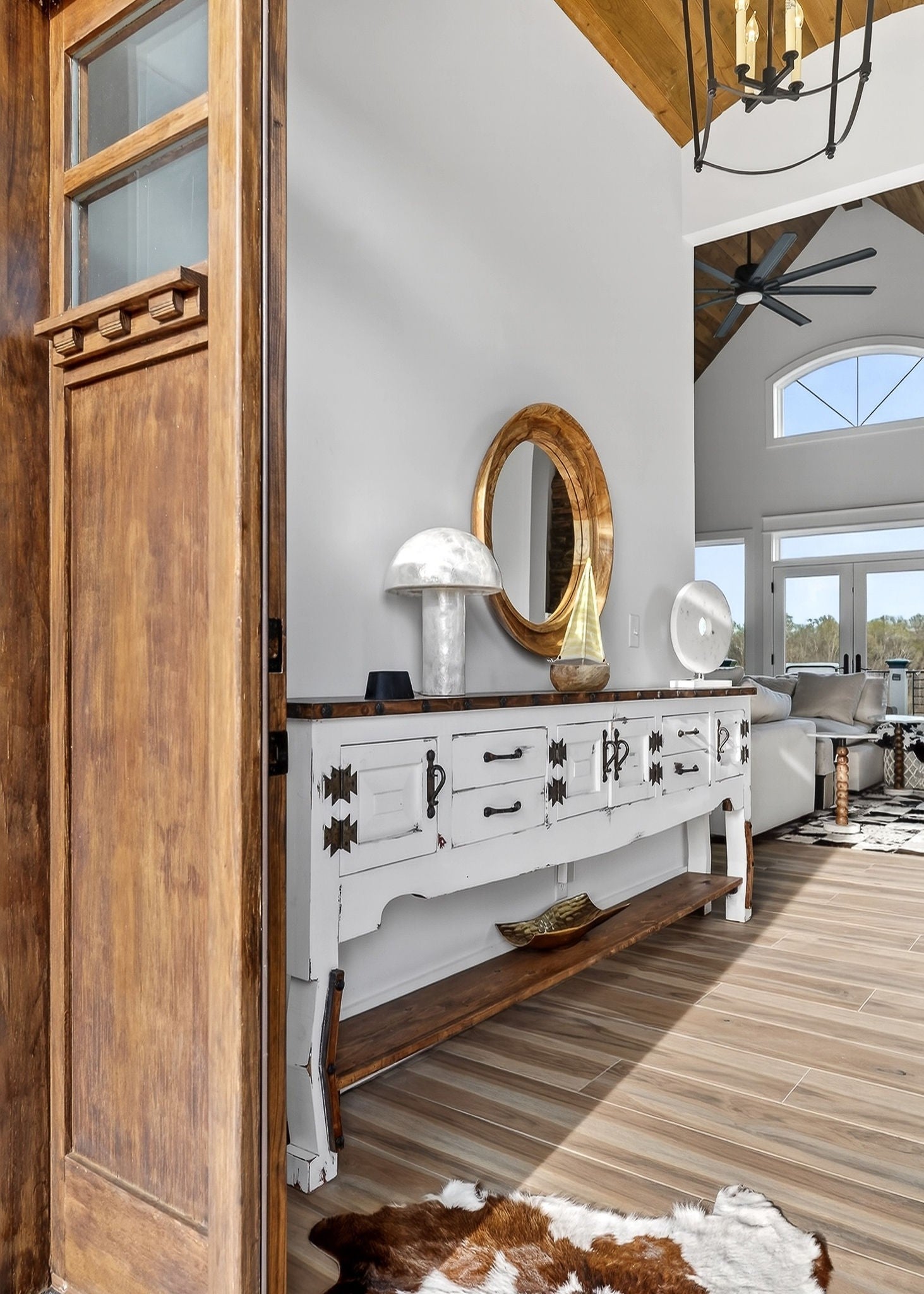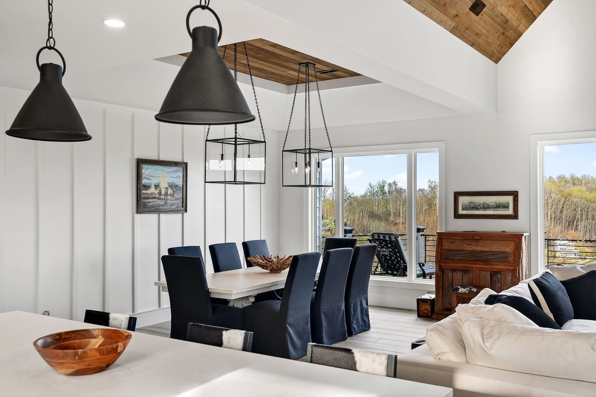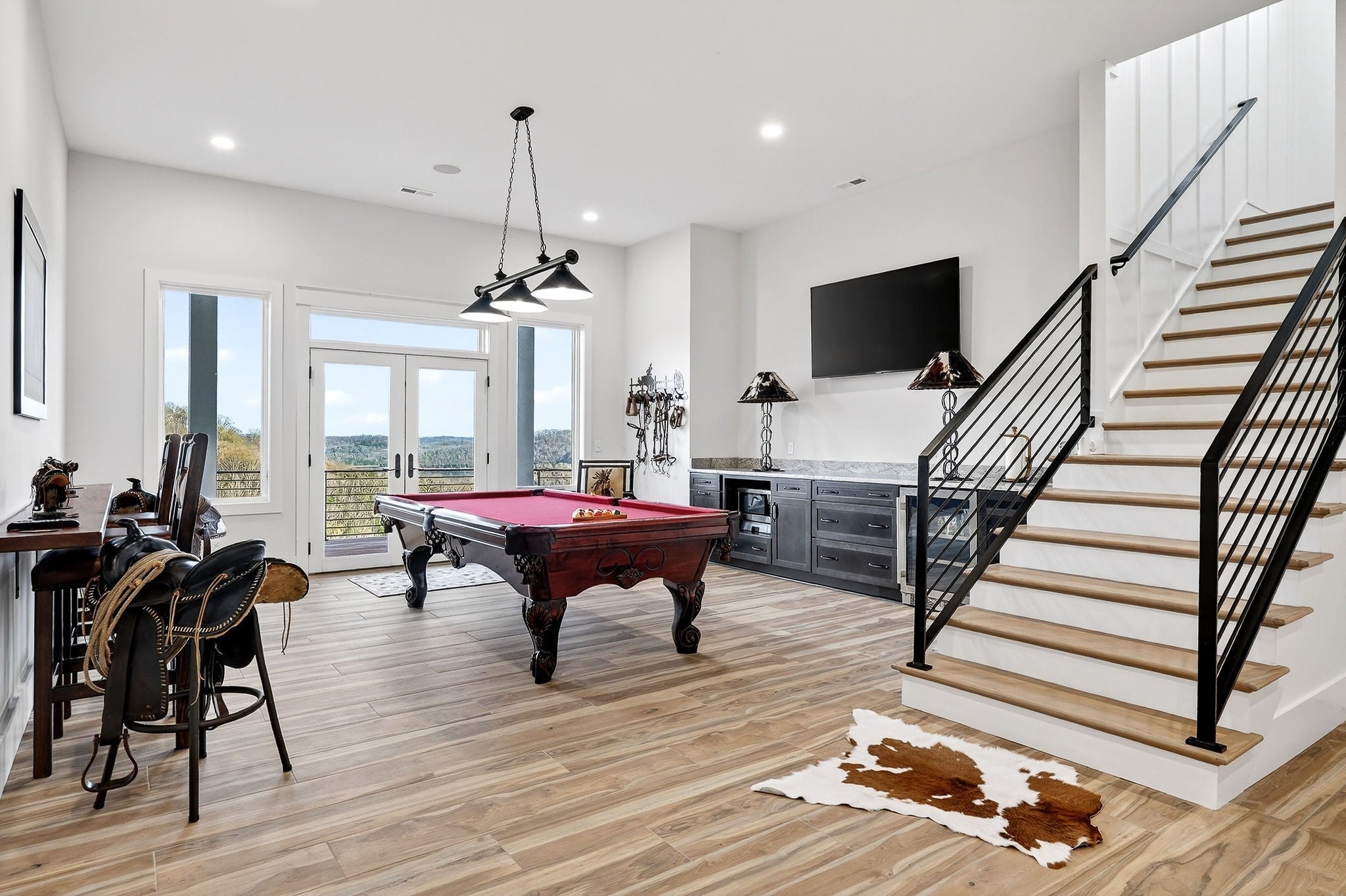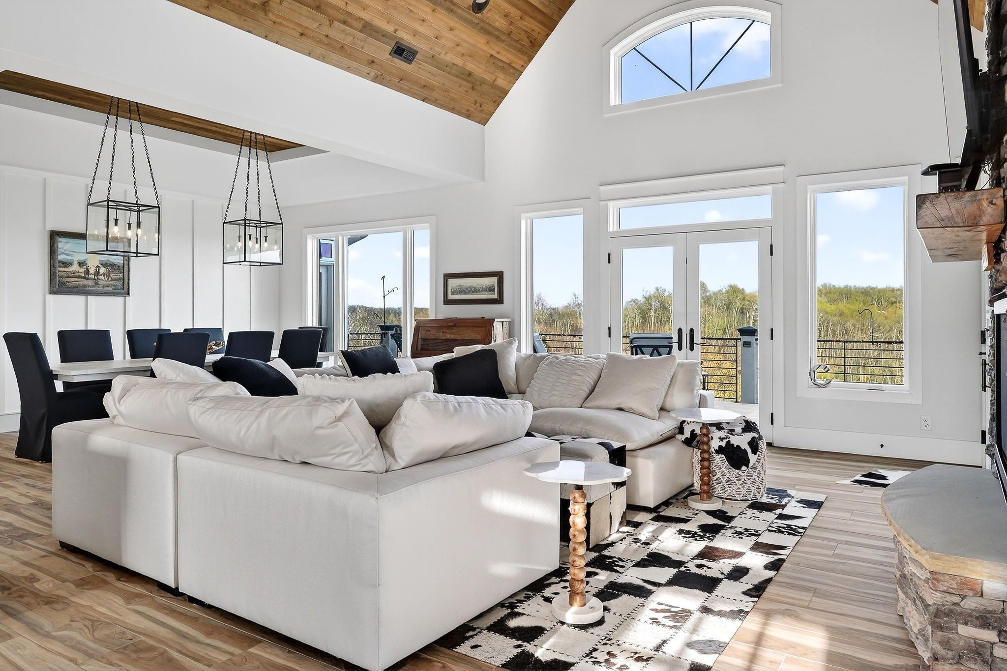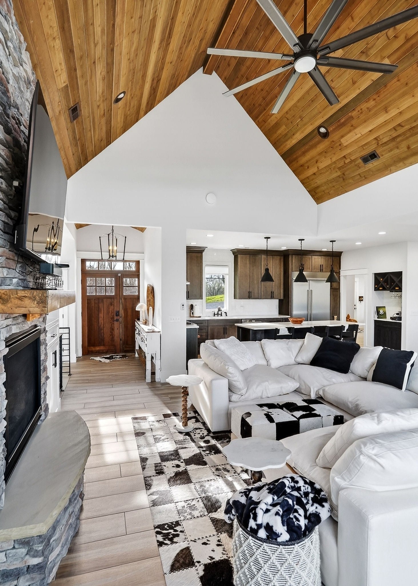 Welcome to a one-of-a-kind lake retreat with breathtaking views of Center Hill Lake from every room. This majestic four-story 5445 sq ft home features an open floor plan designed to maximize natural light and panoramic scenery. Enjoy a maintenance-free yard with artificial turf and a putting green, three expansive decks, and soaring high ceilings throughout. The designer kitchen showcases custom cabinetry and high-end appliances, flowing into a dramatic main living area with 22-foot ceilings, tinted windows, and a stunning stone gas fireplace. The main-level primary suite offers dual closets, a spa-like bath with separate tub and shower, double vanities, and heated floors. Outdoor living is unmatched, with a screened-in main-level deck featuring a gas fireplace, full outdoor kitchen & TV, perfect for entertaining year-round. The lower level includes a spacious game room, wet bar with mini fridge, three bedrooms, and two full baths, along with access to a relaxing top of the line hot tub. The bottom level is designed for ultimate recreation, featuring a large rec room, half bath, and an impressive 16-foot-wide automatic glass door that opens to the outdoors. Constructed with durability and efficiency in mind, the home features a fully engineered stem wall foundation, Zip System sheathing on all walls and roof, all three levels of decking are built with steel framing and finished in Ipe wood, with a dry deck system on the top level to protect the spaces below. Inside, the home is fully encapsulated with spray foam insulation and enhanced with soundproofing between bedrooms, bathrooms, and floors—ensuring both comfort and privacy. Smart living is seamless with a Sonos sound system, hardwired security and camera system, remote deadbolt locks, water monitoring system, and Wi-Fi coverage on every level with remote management capability. Enjoy endless high pressure hot water with an on-demand system tankless water heater featuring a circulator