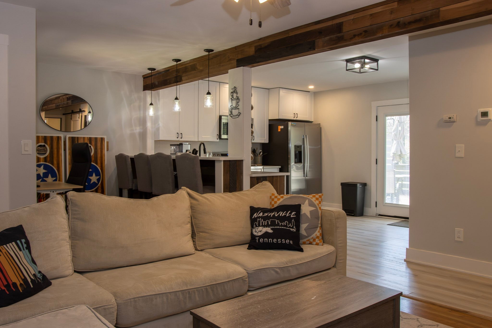 Live where you invest! This Nashville duplex is a hidden gem, currently operating as a successful owner-occupied Airbnb — and it's fully set up for the next owner to do the same from day one. Side A is designed for the owner's comfortable residence, while Side B is turnkey Airbnb-ready, complete with smart locks, a dedicated cleaning closet, and well-appointed bathrooms built with guests in mind. Both sides feature quality finishes throughout. Since 2023, the property has been updated with all new appliances, countertops, cabinets, flooring, bathroom tile, tubs, vanities, and a new patio door. Outside, enjoy fresh landscaping and a fire pit area — peaceful surroundings close to nature and wildlife, yet still close to the action in the city. The location provides quick access to Briley Parkway, Murfreesboro Pike, and the interstate systems. It is less than 10 minutes from Nashville International Airport — with no plane noise. Whether you're looking to house-hack or generate long term returns, this property is dialed in and ready to deliver. The owner/realtor is listing the property.