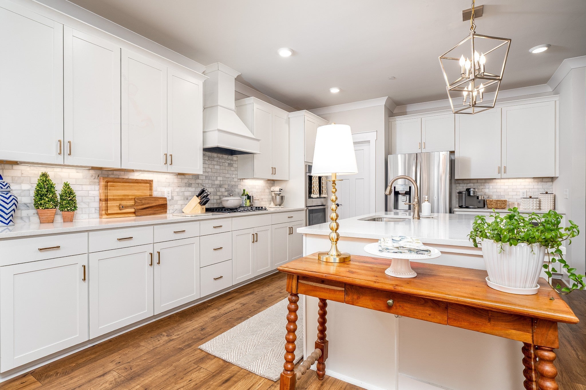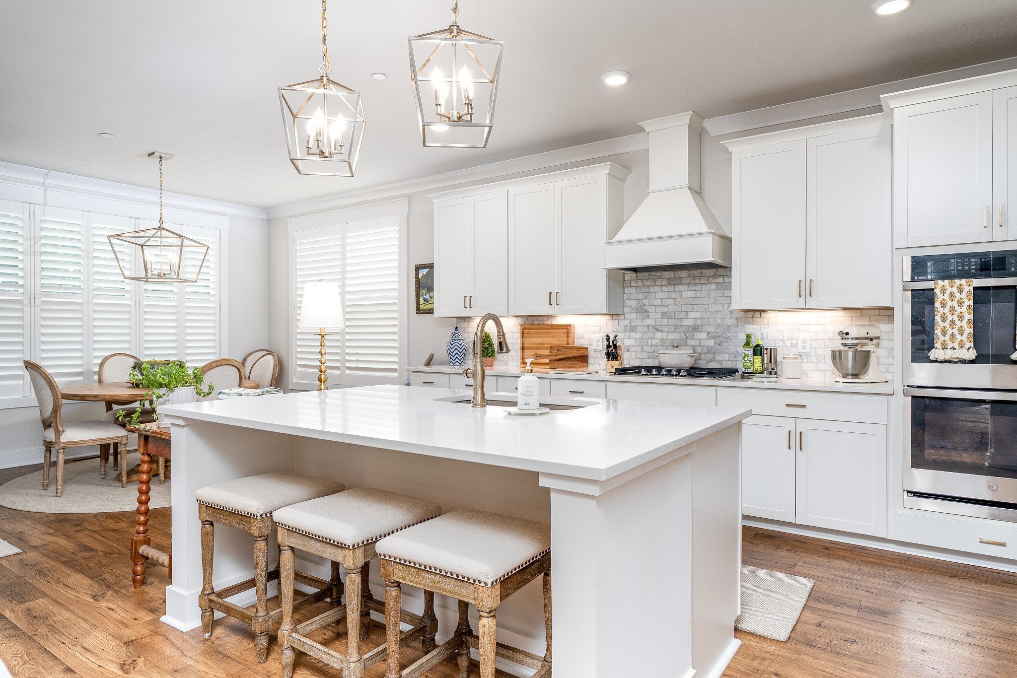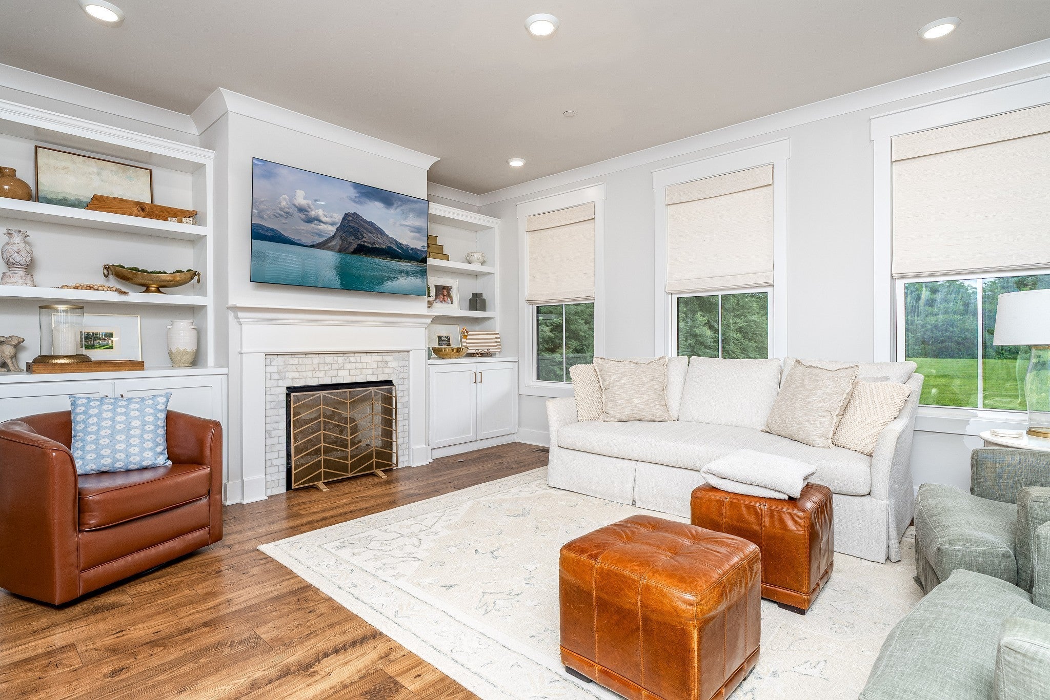 Beautiful, elegant home and only 4 years old! Make your entrance into the grand 2 story foyer which leads to the oversized and open living space of the Family Room, Kitchen and Dining area combo w/ premium, easy care LVP flooring and boasting custom shutters and blinds. The Kitchen features an elevated experience with Quartz counter tops, tiled backsplash, walk in pantry, all SS appliances, including double oven and an oversized sit down island. The family room offers a gas fireplace with auto start and built in custom cabinets flanking each side. Eating at the Kitchen table you are surrounded with an abundant of windows for natural light and views of the beautiful, level, tree lined back yard. Located on the main level is the Primary Bedroom suite with a spacious walk in closet, soaking tub, double Quartz vanity, large tiled and separate shower with glass surround. Upstairs you will find 4 more bedrooms AND a spacious Bonus Room, Hobby Room, or Work office. One bedroom upstairs offers a full bath suite. The Laundry Room and drop zone are located conveniently right off the kitchen and features cabinets for more storage. The covered back porch and concrete patio bring the living outdoors. This house is designed for family living! Make it your HOME SWEET HOME ! See VIDEO: under "documents and links" at bottom of page!
