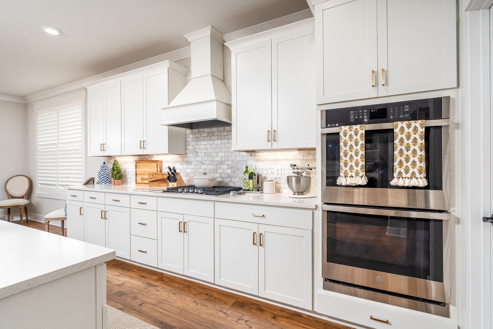 - Built-In Electric Oven, Built-In Gas Range, Dishwasher, Disposal, Ice Maker, Microwave, Refrigerator, Stainless Steel Appliance(s)