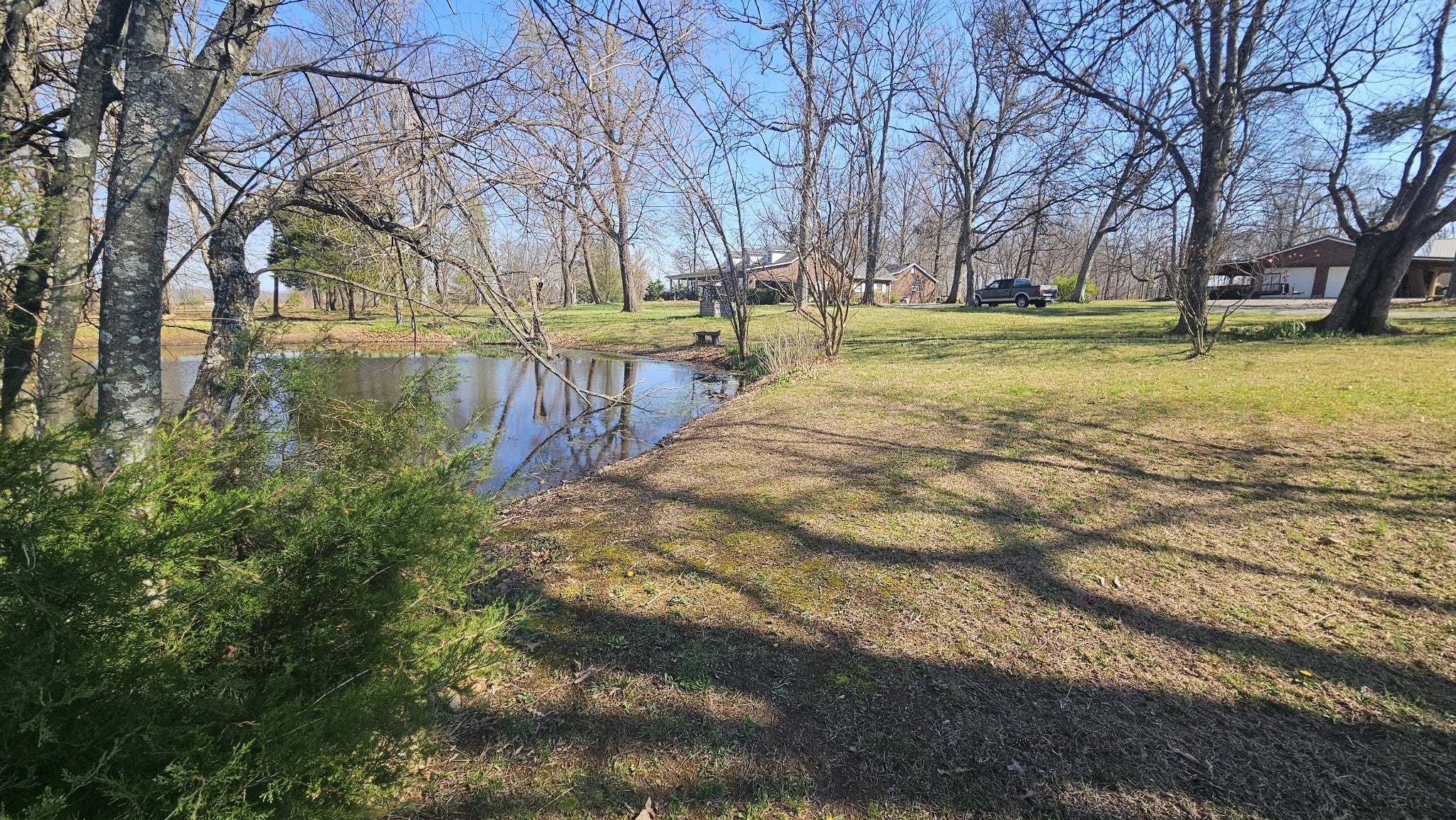 Executive Home with In-Law/Guest House Quarters. Premium construction throughout. 5.3 Acres all clear in a park like setting with pond. Gourmet kitchen, 9 foot ceilings, plantation shutters throughout. Amazing wrap around porches with beautiful private views. Main house is 1788 square feet with master suite and incredible closets. Whirlpool tub, separate shower. Top quality property-wide professional internet and security systems. Guest house/In-Law Quarters is 595 square feet with full kitchen and bath, and a fireplace that is either wood burning or gas log. 2 car detached garage/shop building. Power to all outbuildings is underground. Plus an amazing 40 x 30 new shop building with concrete floors. Plenty of outdoor covered equipment storage areas around the 2 buildings, plus a lean-to at the rear of the property for tractors, boats and such. Plus two wells on property. One is a drilled well with spicket for yardwork, etc. The other is a hand dug 35 foot well with no pump but water near the top all the time. Its the perfect blend of executive living, guest or in-law accommodations and shop/outdoor enthusiasts.