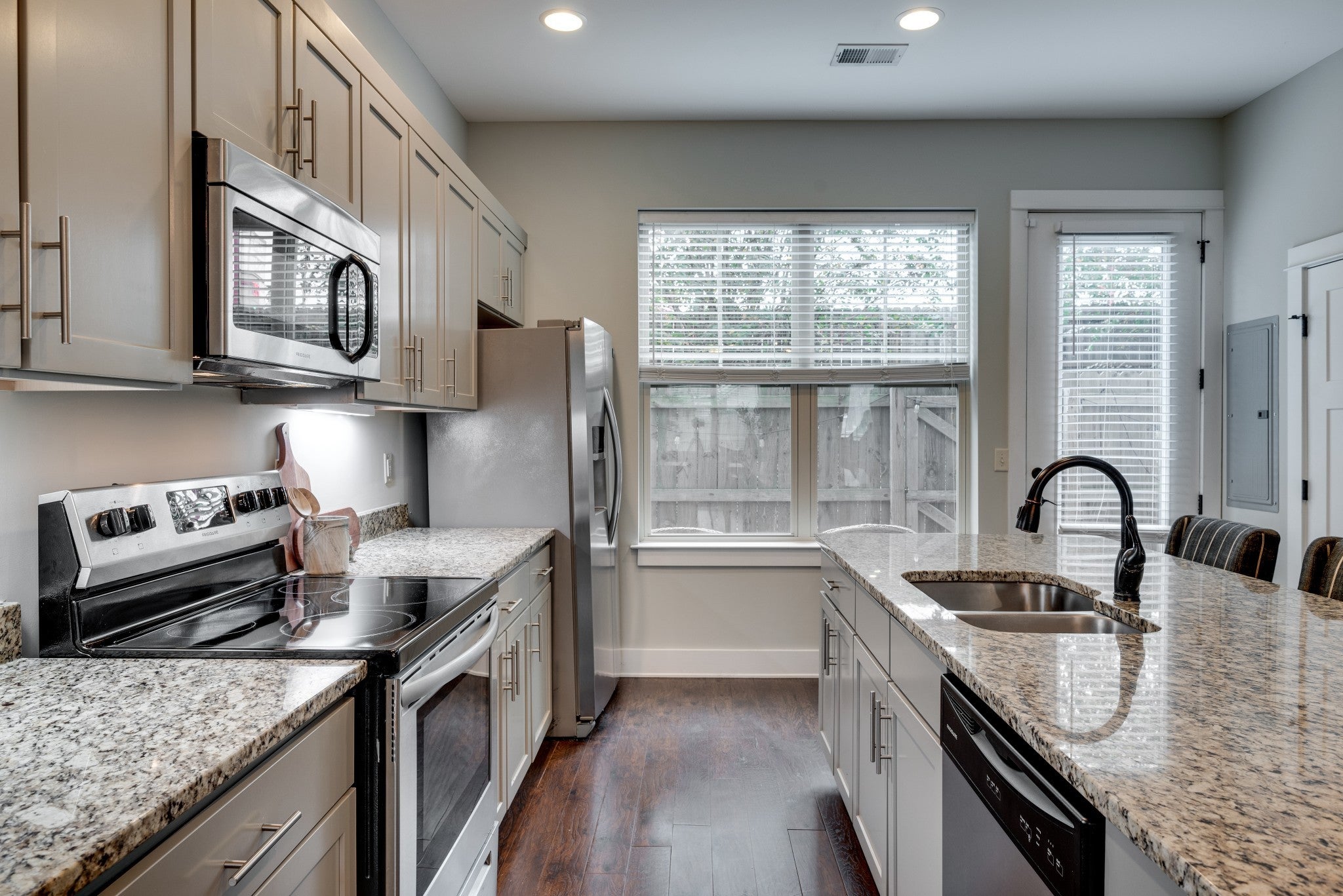 - Electric Oven, Built-In Electric Range, Dishwasher, Disposal, Microwave, Refrigerator