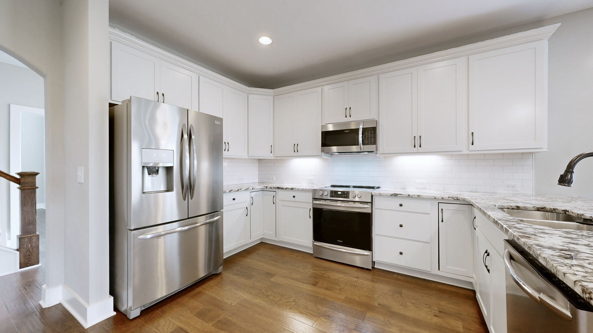 - Built-In Electric Oven, Electric Range, Dishwasher, Disposal, Microwave, Refrigerator, Stainless Steel Appliance(s)