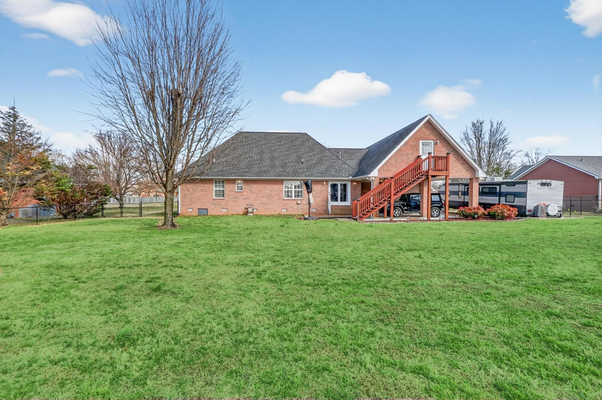 This beautifully maintained all-brick home is nestled on a quiet cul-de-sac while remaining central to town. Offering a perfect blend of comfort, space, and style, this home features an inviting layout ideal for both everyday living and entertaining. Step inside to a spacious living room with an open layout to the kitchen making for great entertaining space. The kitchen provides ample cabinetry and workspace, perfect for cooking and gathering, while the adjacent dining area makes hosting easy and convenient. The oversized bonus room upstairs offers with half-bath has incredible flexibility—ideal for a media room, home office, guest suite, or playroom. You will love all of the updates including flooring, walk-in shower and more! Outside, enjoy the carport for extra parking or a perfect covered outdoor area while would be great for entertaining family and friends! The brick storage shed/workshop and the fenced in backyard completes this total package!