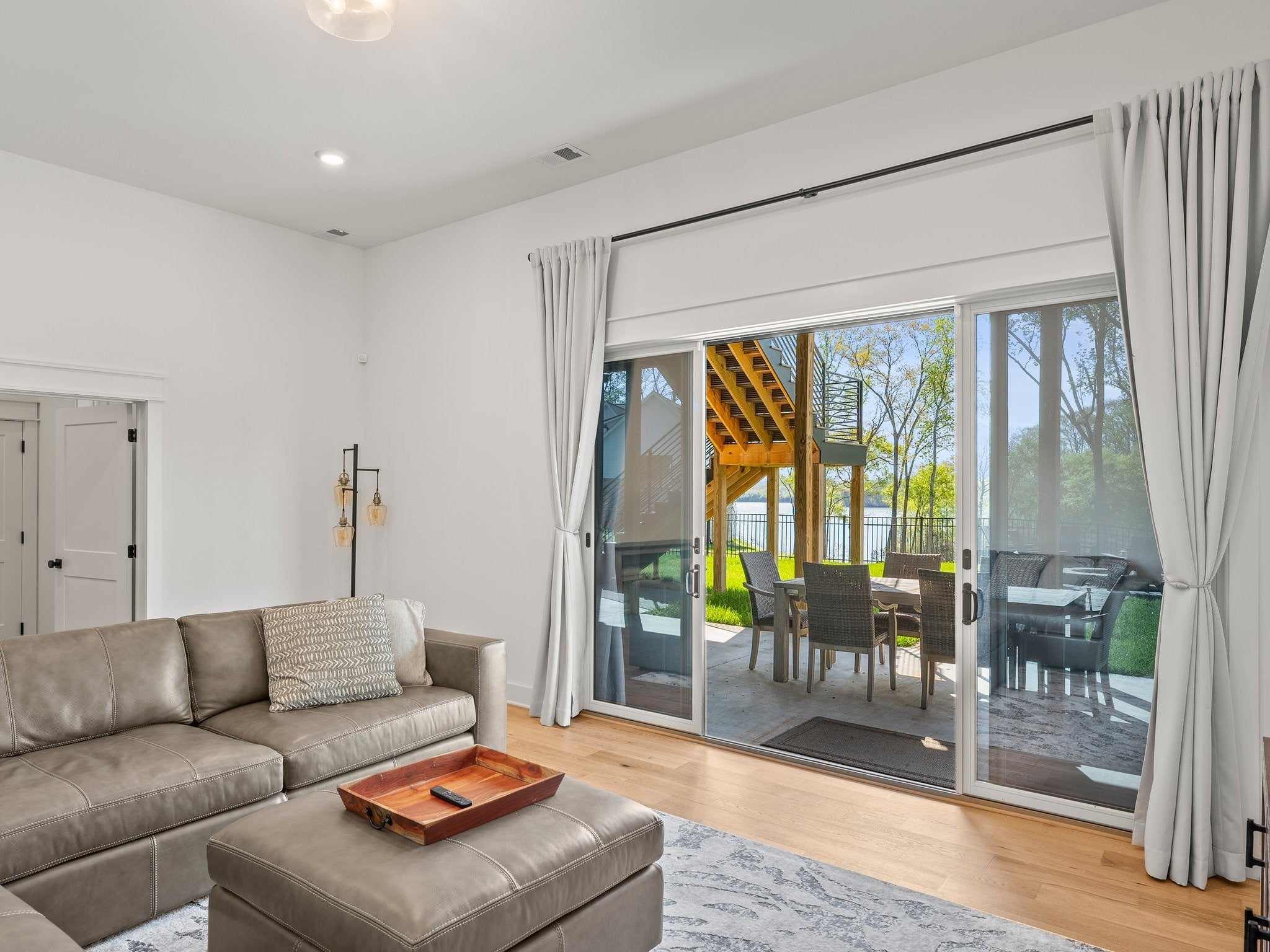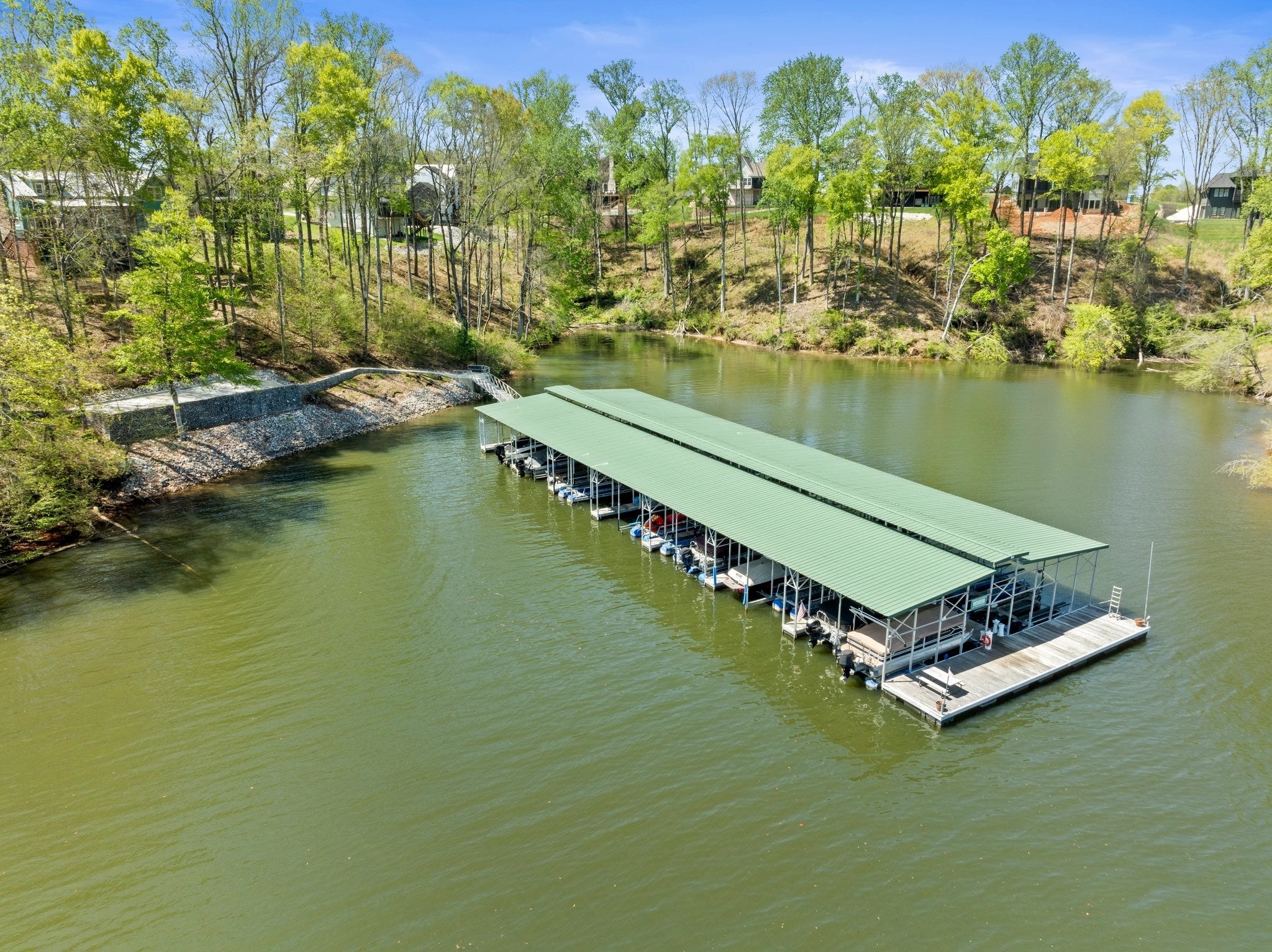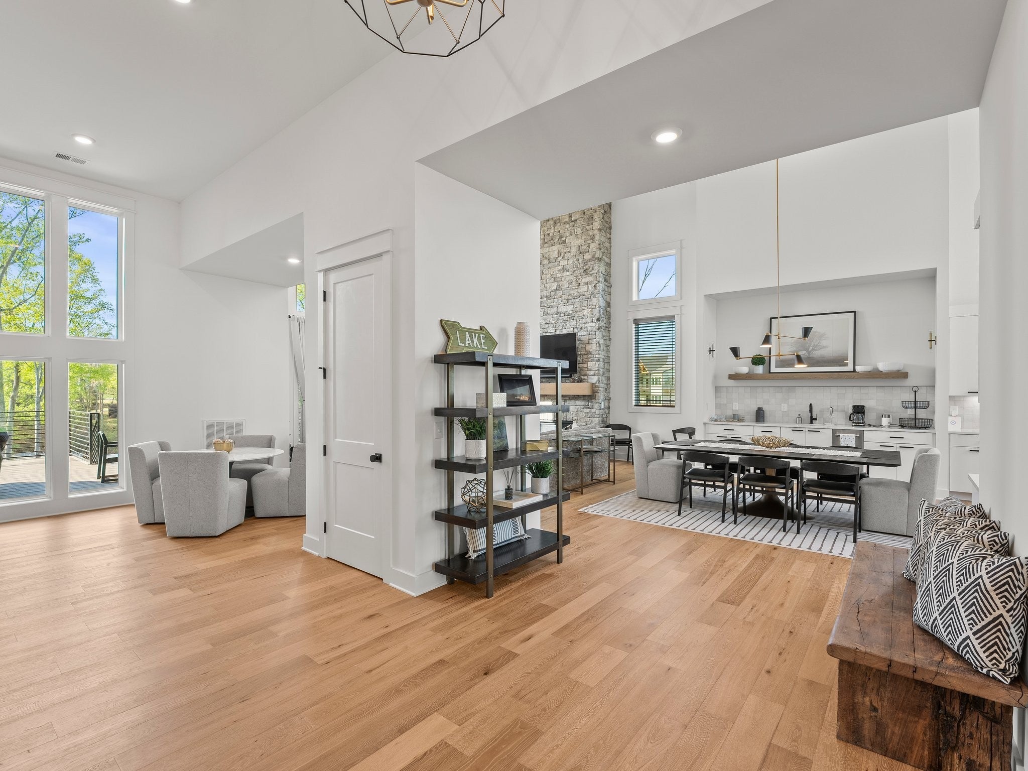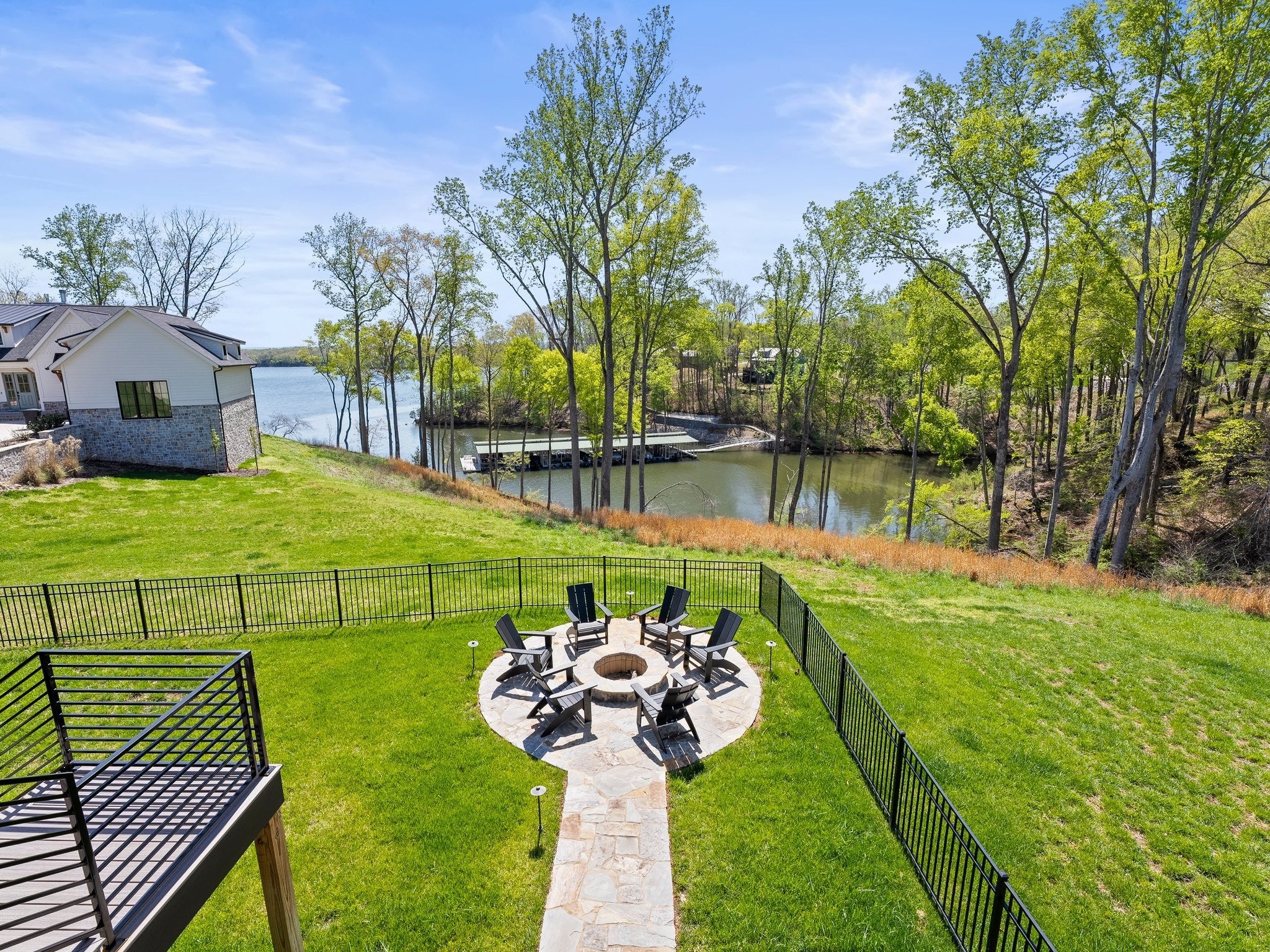 Luxury home in Fanning Bend. Like new condition with elevated finishes and finished walk-out basement. Water view off cove of Tims Ford Lake, open concept floor plan and XL trex deck. Very well-appointed, furnishings negotiable. Property includes a fenced-in backyard, hardscape fire pit with water view, irrigation, uplighting, built-in WiFi, smart TV's with Sonos bars/subs and a golf cart (15k top of the line). 3k Weber grill. 2-car garage, boat slip with 8k lb boat lift, jet ski port. This is the Lake Life EZ button!! no need to chase down furniture! Just move right in and start relaxing at the lake on day one. Community pool and clubhouse across the street. Partially finished basement has additional unfinished space with high ceilings for additional sotrage / expansion space of around 700 sf. 5th flex room is setup as a bunk room. Very nice home.