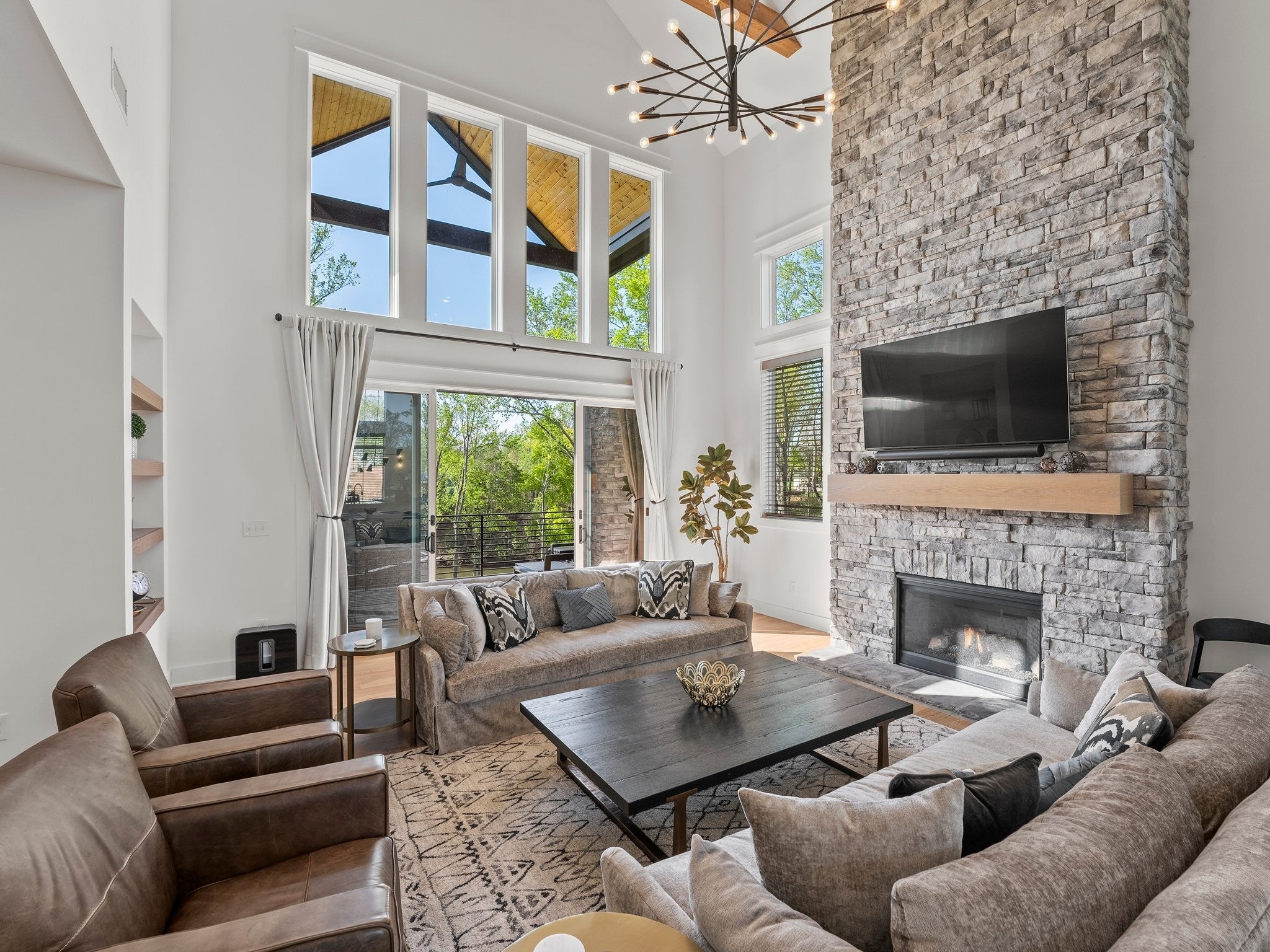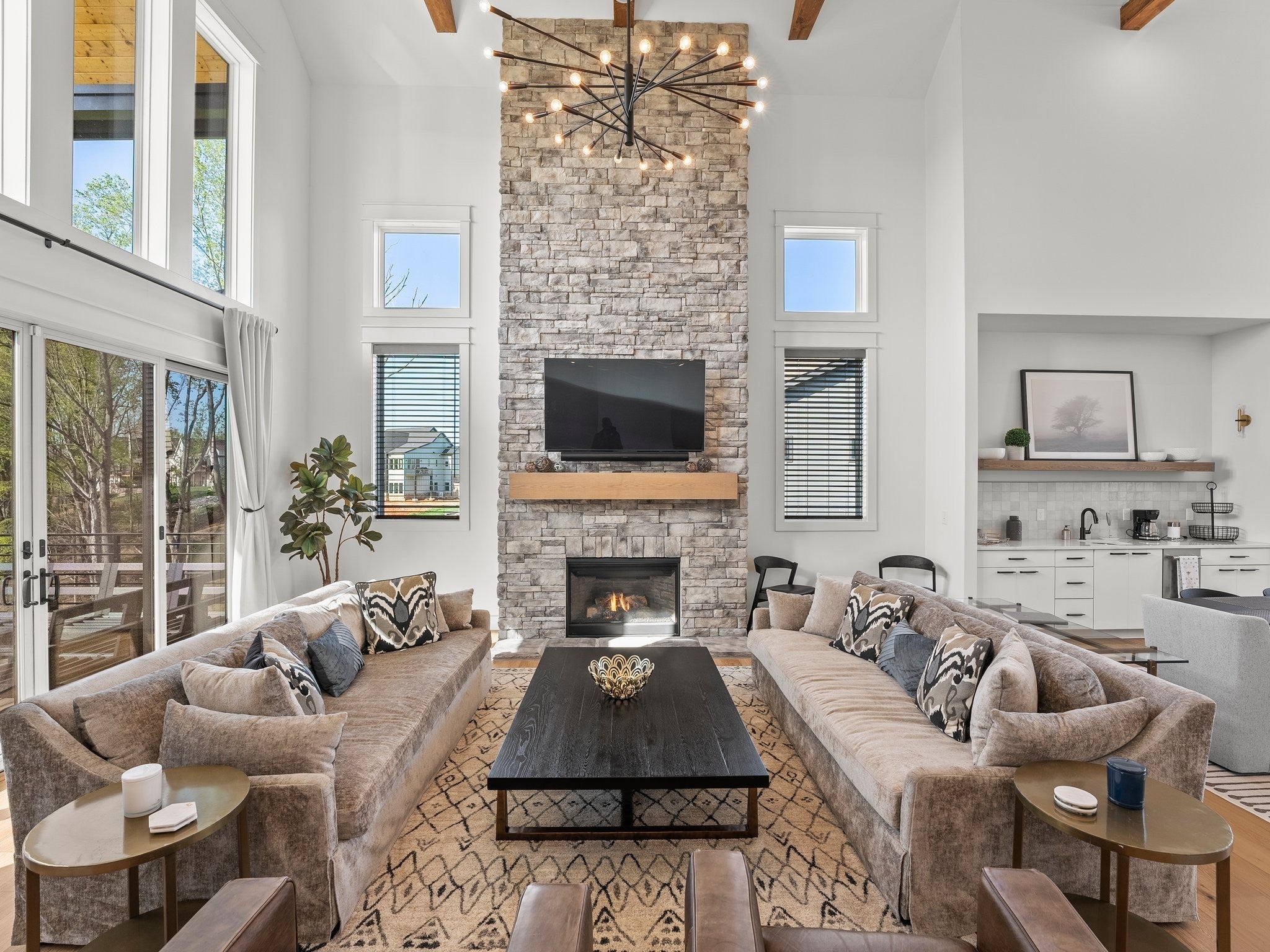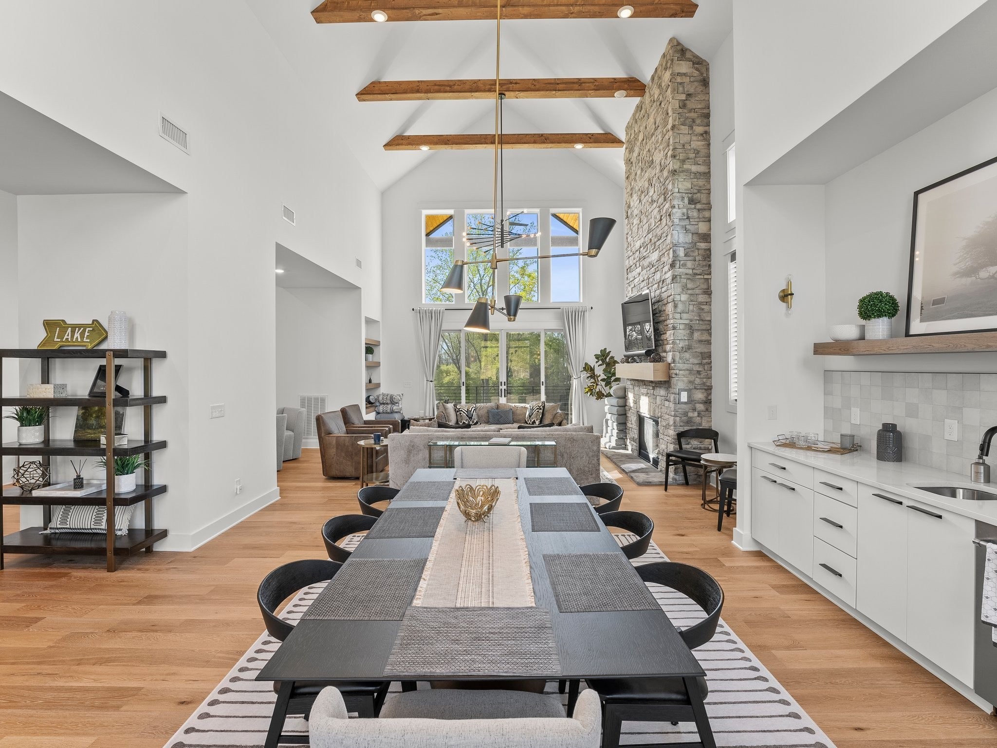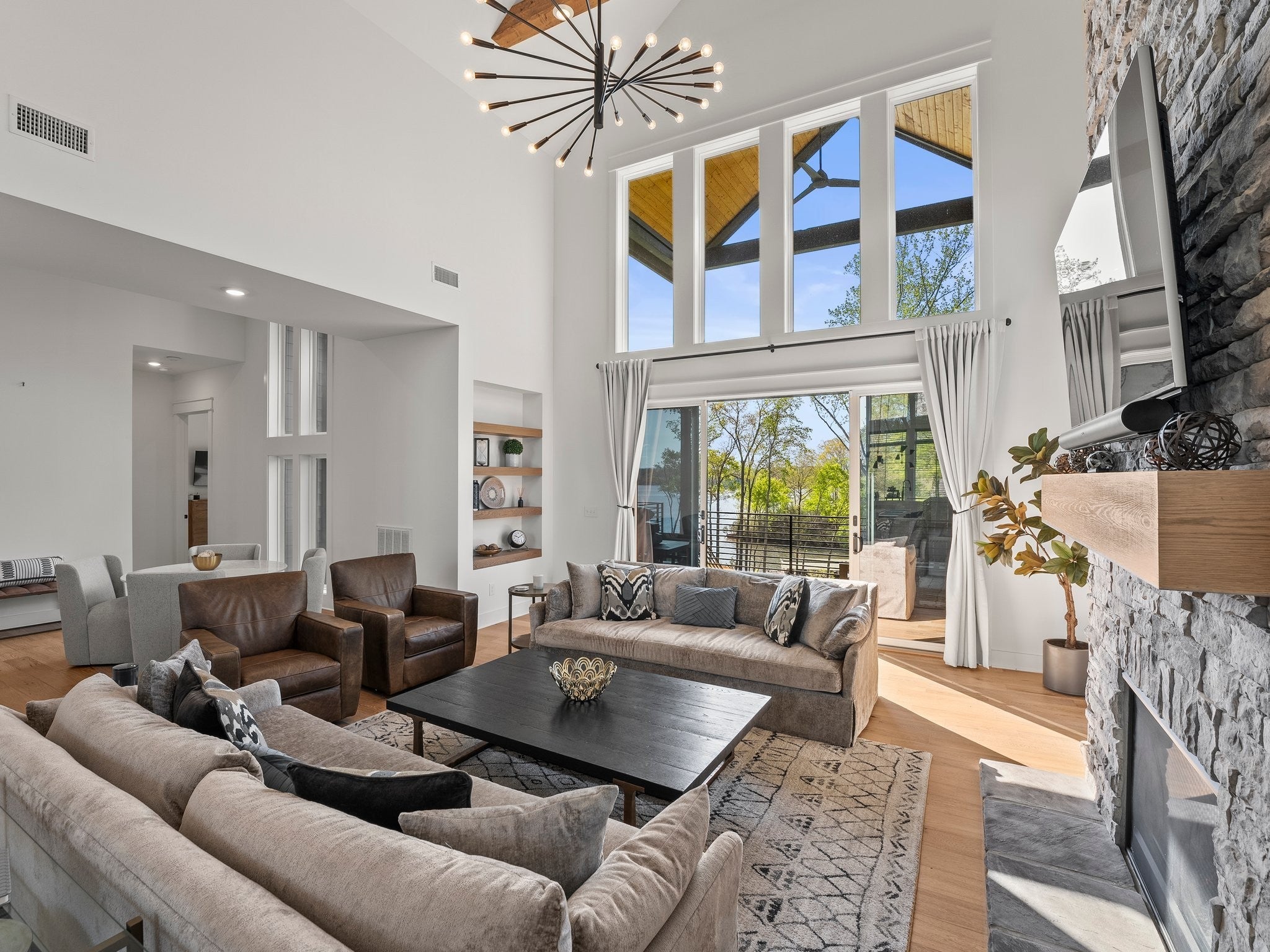 Luxury home in Fanning Bend. Like new condition with elevated finishes and finished walk-out basement. Water view off cove of Tims Ford Lake, open concept floor plan and XL trex deck. Very well-appointed, furnishings negotiable. Property includes a fenced-in backyard, hardscape fire pit with water view, irrigation, uplighting, built-in WiFi, smart TV's with Sonos bars/subs and a golf cart (15k top of the line). 3k Weber grill. 2-car garage, boat slip with 8k lb boat lift, jet ski port. This is the Lake Life EZ button!! no need to chase down furniture! Just move right in and start relaxing at the lake on day one. Community pool and clubhouse across the street. Partially finished basement has additional unfinished space with high ceilings for additional sotrage / expansion space of around 700 sf. 5th flex room is setup as a bunk room. Very nice home.