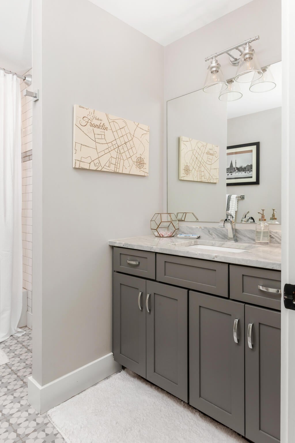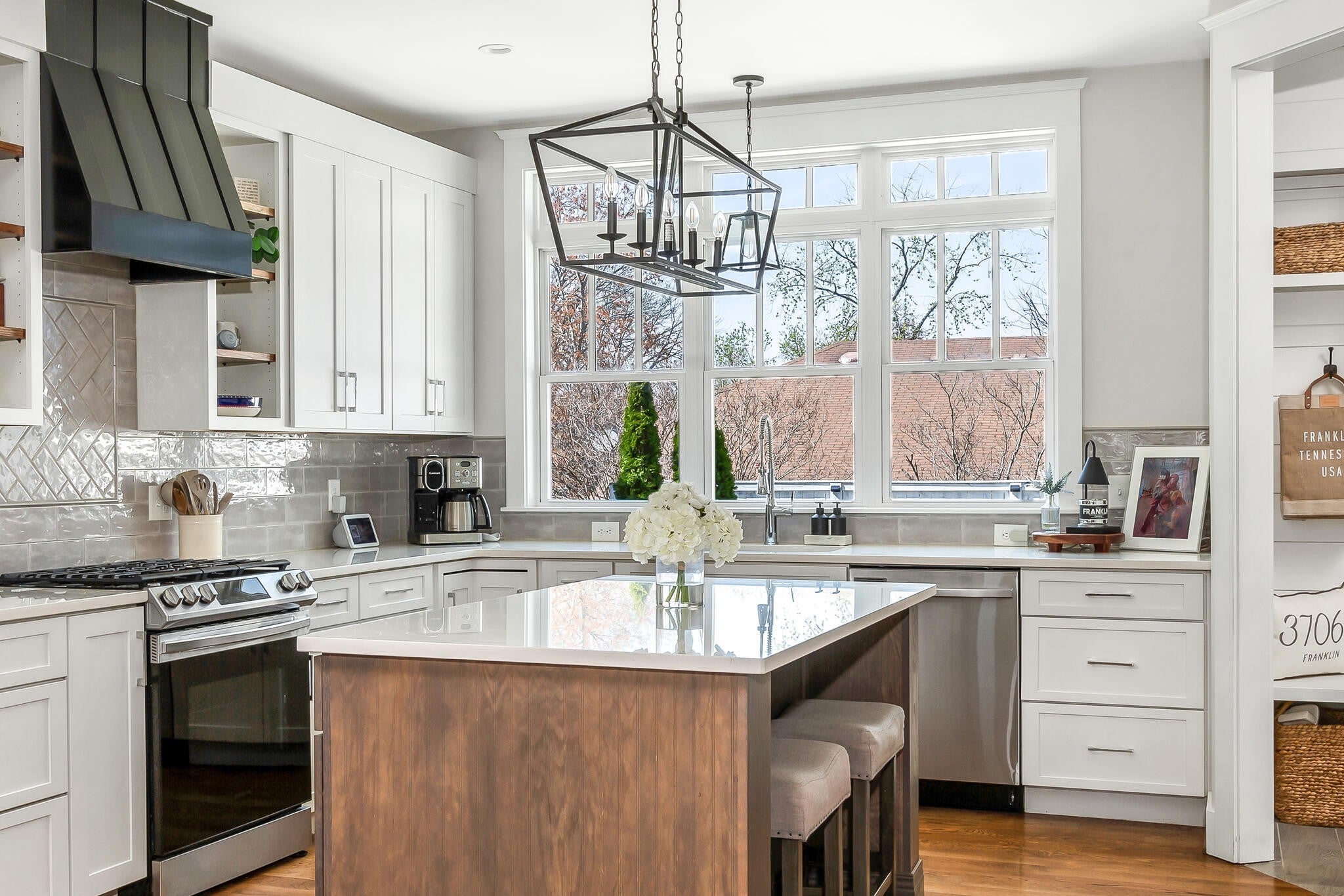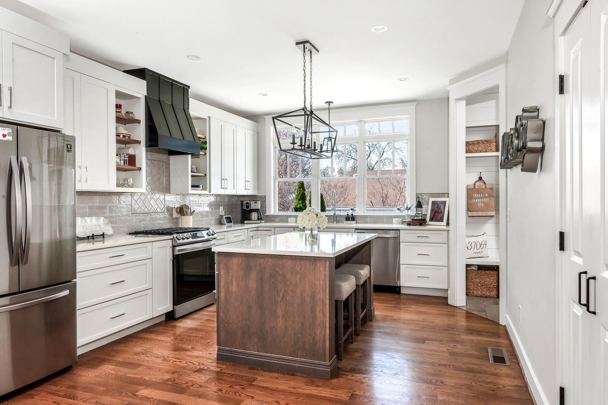 Ideally located on a quiet side street in Historic Downtown Franklin, this four-bedroom home offers newer construction, thoughtful design, and walkable convenience. Hardwood floors, soaring ceilings, abundant natural light, custom built-ins, and a gas fireplace define the main living areas. The kitchen features stainless steel appliances, quartz countertops, a designer tile backsplash, an oversized island, and a large pantry. The main-level primary suite includes exposed wood beams, detailed carpentry, and a walk-in closet. Additional spaces include a dedicated office and a spacious upstairs bonus room. Functional upgrades include a tankless water heater, whole-house water filtration system, whole-house surge protection, and a newly installed motorized gate. Outdoor features include a covered porch, patio, and low-maintenance yard, while the attached two-car garage adds convenience. Located just minutes from Main Street, The Factory, parks, dining, and local events, this home offers easy access to the amenities of Downtown Franklin, with the nearby Margin District adding to the area’s appeal.