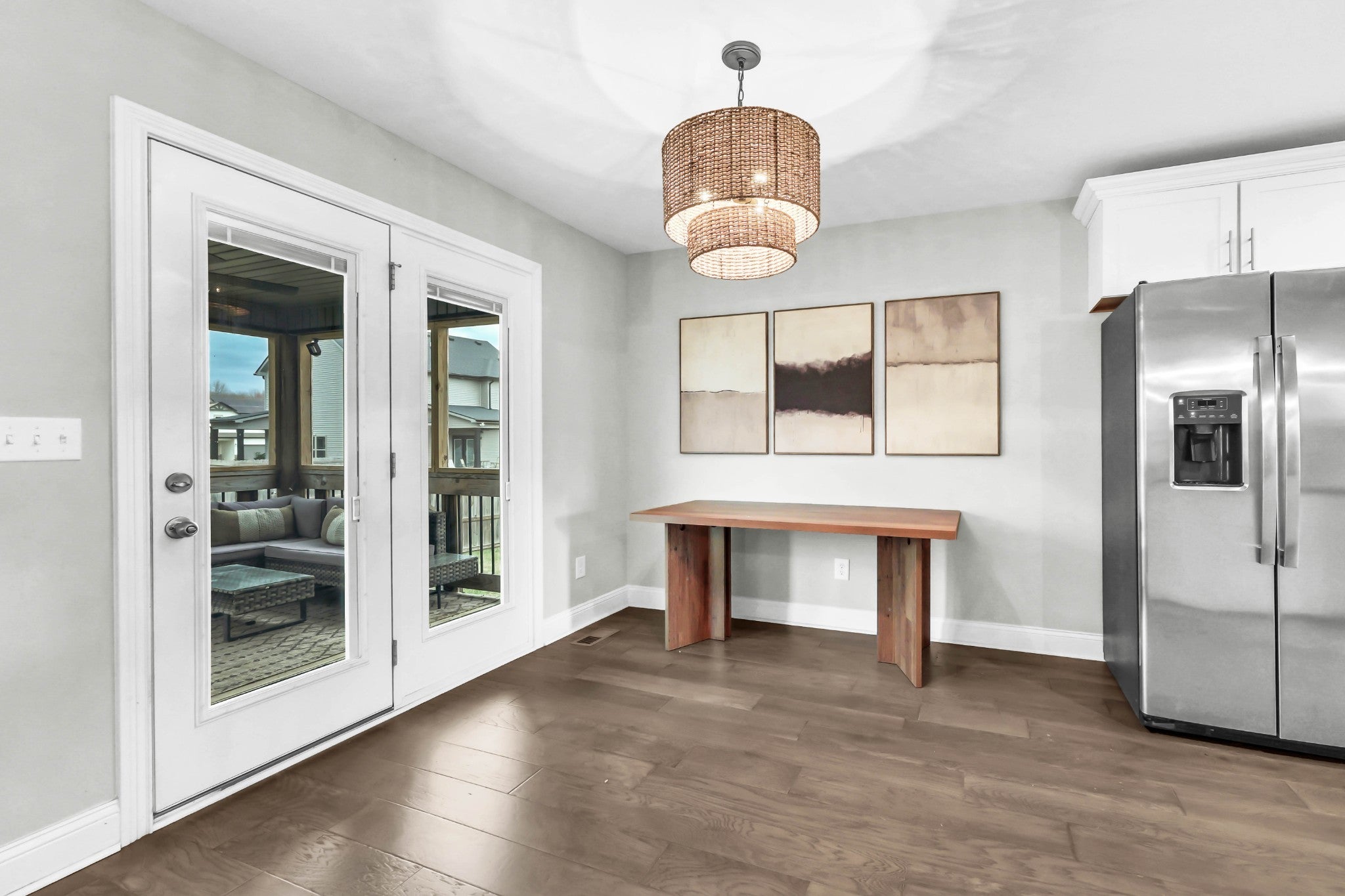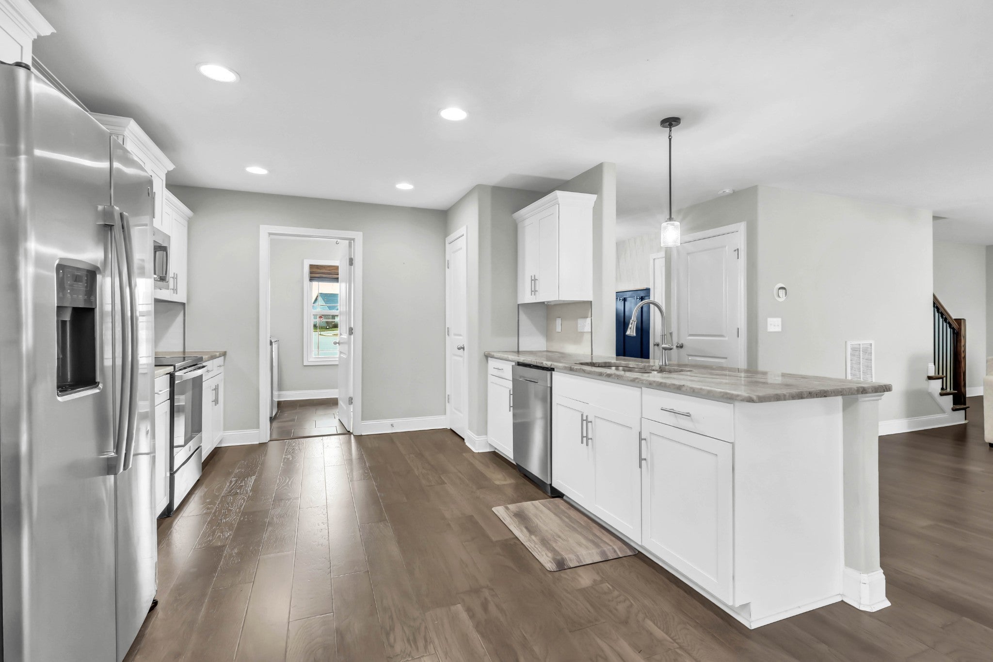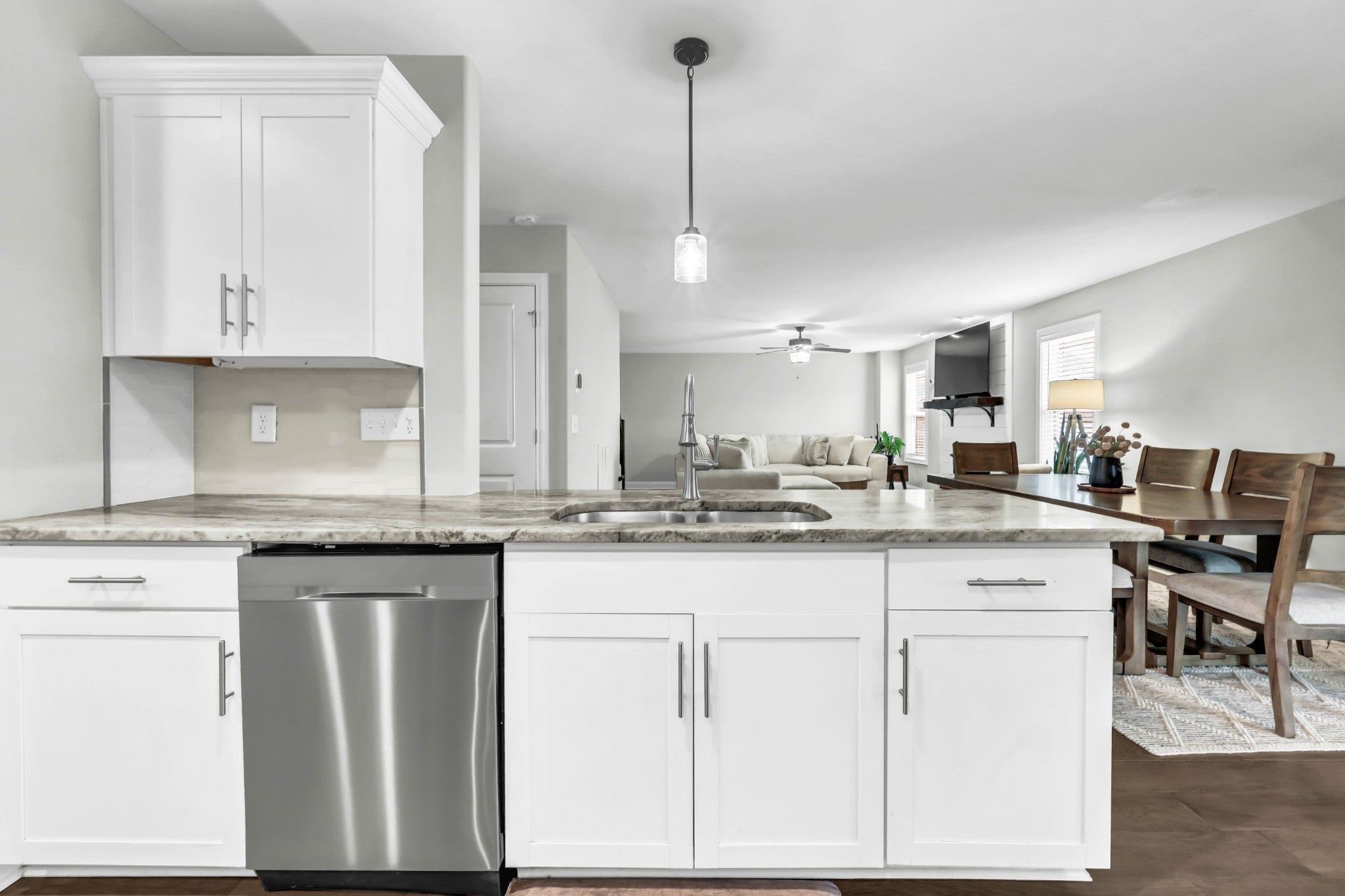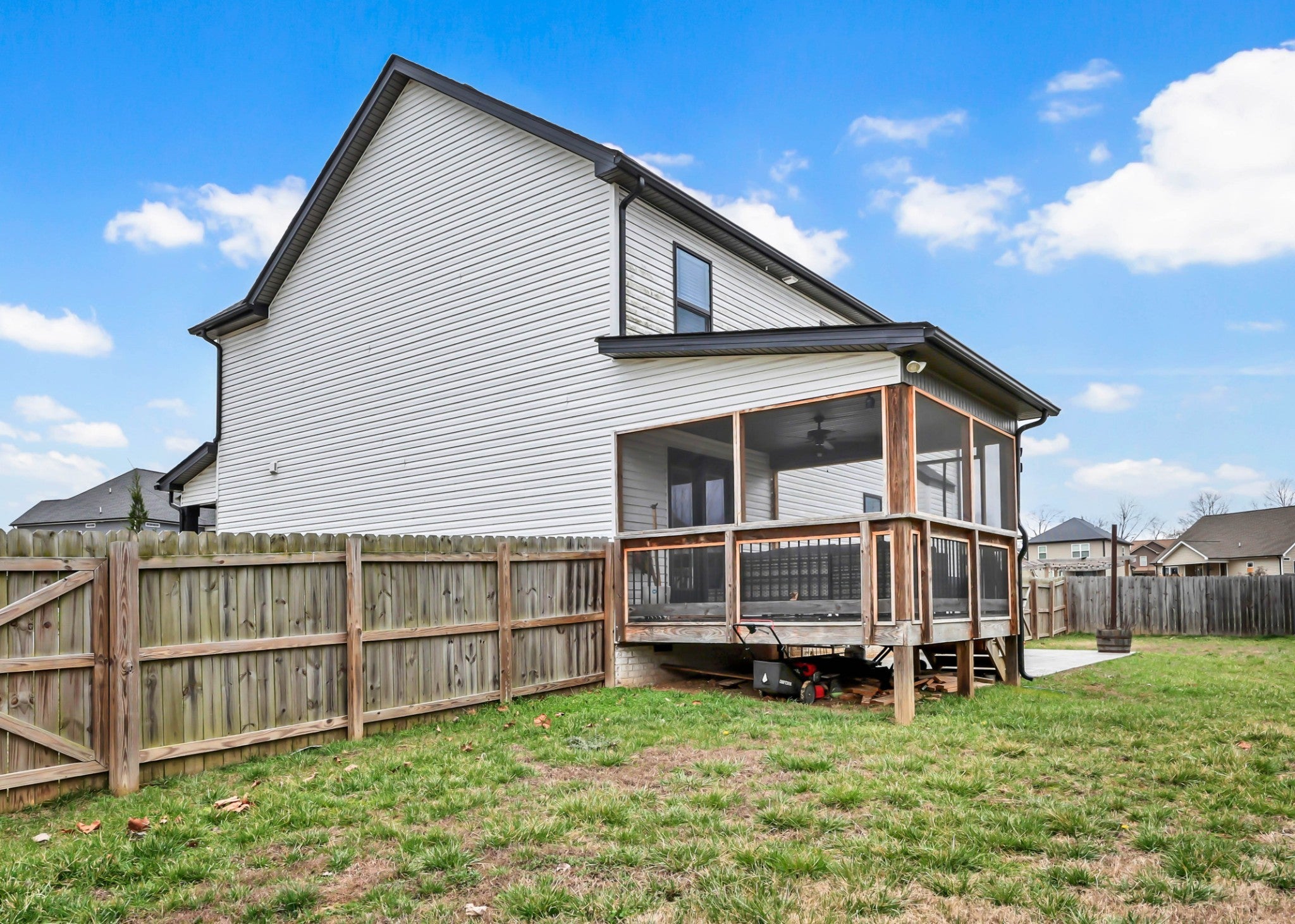 Welcome to this beautifully maintained home, built in 2020 and perfectly situated on a flat lot in a quiet cul-de-sac—offering both privacy and a true neighborhood feel. Thoughtfully designed with modern living in mind, this home features a seamless open-concept layout that is both functional and inviting. The main level showcases a galley-style kitchen with ample cabinetry and counter space, flowing effortlessly into the dining area and spacious living room. Anchored by a cozy gas fireplace, the living space is ideal for both everyday living and entertaining. A convenient half bath completes the main floor for guests. Upstairs, you’ll find a generously sized primary suite designed for comfort and relaxation. The en suite bathroom features a soaking tub, tile shower, double vanities, and a large walk-in closet. Two additional bedrooms, each with oversized closets, provide plenty of space for family, guests, or a home office, along with a well-appointed hall bath. Step outside to enjoy the home’s charming covered front porch—perfect for morning coffee—and mature landscaping that enhances curb appeal. Out back, a covered deck overlooks a large, fully fenced yard, offering the ideal setting for entertaining, pets, or play. This move-in ready home combines modern finishes, a desirable layout, and a prime cul-de-sac location—making it one you won’t want to miss!
