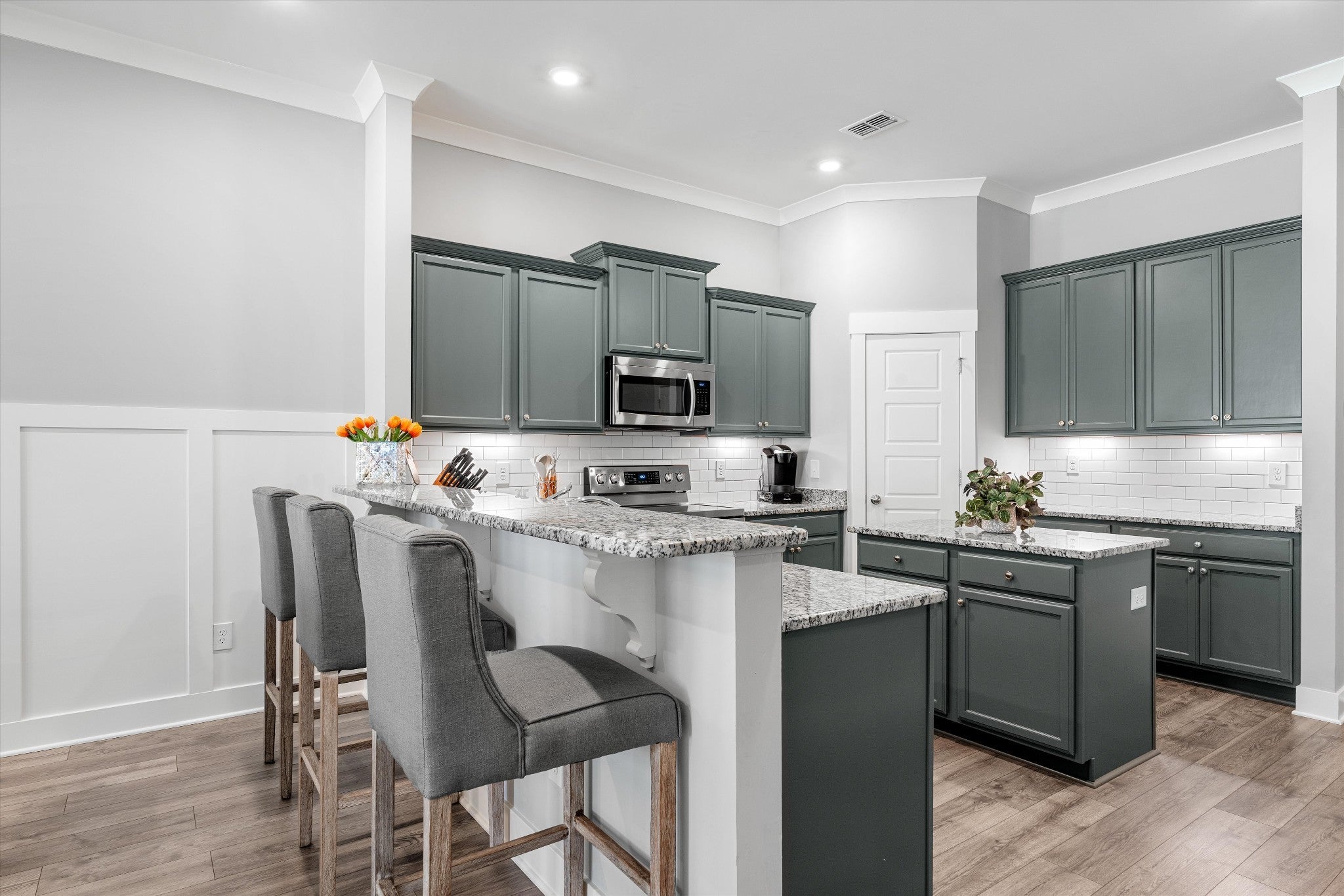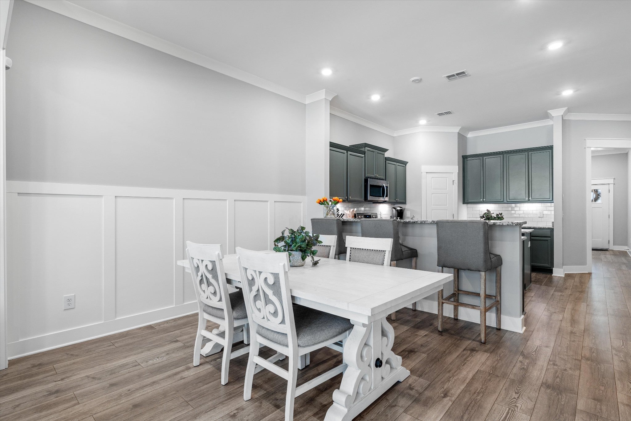 LOCATION, LOCATION—right in the center of Murfreesboro with everything just minutes away. Situated in the highly desirable Brookwood Point community, this move-in ready townhome offers quick access to MTSU, downtown Murfreesboro, premier shopping and dining, and top-rated public and private schools. Built in 2021, this all-brick home stands out with an expanded layout that includes an extended family/sunroom—adding valuable square footage, natural light, and flexible living space for entertaining, relaxing, or working from home. The open-concept main level is designed for both function and flow. The kitchen features upgraded cabinetry with abundant storage, granite countertops, stainless steel appliances, a bar-height peninsula open to the living and dining areas, plus a freestanding island—offering additional prep space, seating, and versatility. The main-level primary suite provides comfort and privacy, complete with double vanities, upgraded cabinetry, and a walk-in shower. Upstairs includes two spacious bedrooms with walk-in closets, a full bath, and excellent attic storage. Step outside to a fully fenced patio backing to a beautiful tree line, with additional green space and walking area behind the home—creating a more open, peaceful setting. Smart home features include smart thermostats, a Ring doorbell camera, and a Ring security system with an additional rear camera for added convenience and peace of mind. Additional highlights include a 2-car garage and exceptional storage throughout. HOA covers landscaping, exterior maintenance, and insurance for easy, low-maintenance living. Washer and dryer do not convey.