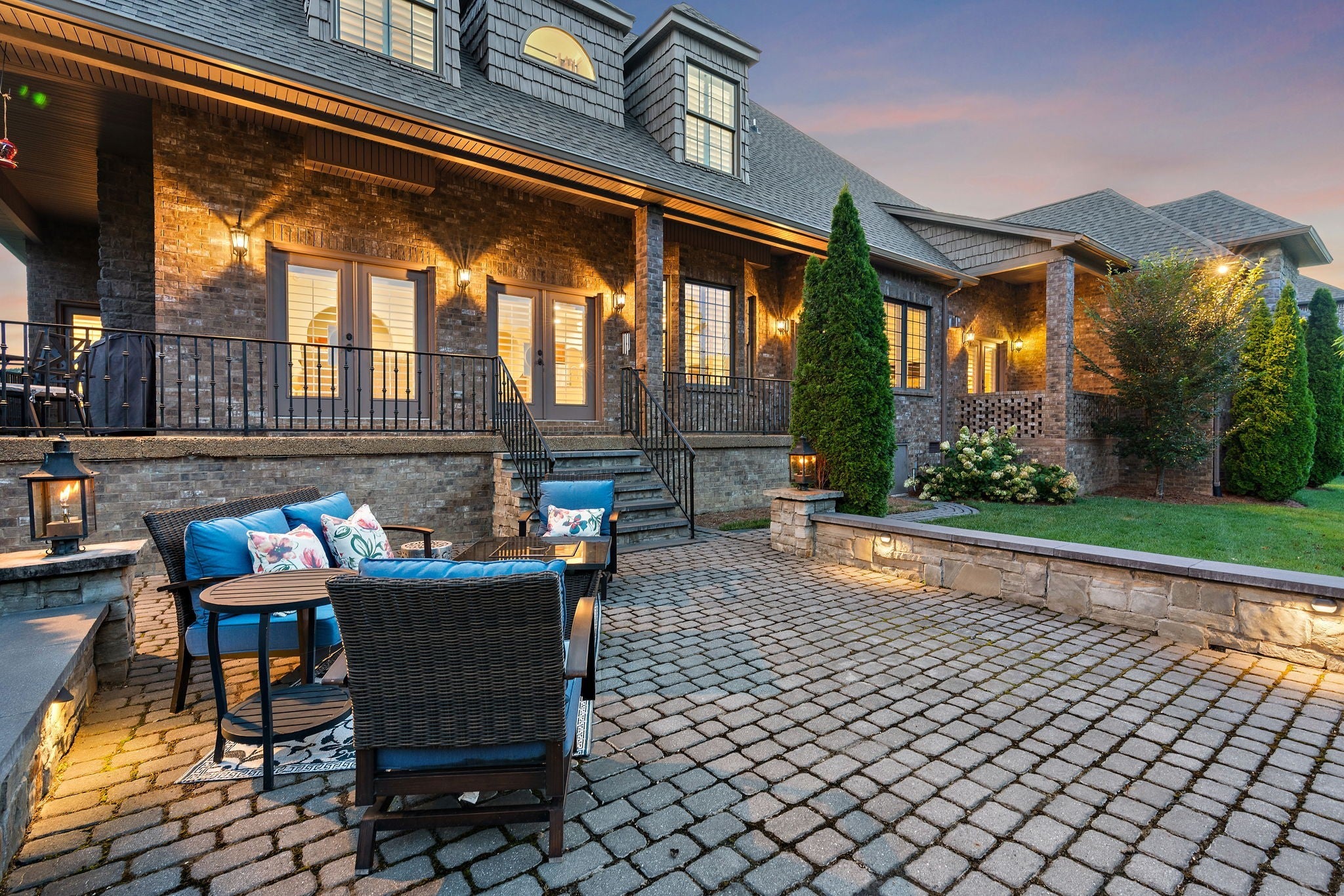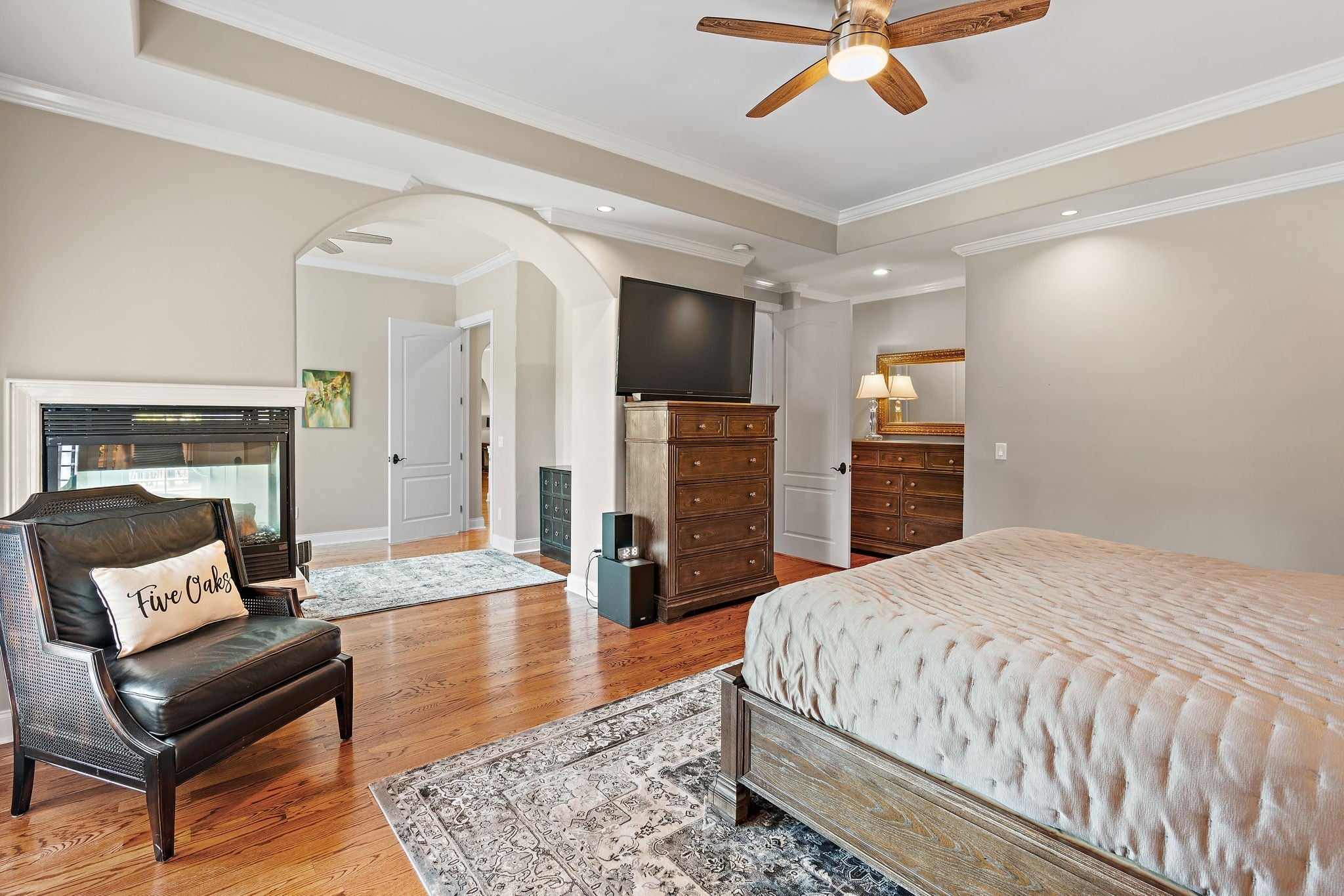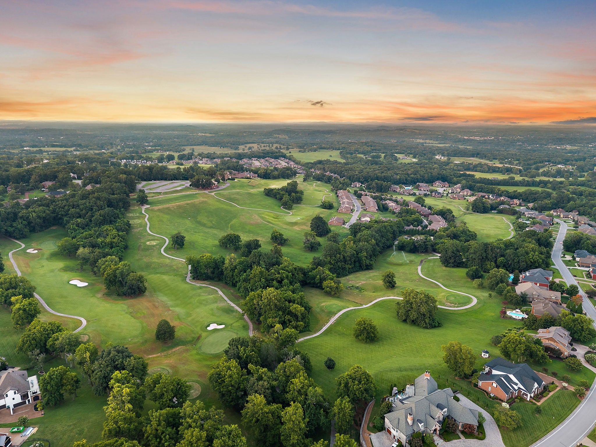 Experience French Country Elegance in Lebanon's sought after Five Oaks Golf Community! This stunning estate offers modern luxury and timeless charm nestled among rolling hills with scenic views of the 17th fairway. Recently painted throughout as well as new updated lighting, the home features an updated kitchen with redesigned layout, granite counters, and new KitchenAid appliances (dishwasher, refrigerator, vent hood & microwave). 3 fireplaces inside the home for added warmth and ambiance. The main-level primary suite is a true retreat—complete with a fireplace, sitting area, spa-like bath, and expansive walk-in closet. Upstairs, you'll find three spacious bedrooms, each with ensuite baths, a loft study space, sitting area, large bonus room, and a fully equipped theatre room with upgraded technology and theatre seating. The backyard is an entertainer’s dream with stone pavers, a fireplace, built-in grill, and professionally designed landscaping for enhanced privacy. Soaring ceilings, hardwood floors, 3 car garage with epoxy floor, new tankless hot water heater & hot water re-circulating system, abundant storage, and refined finishes throughout make this home truly one-of-a-kind. Located in Lebanon's premier golf community just minutes to I-40, shopping, dining, and the Music City Star commuter train.
