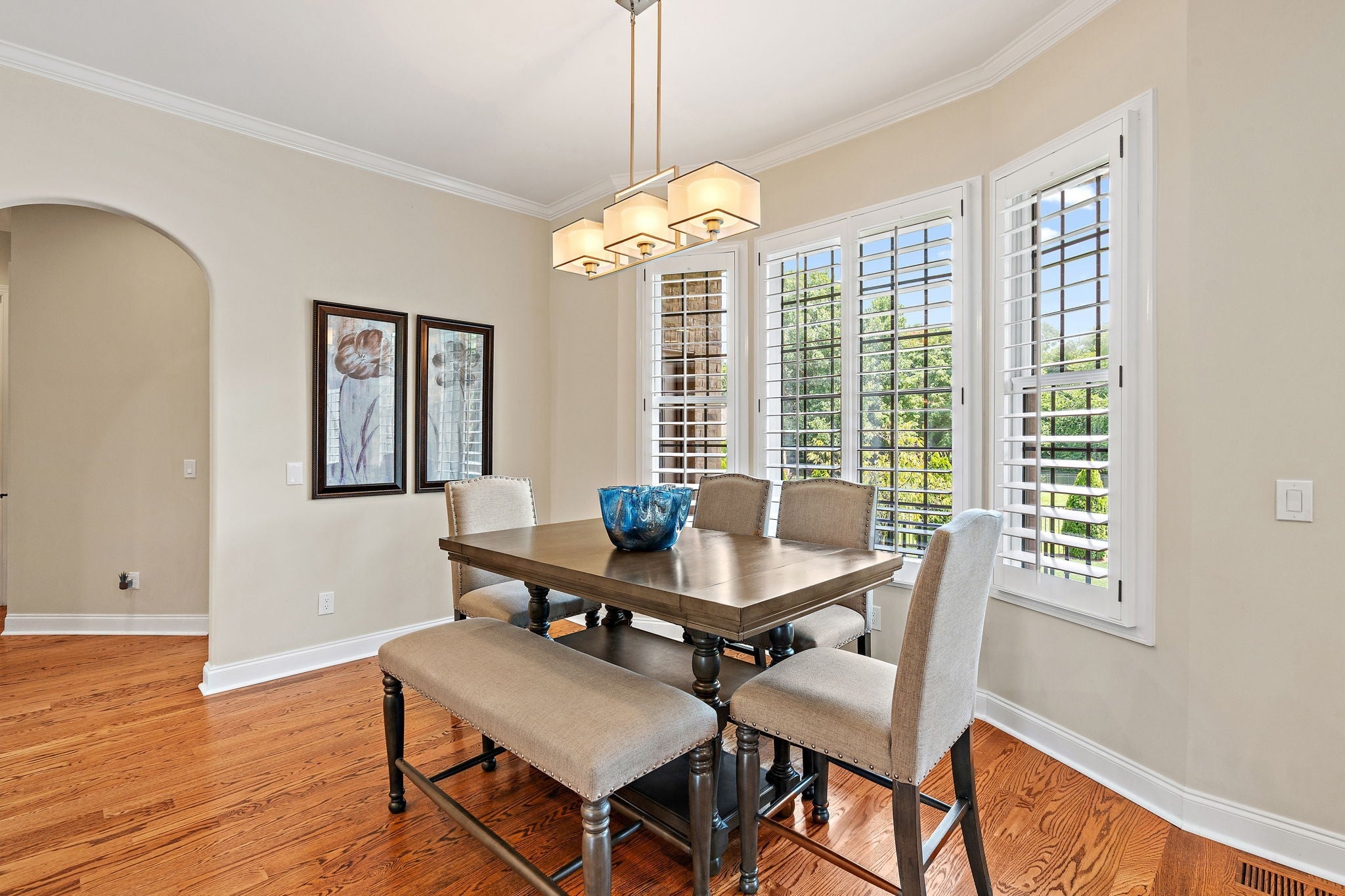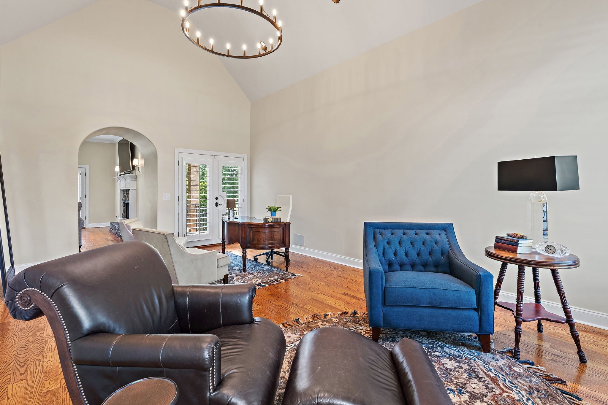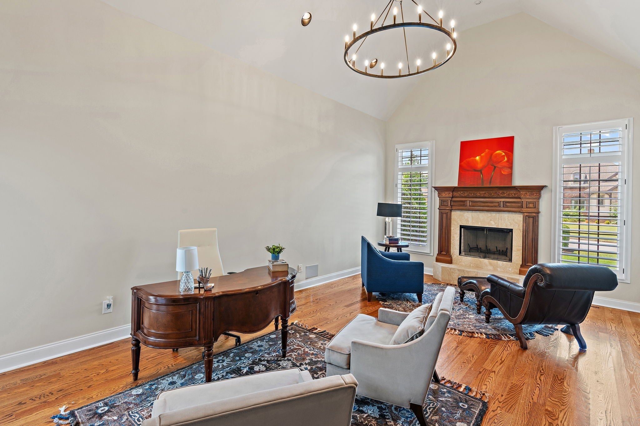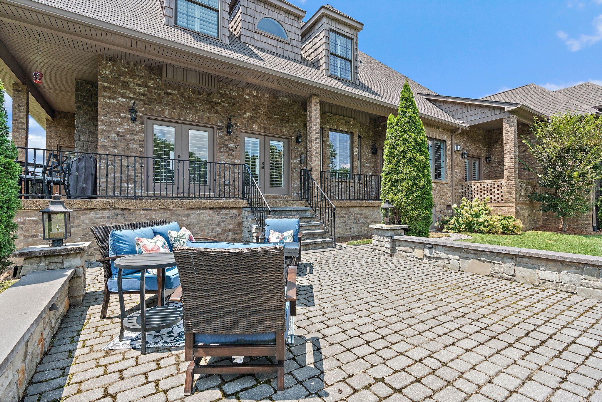 Experience French Country Elegance in Lebanon's sought after Five Oaks Golf Community! This stunning estate offers modern luxury and timeless charm nestled among rolling hills with scenic views of the 17th fairway. Recently painted throughout as well as new updated lighting, the home features an updated kitchen with redesigned layout, granite counters, and new KitchenAid appliances (dishwasher, refrigerator, vent hood & microwave). 3 fireplaces inside the home for added warmth and ambiance. The main-level primary suite is a true retreat—complete with a fireplace, sitting area, spa-like bath, and expansive walk-in closet. Upstairs, you'll find three spacious bedrooms, each with ensuite baths, a loft study space, sitting area, large bonus room, and a fully equipped theatre room with upgraded technology and theatre seating. The backyard is an entertainer’s dream with stone pavers, a fireplace, built-in grill, and professionally designed landscaping for enhanced privacy. Soaring ceilings, hardwood floors, 3 car garage with epoxy floor, new tankless hot water heater & hot water re-circulating system, abundant storage, and refined finishes throughout make this home truly one-of-a-kind. Located in Lebanon's premier golf community just minutes to I-40, shopping, dining, and the Music City Star commuter train.