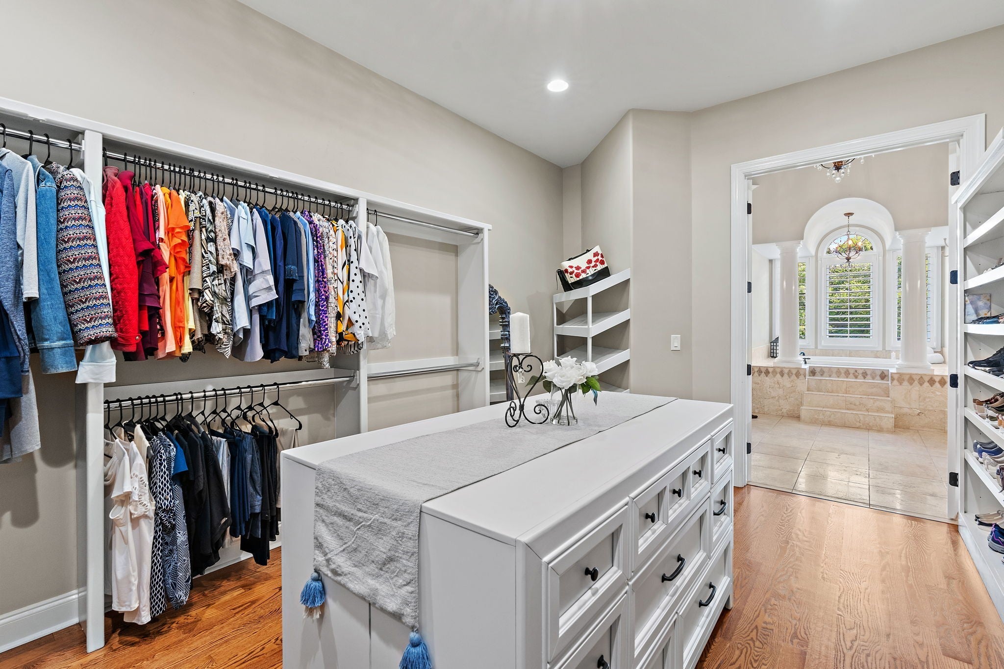 - Air Filter, Bookcases, Built-in Features, Ceiling Fan(s), Central Vacuum, Entrance Foyer, Extra Closets, High Ceilings, Walk-In Closet(s)