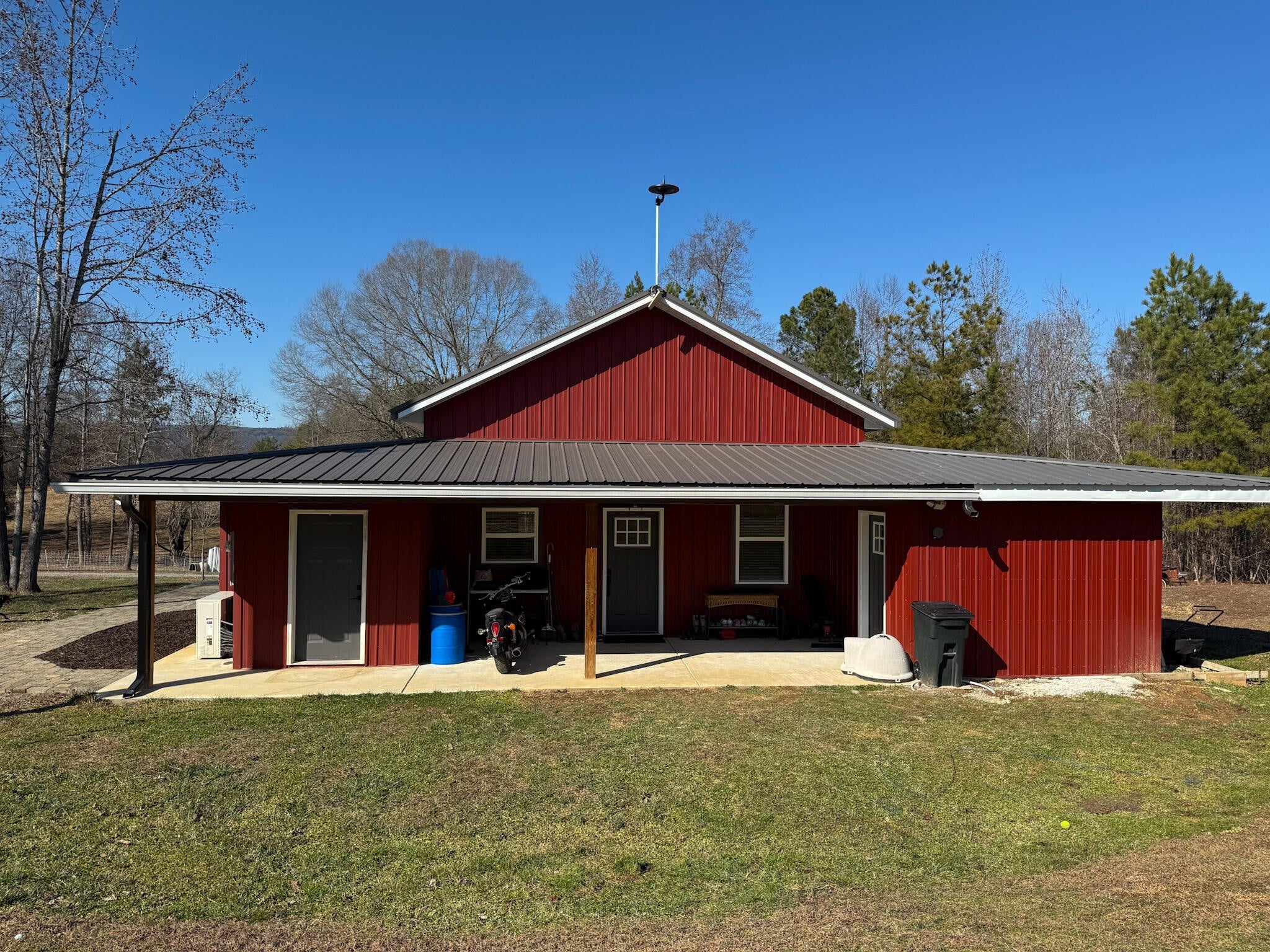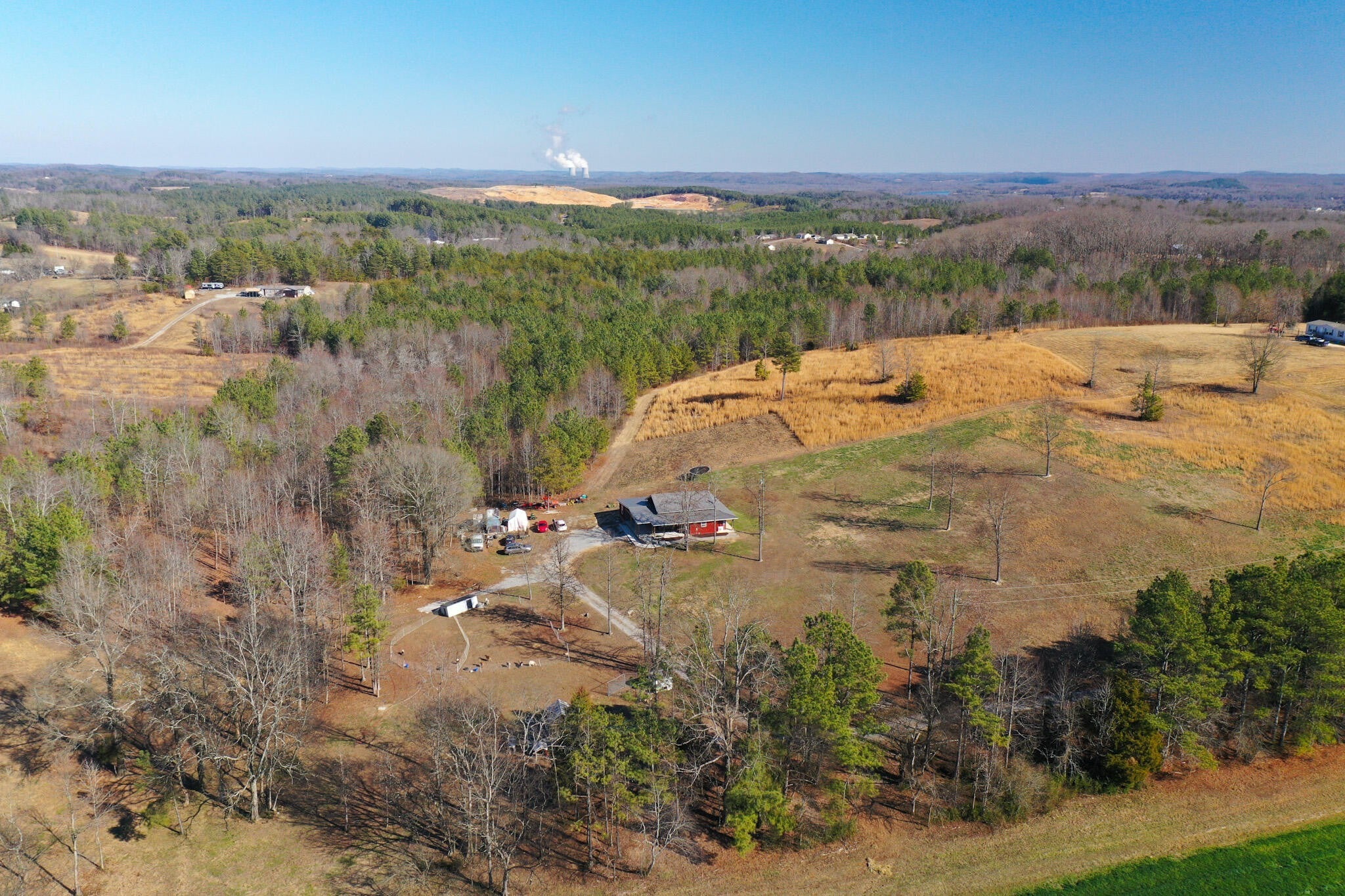 4 BEDROOM possibility..MOTIVATED SELLER....MINI FARM..OR HOMESTEAD..Practically new and built in 2022, this thoughtfully designed home sits on 8.61 beautiful, unrestricted acres, offering privacy, space, and endless possibilities. Featuring 3 bedrooms and 2 full baths, plus a den or home office and an upstairs loft that could easily serve as a 4th bedroom, this home boasts 12-foot ceilings and a layout that truly maximizes every inch. Enjoy year-round comfort with Ductless mini-split heating and cooling, two tankless water heaters (one propane, not yet hooked up), natural gas availability, and fiber-optic internet. The kitchen shines with abundant cabinetry, a large island, and flows perfectly into the living spaces, while the huge laundry room and large walk-in shower add everyday convenience. This property also shines Outside--fenced on three sides, featuring a metal roof, vinyl cedar shake and metal siding, and a large covered front porch perfect for relaxing and taking in the peaceful surroundings. Property has a FULL 50 AMP RV HOOK UP. The land is already set up for country living with raised beds, a greenhouse, chicken coop, small livestock barn, fruit trees, and muscadine vines. Horses and cows are welcome, making this an ideal mini-farm or homestead. Private, unrestricted, and packed with features--this is truly a fantastic property that checks all the boxes. Tractor and equipment can go with the sale.