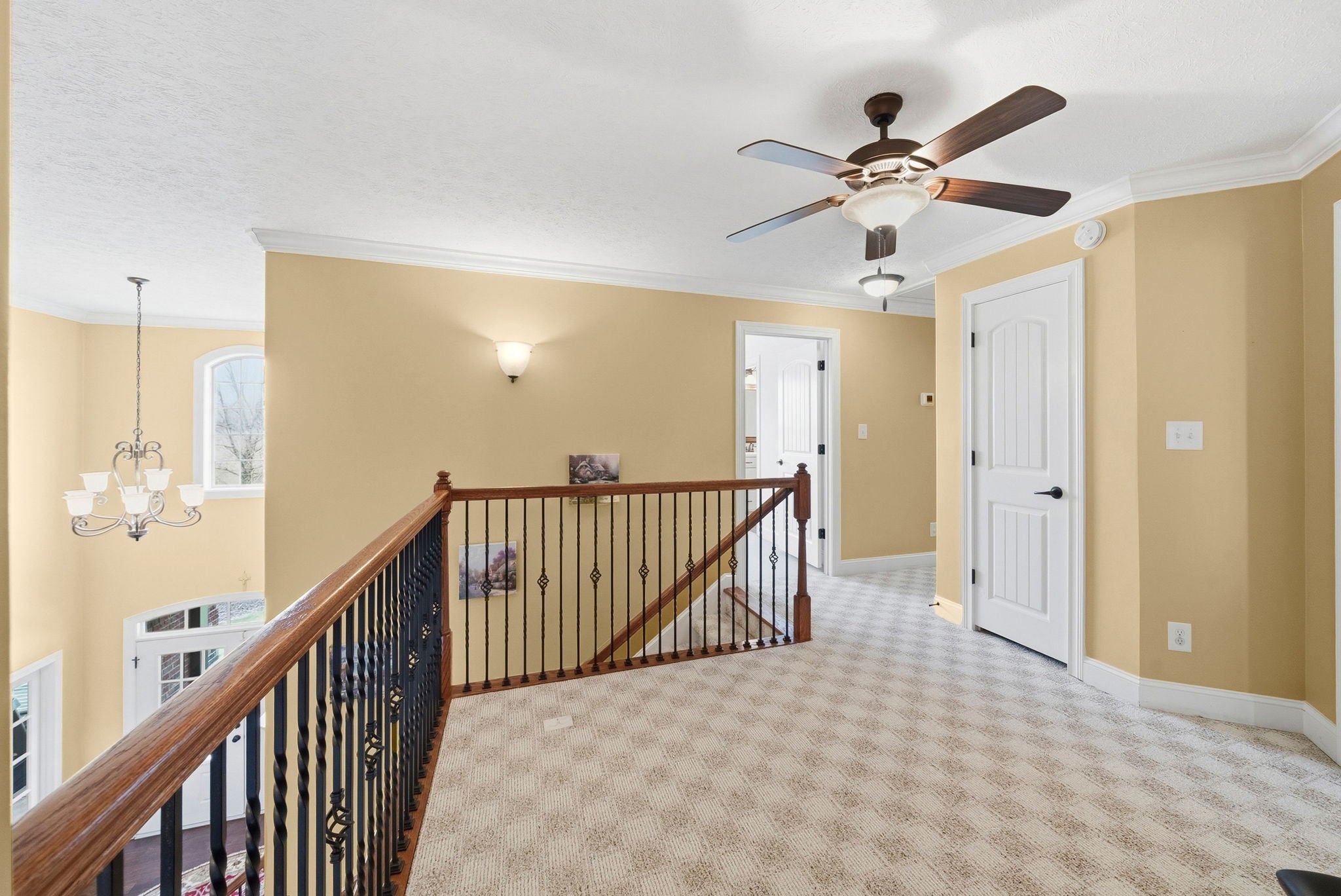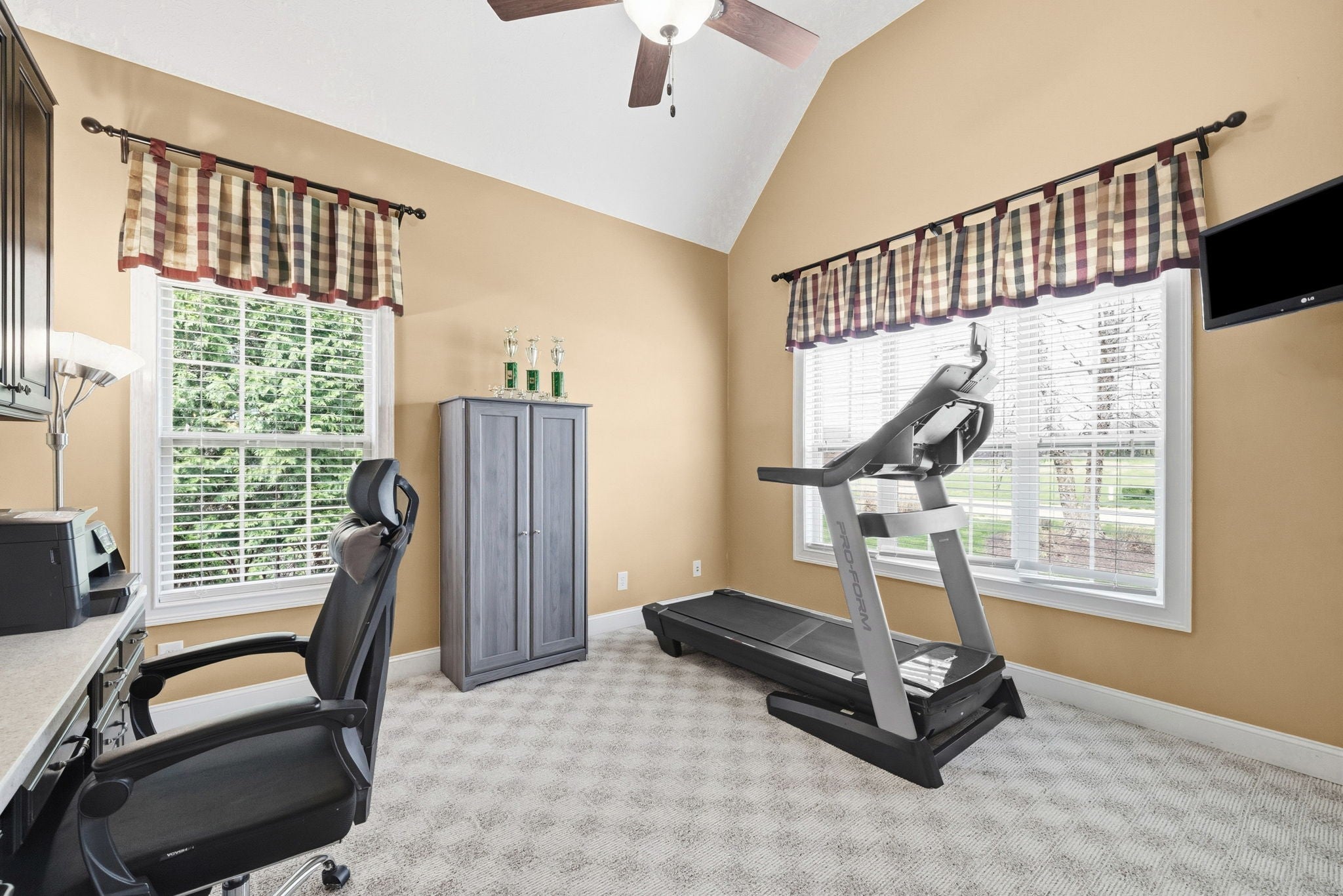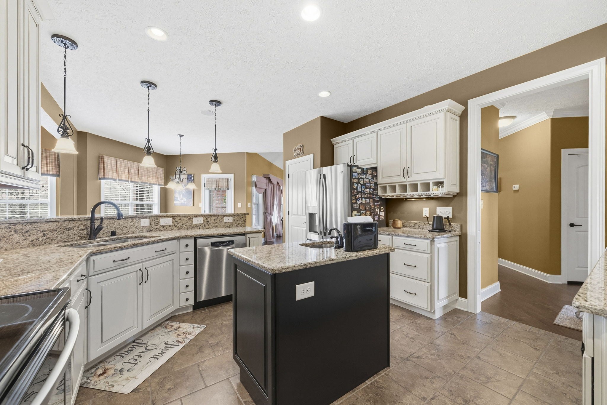 This well-maintained 4 bedroom, 3.5 bathroom home in Novadell Subdivision offers numerous updates and thoughtful features throughout. The HVAC system upstairs was updated in 2023. Inside, you’ll find a dedicated office with carpet and built-in shelving, along with a spacious primary suite featuring a tray ceiling, double sinks in the bathroom, and separate closets. The home includes two gas fireplaces and an owned gas tank that also services the outdoor grill. A built-in sound system enhances the living spaces. The kitchen features granite countertops, a large island with a sink, custom cabinetry with glass accents, and a walk-in pantry. The laundry room includes a utility sink and additional cabinetry for storage. Upstairs offers a versatile landing area that can serve as a second living space, office, or recreation area. The three-car garage includes custom storage cabinets. Additional highlights include an irrigation system and an ADT security system with cameras and video doorbell.