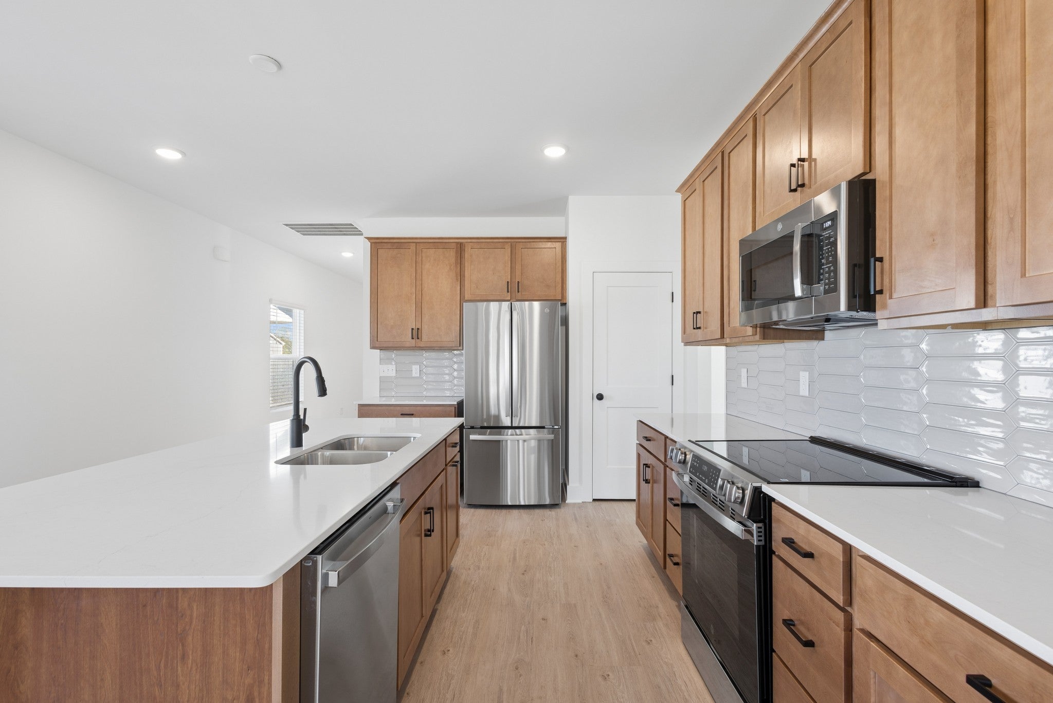 - Electric Range, Dishwasher, Disposal, Microwave