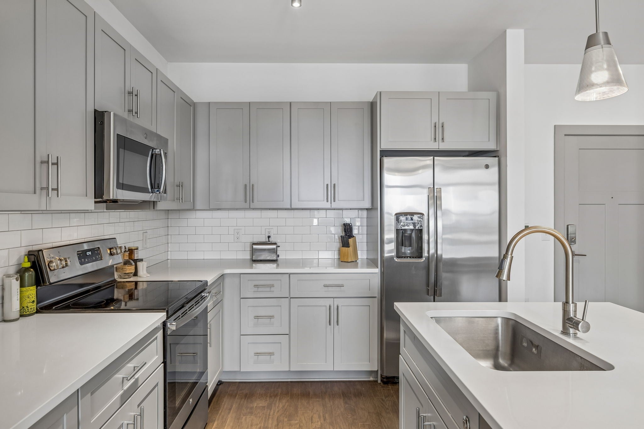 - Electric Range, Dishwasher, Disposal, Dryer, Microwave, Refrigerator, Stainless Steel Appliance(s)